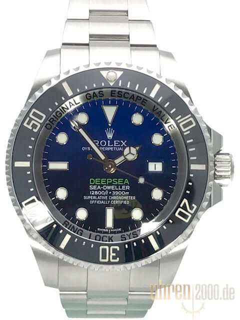 Gehäuse aus Edelstahl poliert und satiniert, Gehäusedurchmesser 44 mm, Höhe 17,8 mm, Edelstahl Lünette geriffelt mit schwarzer Keramik Einlage, 60 Minuten Skala und Leuchtpunkt, einseitig drehbar, Heliumventil auf der 9 Uhr Position, Oyster Edelstahl Armband satiniert mit Sicherheitsfaltschließe, blaues/schwarzes Zifferblatt mit aufgesetzten Leuchtindexen und Leuchtpunkten sowie Leuchtzeiger, Uhrwerk Automatik, Rolex Manufakturkaliber 3135 mit 31 Steine, Schwingung 28.800 A/h, Parachrom Breguetspirale, Datumsanzeige, Chronometer, kratzresistentes Saphirglas, bombiert, extrastark, verschraubte Krone Triplock mit Flankenschutz, Edelstahlboden verschraubt und graviert, Wasserdicht bis zu 390 bar.