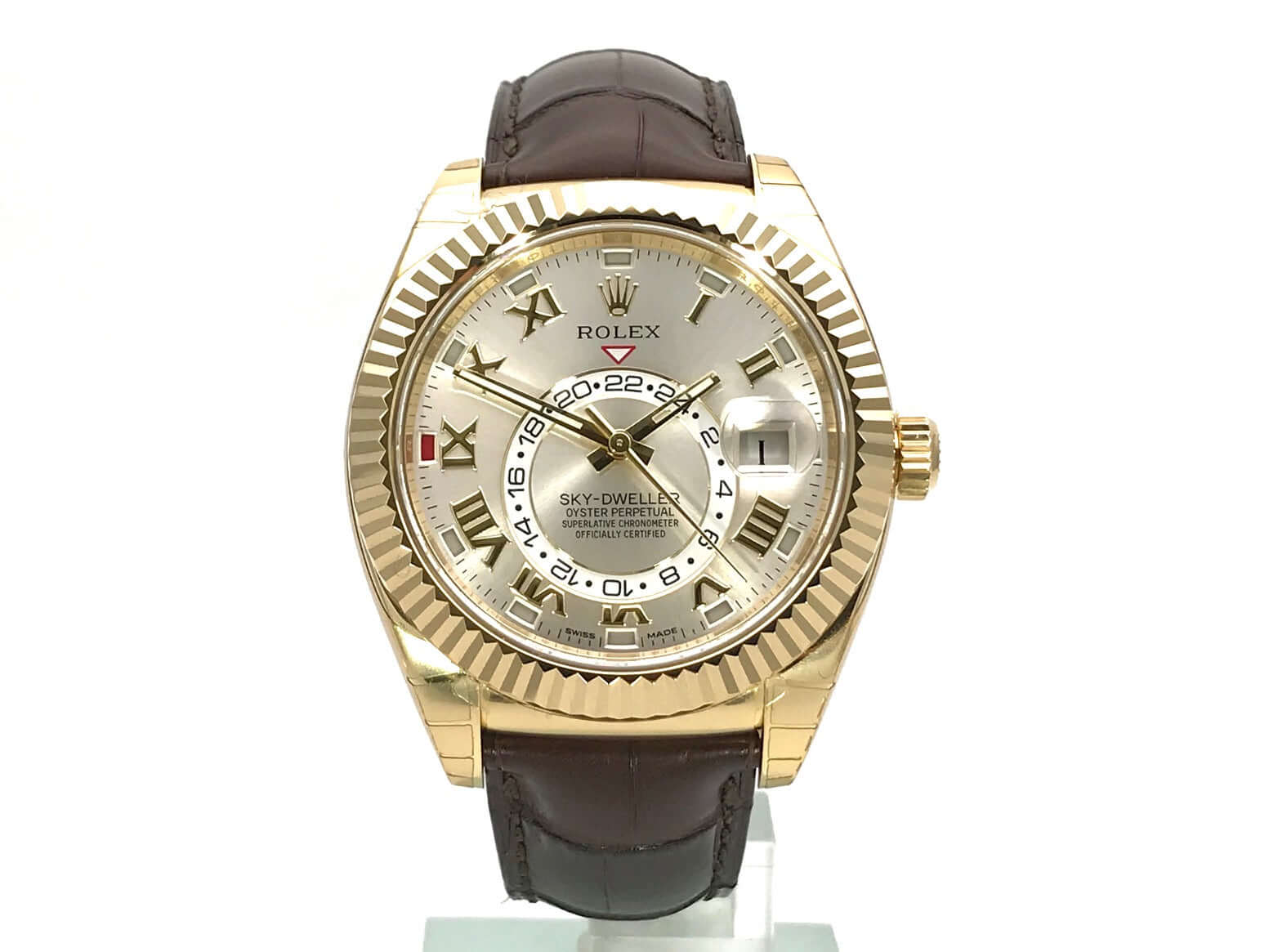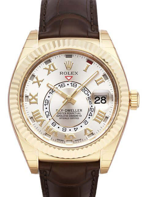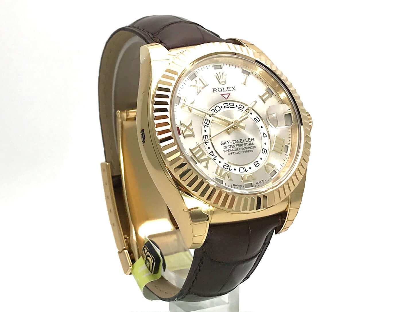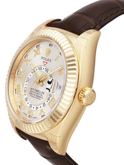 Rolex Sky-Dweller 326138 Gelbgold Leder Silber Römisch