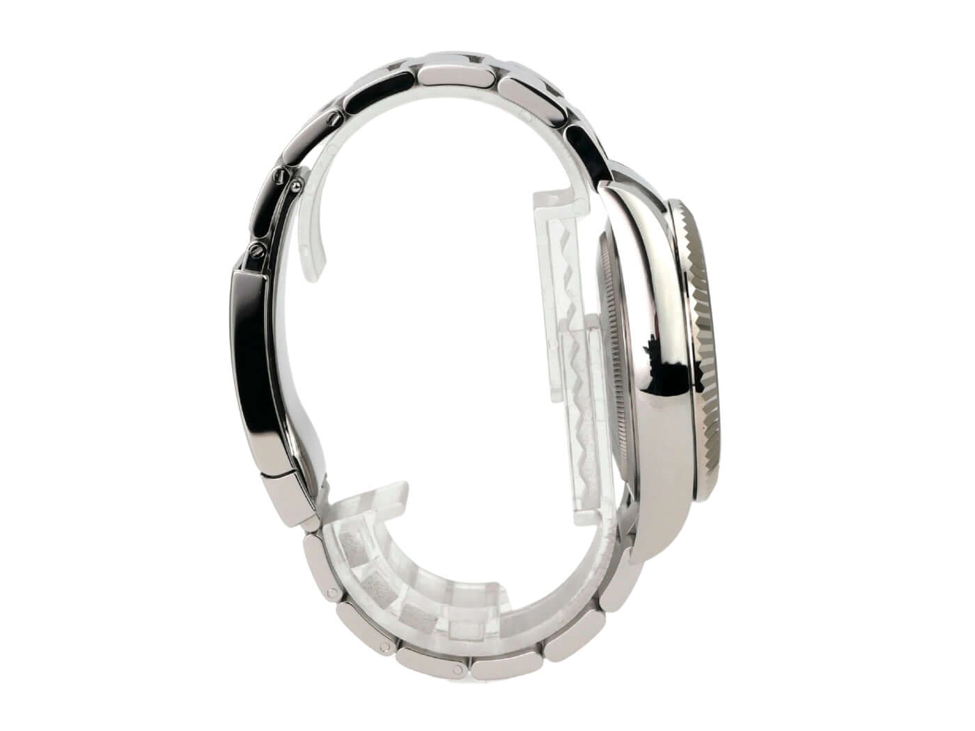 Gehäuse aus Edelstahl poliert und satiniert, Gehäusedurchmesser 42 mm, Gehäusehöhe 14 mm, in zwei Richtungen drehbare Ring-Command-Lünette aus 18 kt Weißgold, Oyster-Armband aus Edelstahl poliert und satiniert mit Oysterclasp-Faltschließe, blaues Zifferblatt mit aufgesetzten Leuchtindizes, Leuchtzeiger, Automatikwerk, Rolex Manufakturkaliber 9002 mit 40 Steine, Schwingung 28.800 A/h, Gangreserve für ca. 72 Stunden, Chronometer, SAROS Jahreskalender, Anzeige des Monats in Sichtfenster, kratzfestes Saphirglas, verschraubte Krone, verschraubter Edelstahlboden, wasserdicht bis zu 10 bar.