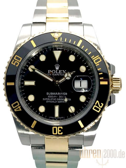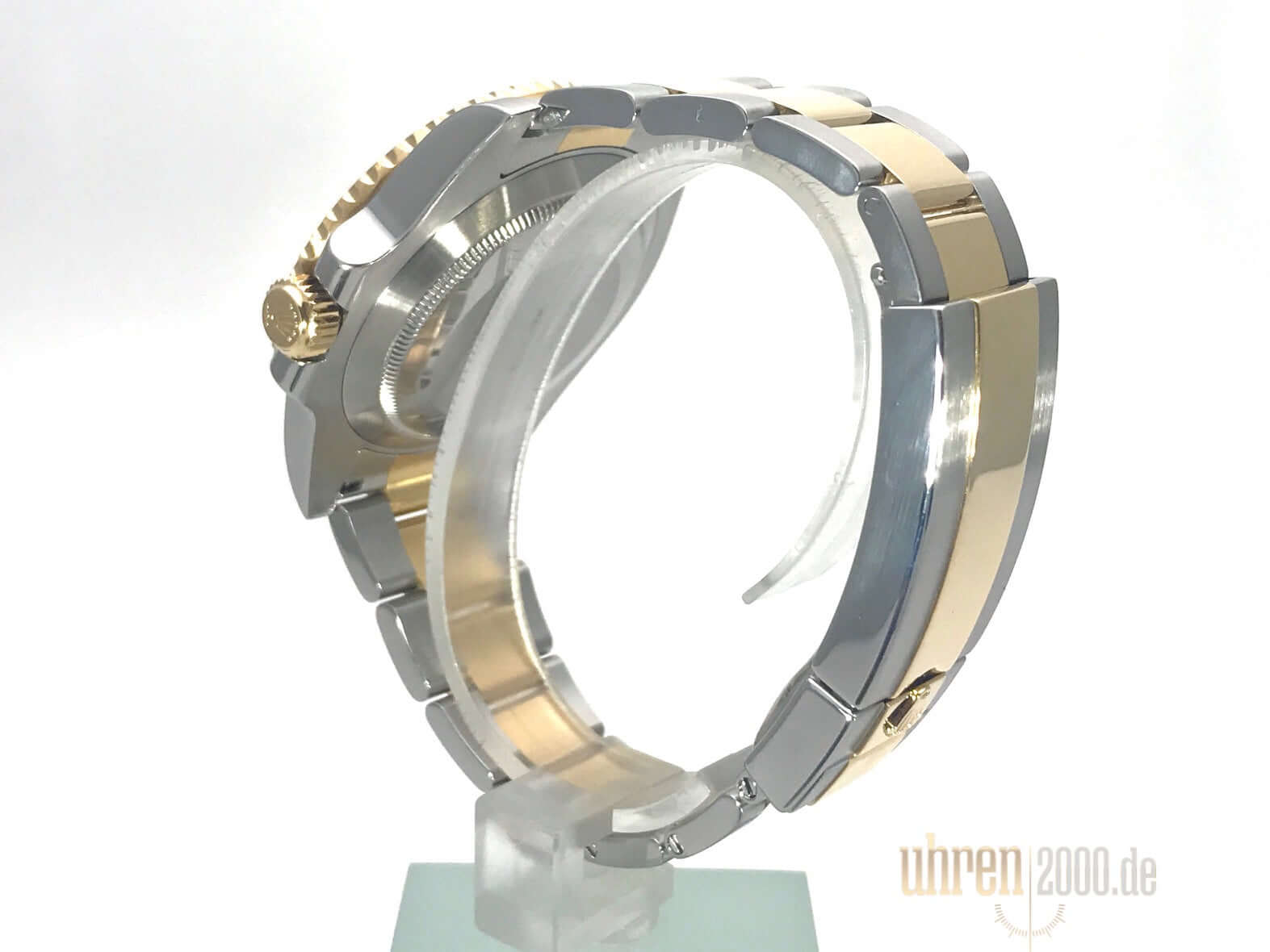 Gehäuse aus Edelstahl / 18 kt. Gelbgold poliert und satiniert, Gehäusedurchmesser 40 mm, Gehäusehöhe 12,5 mm, 18 kt. Gelbgold Lünette geriffelt mit schwarzer Keramik, 60 Minuten Skala und Leuchtpunkt auf der 12 Uhr Position, drehbar, Oyster Edelstahl / 18 kt. Gelbgold Armband poliert und satiniert mit Sicherheitsfaltschließe, schwarzes Zifferblatt mit aufgesetzten Leuchtindexen und Leuchtpunkten sowie goldenen Leuchtzeigern, Automatikwerk, Rolex Manufakturkaliber 3135, Schwingung 28.800 A/h, Datum, Chronometer, kratzresistentes Saphirglas, verschraubbare Krone mit Flankenschutz, Edelstahlboden verschraubt, Wasserdicht bis zu 30 bar.