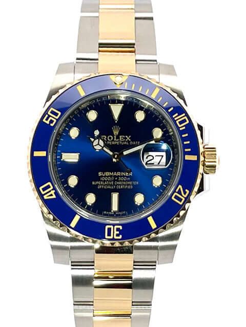 Gehäuse aus Edelstahl / 18 kt Gelbgold poliert und satiniert, Gehäusedurchmesser 40 mm, Gehäusehöhe 12,5 mm, Lünette drehbar aus 18 Karat Gelbgold, geriffelt mit blauer Keramik Einlage, 60 Minuten Skala und Leuchtpunkt auf der 12 Uhr Position, Oyster Edelstahl / 18 Karat Gelbgold Armband poliert und satiniert mit Sicherheitsfaltschließe, blaues Sonnenschliff Zifferblatt mit aufgesetzten Leuchtindizes und Leuchtpunkten, Leuchtzeiger, Automatikwerk, Rolex Manufakturkaliber 3135 mit 31 Steinen, Schwingung 28.800 A/h, Datumsanzeige, Chronometer, kratzresistentes Saphirglas, verschraubte 18 Karat Gelbgold Krone mit Flankenschutz, verschraubter Gehäuseboden aus Edelstahl, wasserdicht bis zu 30 bar.