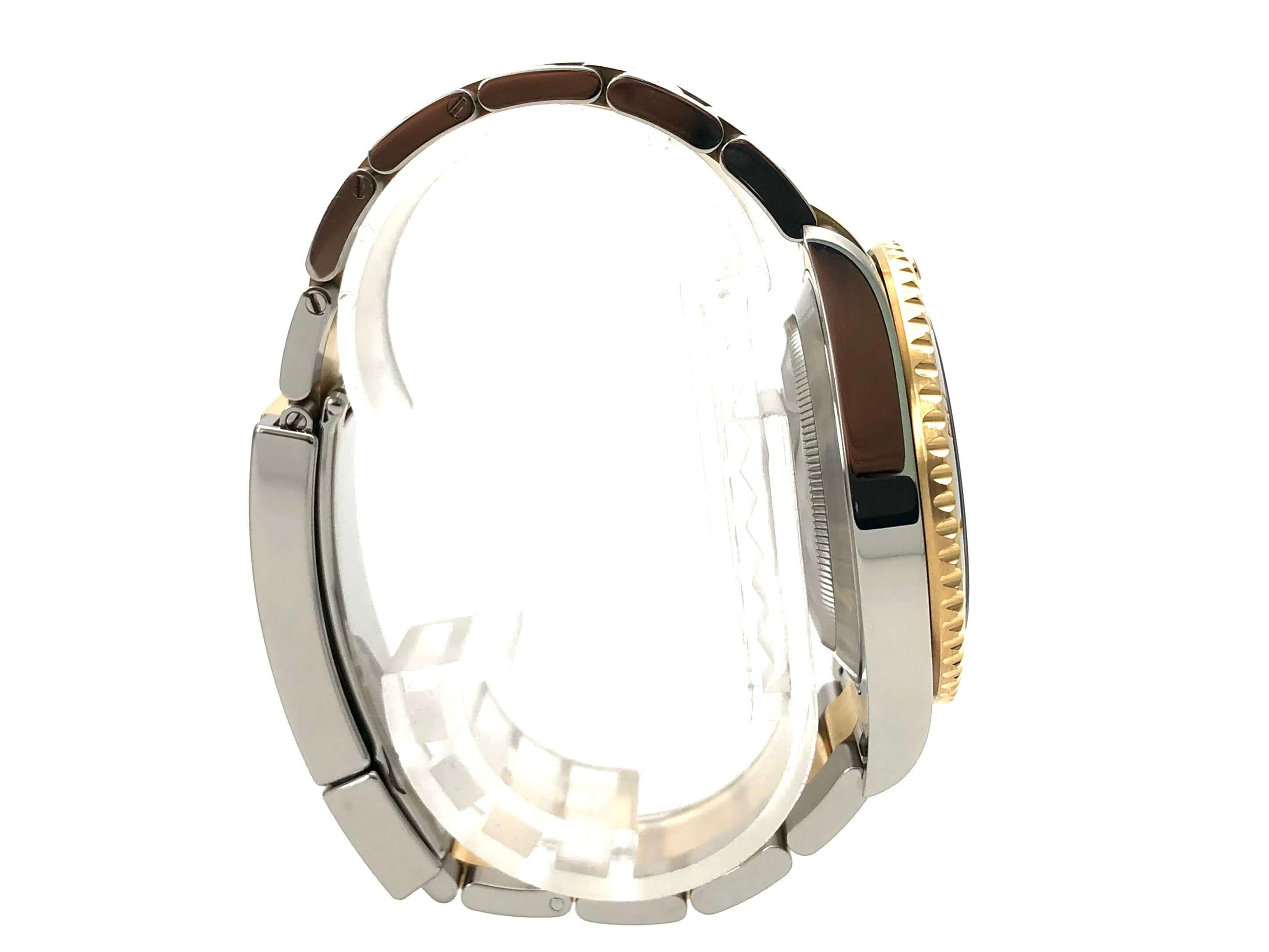 Gehäuse aus Edelstahl / 18 Karat Gelbgold poliert und satiniert, Gehäusedurchmesser 40 mm, Höhe 12,5 mm, geriffelte Lünette aus 18 Karat Gelbgold mit schwarzer Einlage, 60 Minuten Skala und Leuchtpunkt auf der 12 Uhr Position, drehbar, Oyster Armband aus Edelstahl / 18 Karat Gelbgold poliert und satiniert mit Sicherheitsfaltschließe, schwarzes Zifferblatt mit aufgesetzten Leuchtindizes und Leuchtpunkten sowie goldenen Leuchtzeigern, Automatikwerk, Rolex Manufakturkaliber 3135, Schwingung 28.800 A/h, Datum, Chronometer, kratzresistentes Saphirglas, verschraubbare Krone mit Flankenschutz, verschraubter Edelstahlboden, wasserdicht bis zu 30 bar.