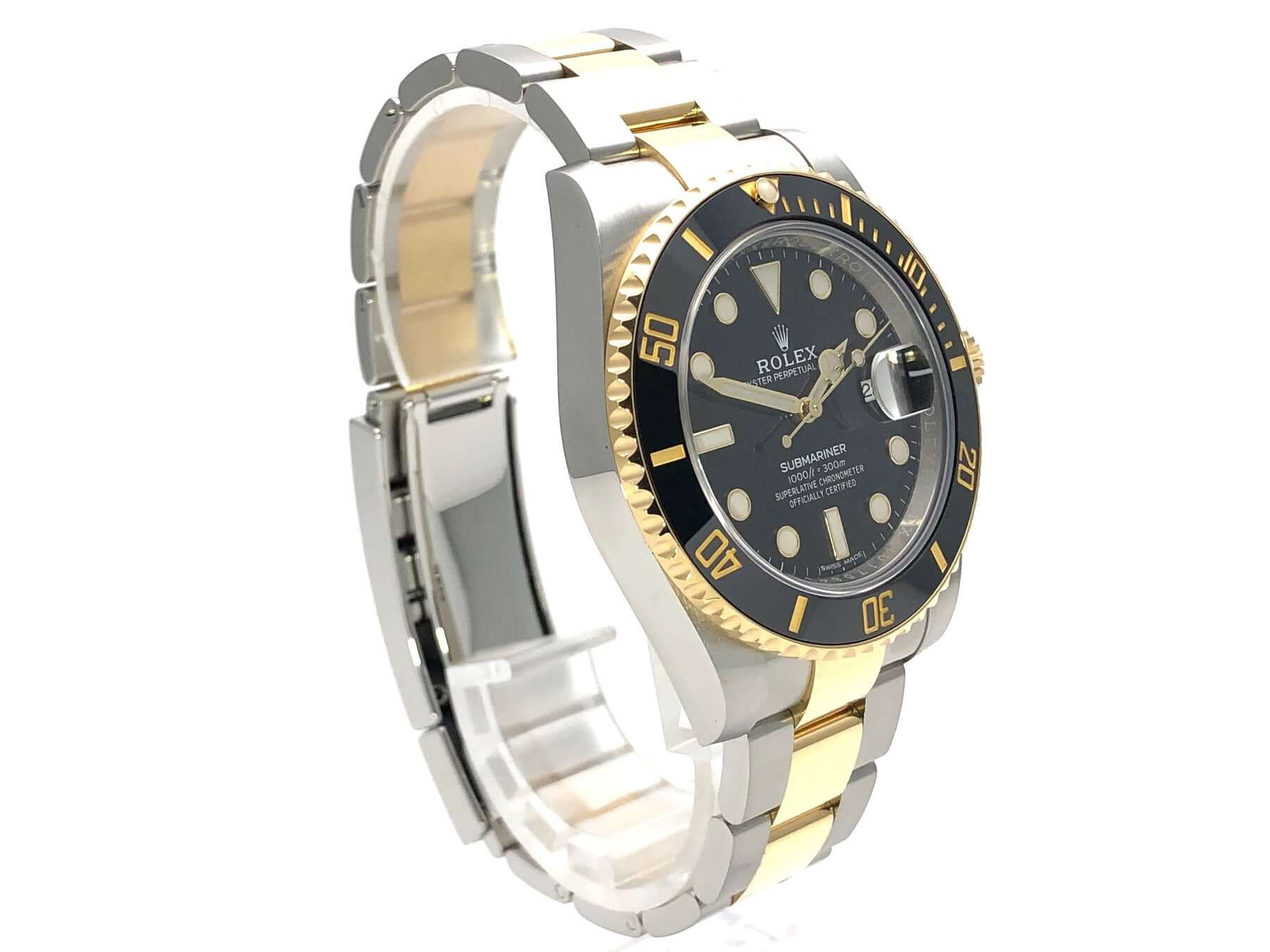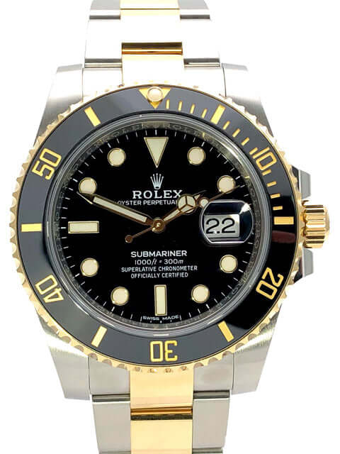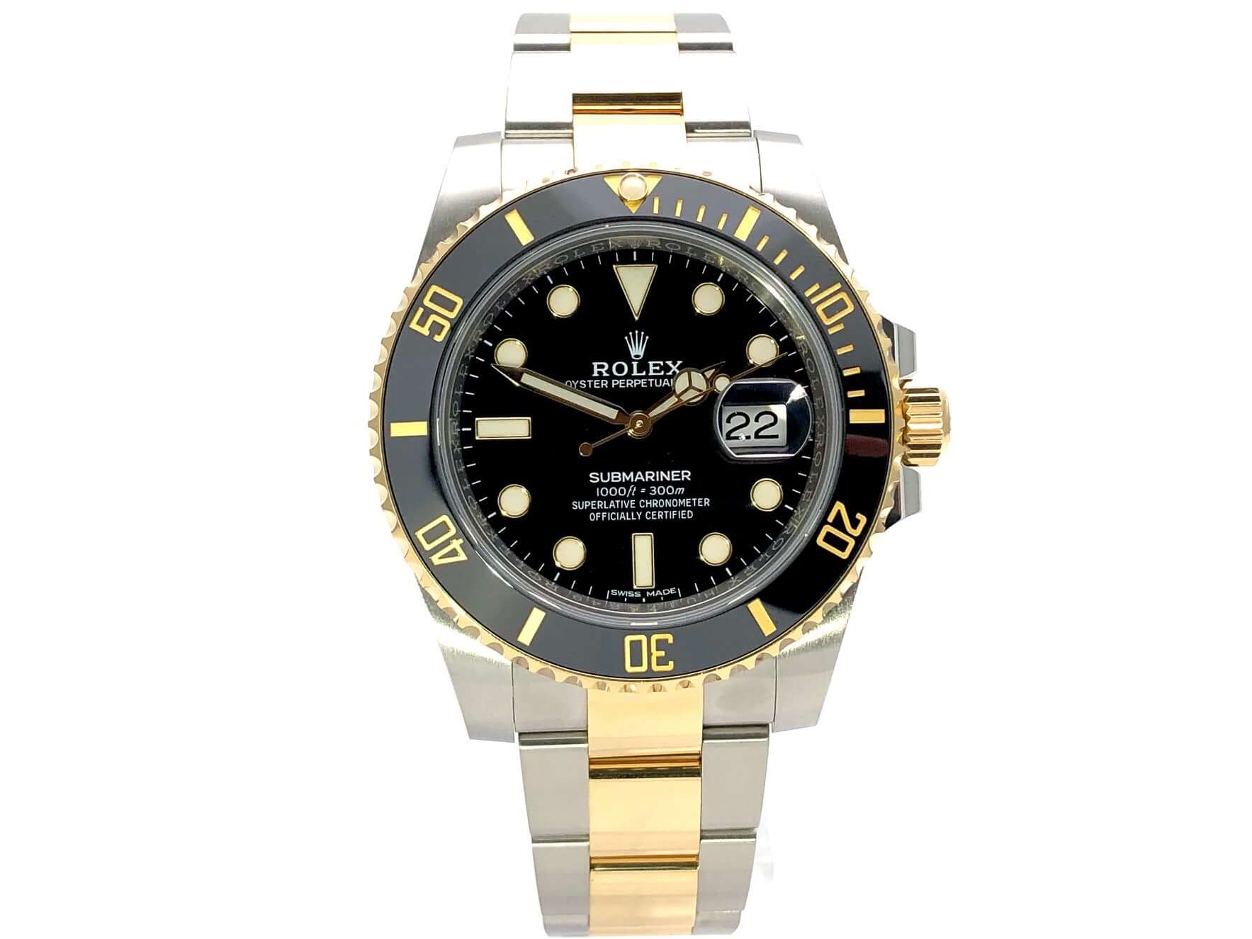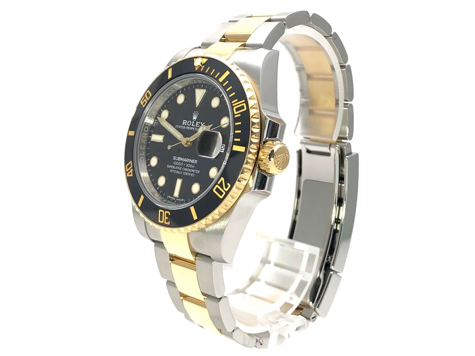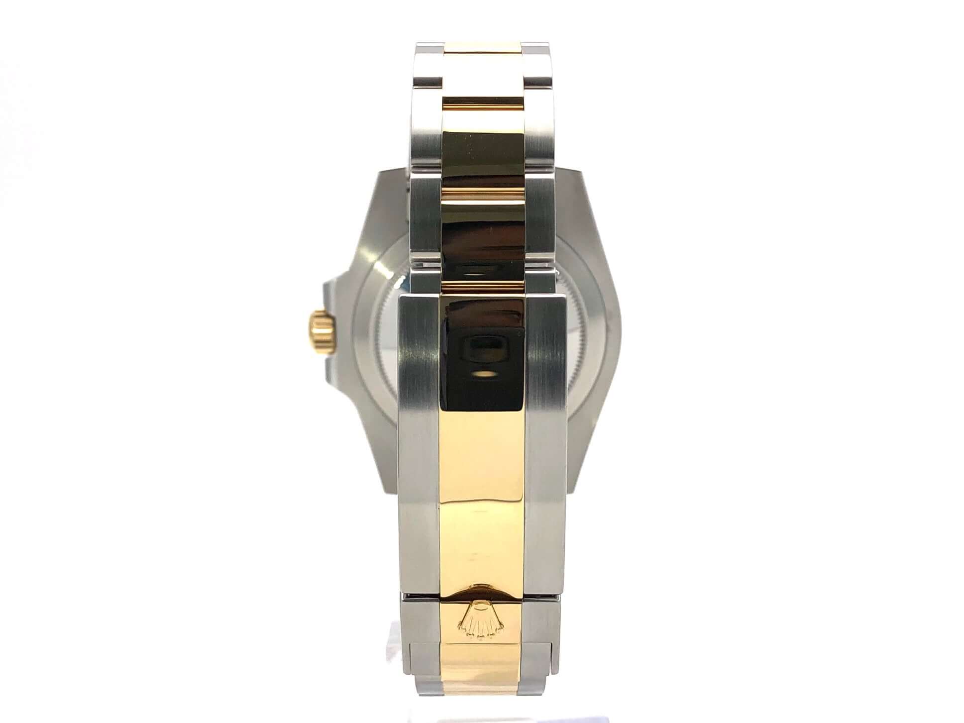Gehäuse aus Edelstahl / 18 Karat Gelbgold poliert und satiniert, Gehäusedurchmesser 40 mm, Höhe 12,5 mm, geriffelte Lünette aus 18 Karat Gelbgold mit schwarzer Einlage, 60 Minuten Skala und Leuchtpunkt auf der 12 Uhr Position, drehbar, Oyster Armband aus Edelstahl / 18 Karat Gelbgold poliert und satiniert mit Sicherheitsfaltschließe, schwarzes Zifferblatt mit aufgesetzten Leuchtindizes und Leuchtpunkten, goldene Leuchtzeiger, Automatikwerk, Rolex Manufakturkaliber 3135, Schwingung 28.800 A/h, Datum, Chronometer, kratzresistentes Saphirglas, verschraubbare Krone mit Flankenschutz, verschraubter Edelstahlboden, Wasserdicht bis zu 30 bar.