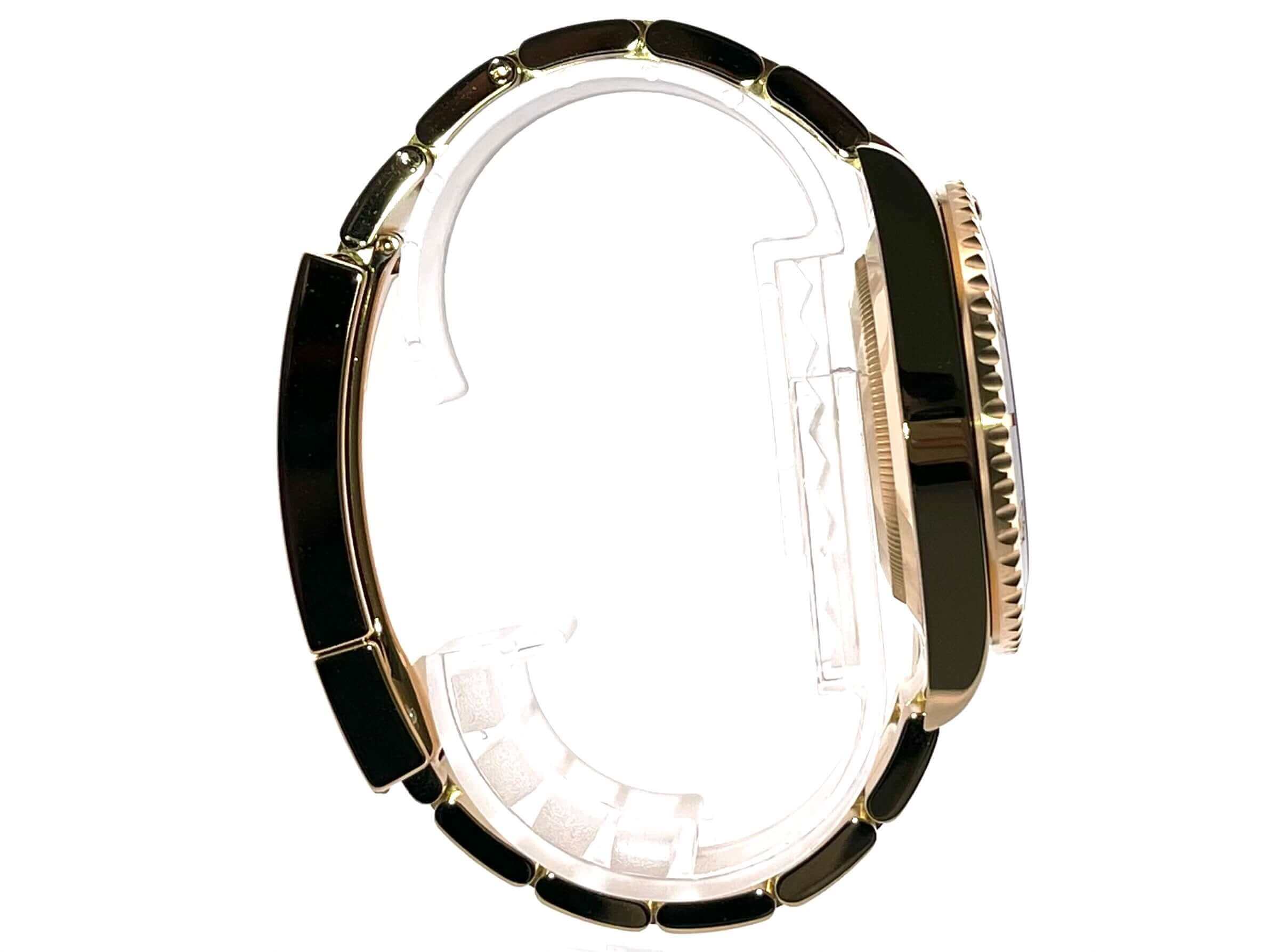 Gehäuse aus 18 Karat Gelbgold poliert und satiniert, Gehäusedurchmesser 40 mm, Höhe 12,5 mm, 18 Karat Gelbgold Lünette geriffelt, drehbar mit schwarzer Keramik Einlage, 60 Minuten Skala und Leuchtpunkt auf der 12 Uhr Position, Oyster 18 Karat Gelbgold Armband, poliert und satiniert mit Sicherheitsfaltschließe, schwarzes Zifferblatt mit aufgesetzten Leuchtindizes und Leuchtpunkten, sowie goldene Leuchtzeiger, Automatikwerk, Chronometer, Rolex Manufakturkaliber 3135 mit 31 Steinen, Schwingung 28.800 A/h, Datumsanzeige, kratzresistentes Saphirglas, Krone verschraubbar 18 Karat Gelbgold mit Flankenschutz, verschraubter Gehäuseboden aus 18 Karat Gelbgold, Wasserdicht bis zu 30 bar.