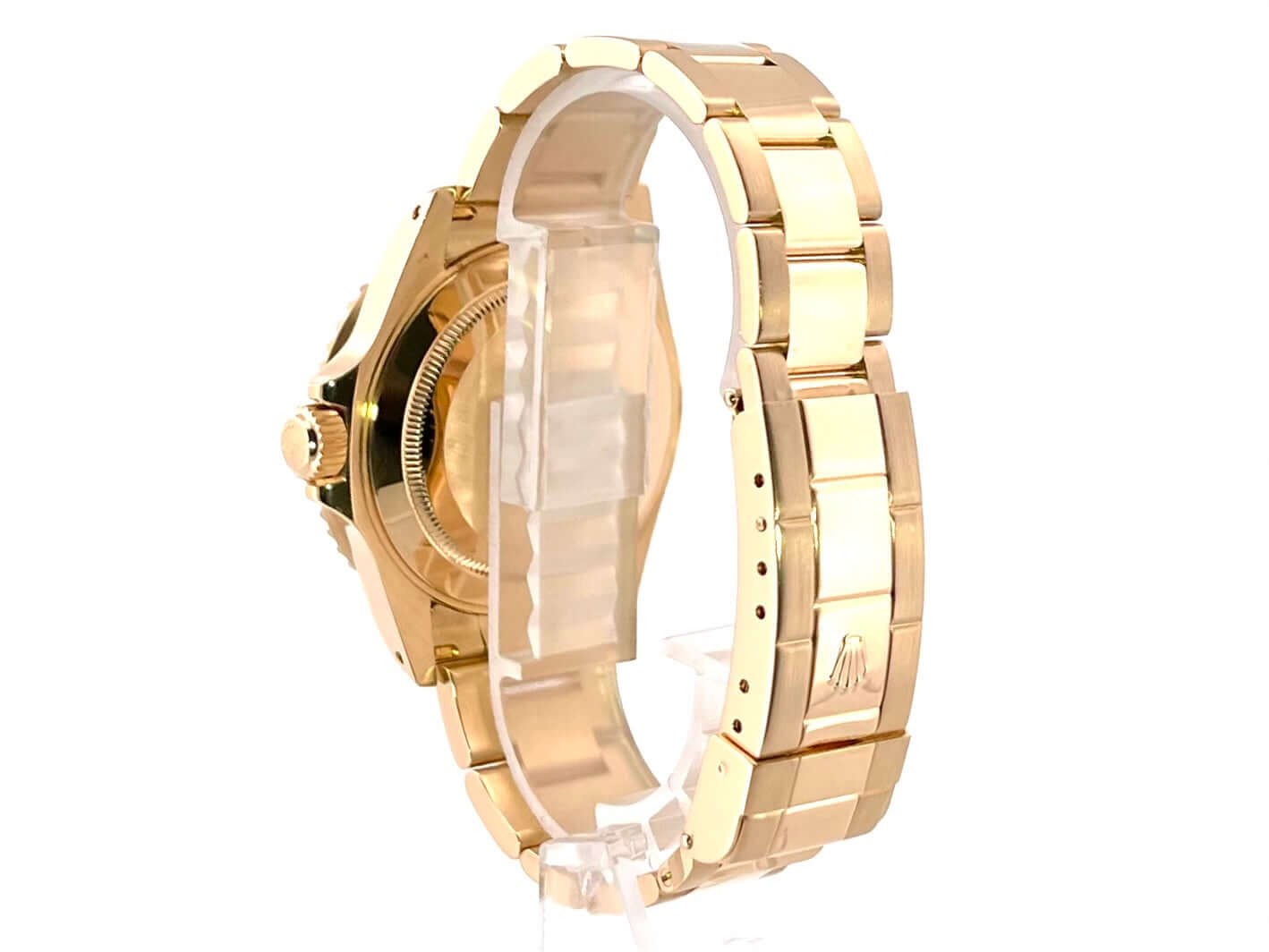 Gehäuse aus 18 Karat Gelbgold poliert und satiniert, Gehäusedurchmesser 40 mm, Gehäusehöhe 12,5 mm, Lünette drehbar aus 18 Karat Gelbgold, geriffelt mit schwarzer Einlage, 60 Minuten Skala und Leuchtpunkt auf der 12 Uhr Position, Oyster 18 Karat Gelbgold Armband, poliert und satiniert mit Sicherheitsfaltschließe, schwarzes Zifferblatt mit aufgesetzten Leuchtindizes und Leuchtpunkten, goldene Leuchtzeiger, Automatikwerk, Rolex Manufakturkaliber 3135 mit 31 Steinen, Schwingung 28.800 A/h, Datumsanzeige, Chronometer, kratzresistentes Saphirglas, verschraubte 18 Karat Gelbgold Krone mit Flankenschutz, verschraubter Gehäuseboden aus 18 Karat Gelbgold, Wasserdicht bis zu 30 bar.