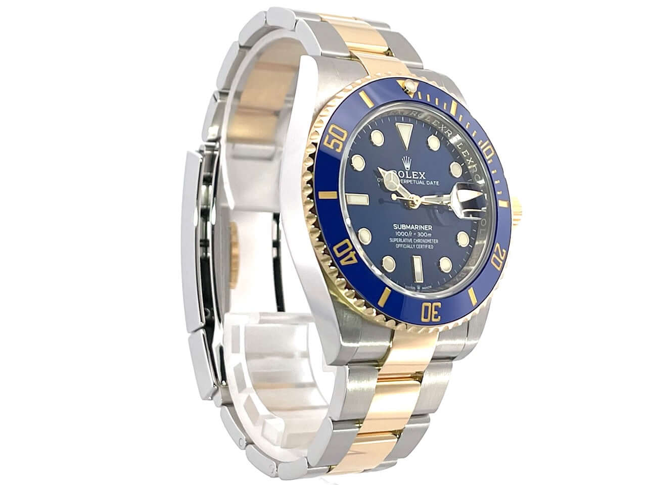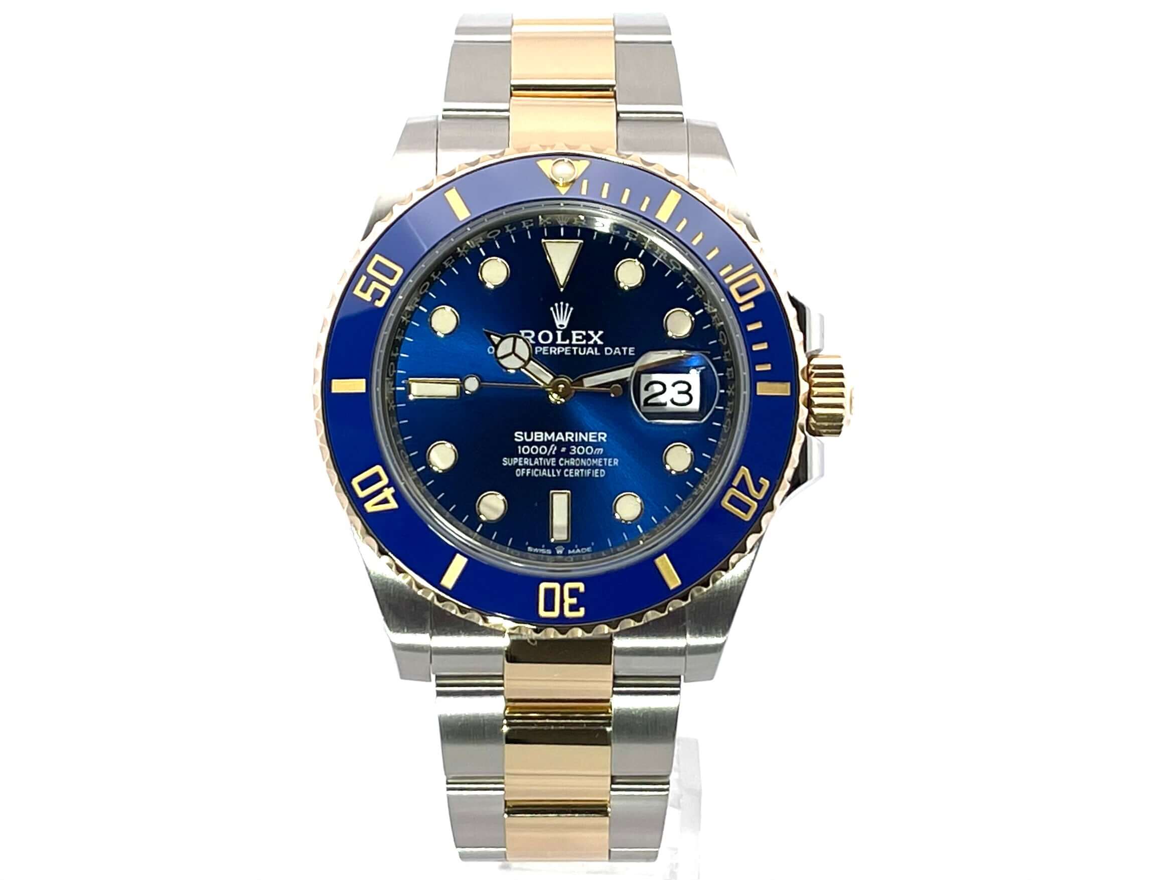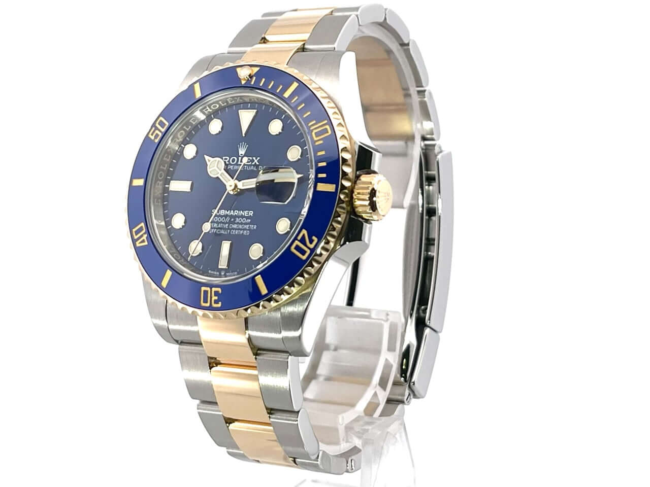 Gehäuse aus Edelstahl poliert und satiniert, Gehäusedurchmesser 41 mm, Gehäusehöhe 12,5 mm, 18 Karat Gelbgold Lünette geriffelt mit blauer Keramik Einlage, 60 Minuten Skala und Leuchtpunkt drehbar, Oyster Edelstahl / 18 Karat Gelbgold Armband poliert und satiniert mit Sicherheitsfaltschließe, blaues Zifferblatt mit aufgesetzten Leuchtindizes und Leuchtpunkten, Leuchtzeiger, Automatikwerk, Kaliber Rolex 3235 mit 31 Steine, 28.800 A/h, 70 Stunden Gangreserve, Datumsanzeige mit Schnellverstellung und Lupe, Chronometer, Saphirglas, Krone verschraubt mit Flankenschutz, Edelstahlboden verschraubt, Wasserdicht bis zu 30 bar.