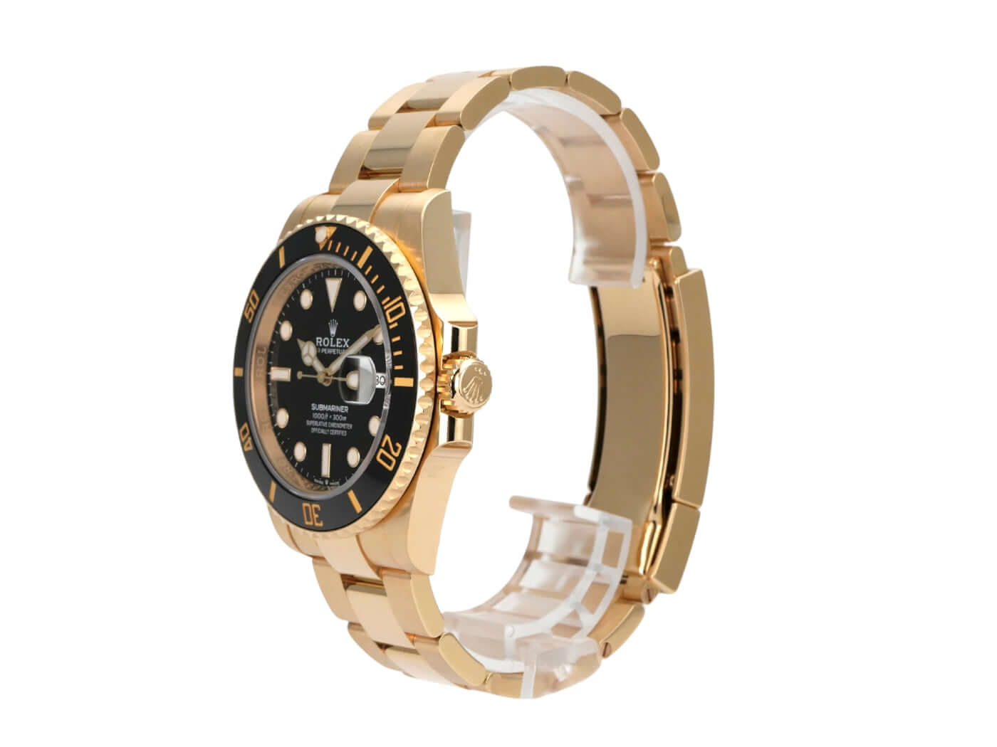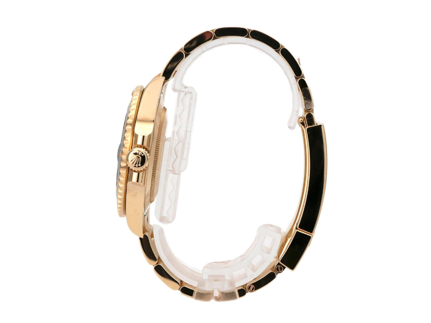 Gehäuse aus 18 Karat Gelbgold poliert und satiniert, Gehäusedurchmesser 41 mm, Gehäusehöhe 12,5 mm, 18 Karat Gelbgold Lünette geriffelt mit schwarzer Keramik Einlage, 60 Minuten Skala und Leuchtpunkt drehbar, Oyster 18 Karat Gelbgold Armband poliert und satiniert mit Sicherheitsfaltschließe, schwarzes Zifferblatt mit aufgesetzten Leuchtindizes und Leuchtpunkten, Leuchtzeiger, Automatikwerk, Kaliber Rolex 3235 mit 31 Steine, 28.800 A/h, 70 Stunden Gangreserve, Datumsanzeige mit Schnellverstellung und Lupe, Chronometer, Saphirglas, Krone verschraubt mit Flankenschutz, 18 Karat Gelbgoldboden verschraubt, wasserdicht bis zu 30 bar.