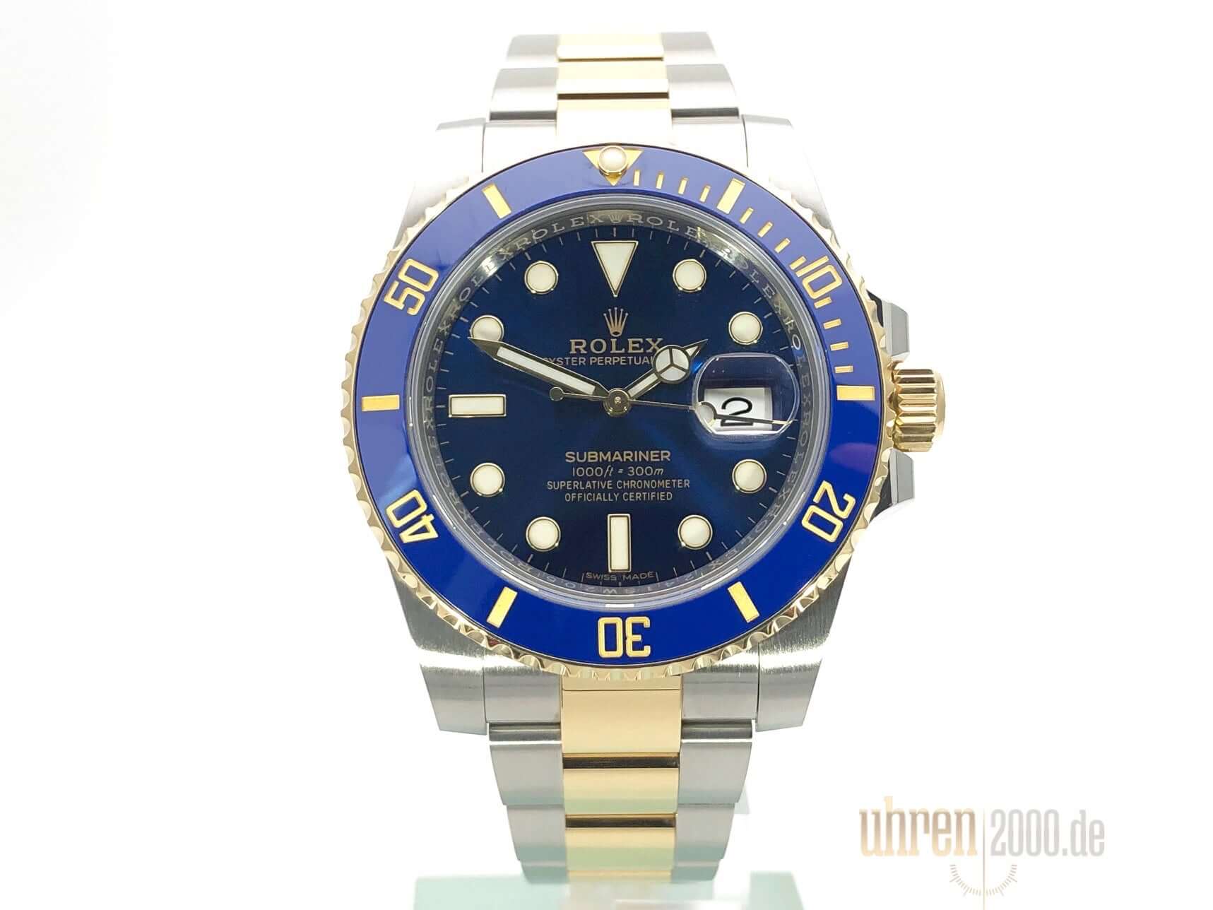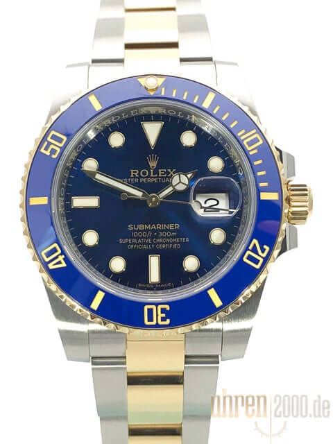 Gehäuse aus Edelstahl / 18 kt Gelbgold poliert und satiniert, Gehäusedurchmesser 40 mm, Gehäusehöhe 12,5 mm, Lünette drehbar aus 18 Karat Gelbgold, geriffelt mit blauer Keramik Einlage, 60 Minuten Skala und Leuchtpunkt auf der 12 Uhr Position, Oyster Edelstahl / 18 Karat Gelbgold Armband poliert und satiniert mit Sicherheitsfaltschließe, blaues Sonnenschliff Zifferblatt mit aufgesetzten Leuchtindizes und Leuchtpunkten, Leuchtzeiger, Automatikwerk, Rolex Manufakturkaliber 3135 mit 31 Steinen, Schwingung 28.800 A/h, Datumsanzeige, Chronometer, kratzresistentes Saphirglas, verschraubte 18 Karat Gelbgold Krone mit Flankenschutz, verschraubter Gehäuseboden aus Edelstahl, Wasserdicht bis zu 30 bar.