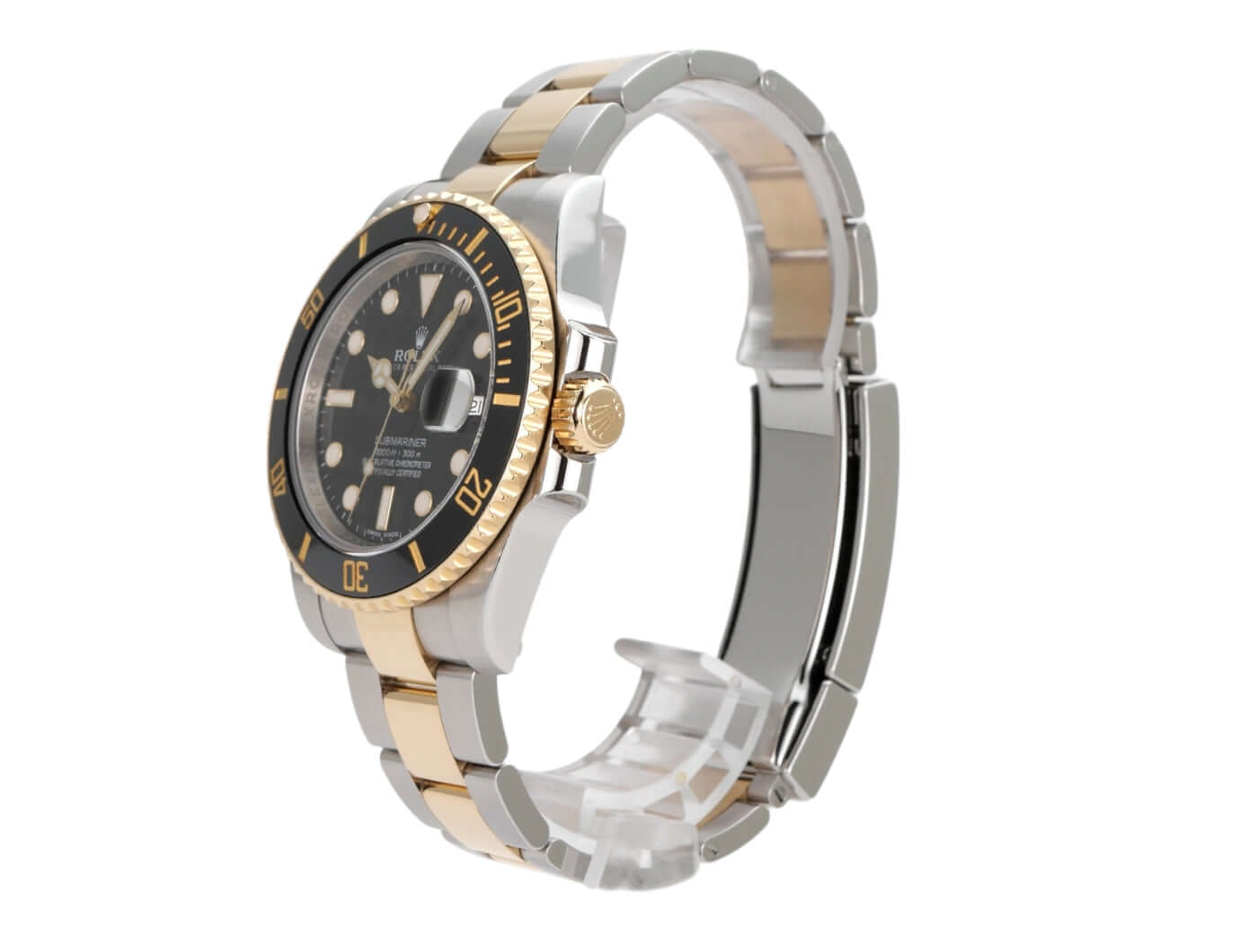 Gehäuse aus Edelstahl / 18 Karat Gelbgold poliert und satiniert, Gehäusedurchmesser 40 mm, Höhe 12,5 mm, geriffelte Lünette aus 18 Karat Gelbgold mit schwarzer Einlage, 60 Minuten Skala und Leuchtpunkt auf der 12-Uhr-Position, drehbar, Oyster Armband aus Edelstahl / 18 Karat Gelbgold poliert und satiniert mit Sicherheitsfaltschließe, schwarzes Zifferblatt mit aufgesetzten Leuchtindizes und Leuchtpunkten sowie goldenen Leuchtzeigern, Automatikwerk, Rolex Manufakturkaliber 3135, Schwingung 28.800 A/h, Datum, Chronometer, kratzresistentes Saphirglas, verschraubbare Krone mit Flankenschutz, verschraubter Edelstahlboden, wasserdicht bis zu 30 bar.