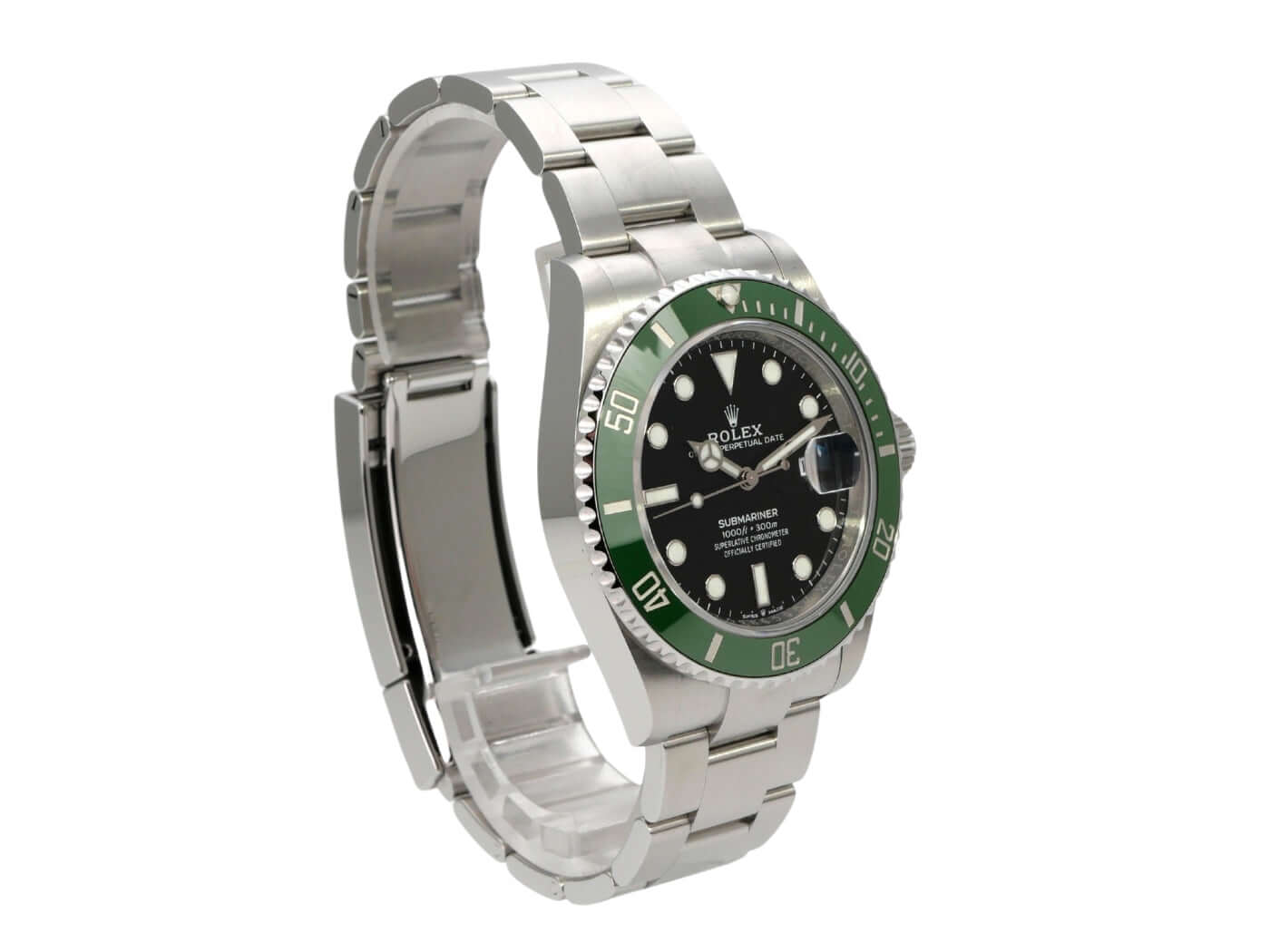 Gehäuse aus Edelstahl poliert und satiniert, Gehäusedurchmesser 41 mm, Gehäusehöhe 12,5 mm, Edelstahl Lünette mit grüner Keramik Einlage, 60 Minuten Skala und Leuchtpunkt drehbar, Oyster Edelstahlarmband poliert und satiniert mit Sicherheitsfaltschließe, schwarzes Zifferblatt mit aufgesetzten Leuchtindizes und Leuchtpunkten, Leuchtzeiger, Automatikwerk, Kaliber Rolex 3235 mit 31 Steinen, 28.800 A/h, 70 Stunden Gangreserve, Datumsanzeige mit Schnellverstellung und Lupe, Chronometer, Saphirglas, Krone verschraubt mit Flankenschutz, Edelstahlboden verschraubt, wasserdicht bis zu 30 bar.