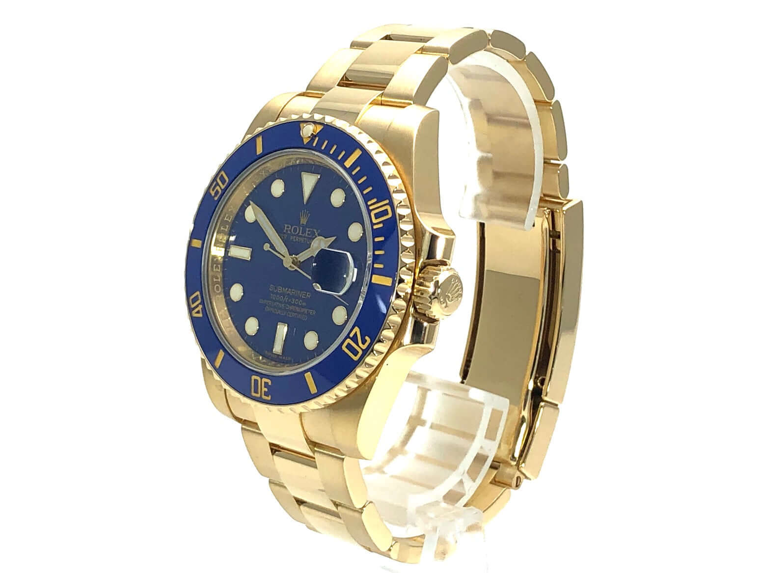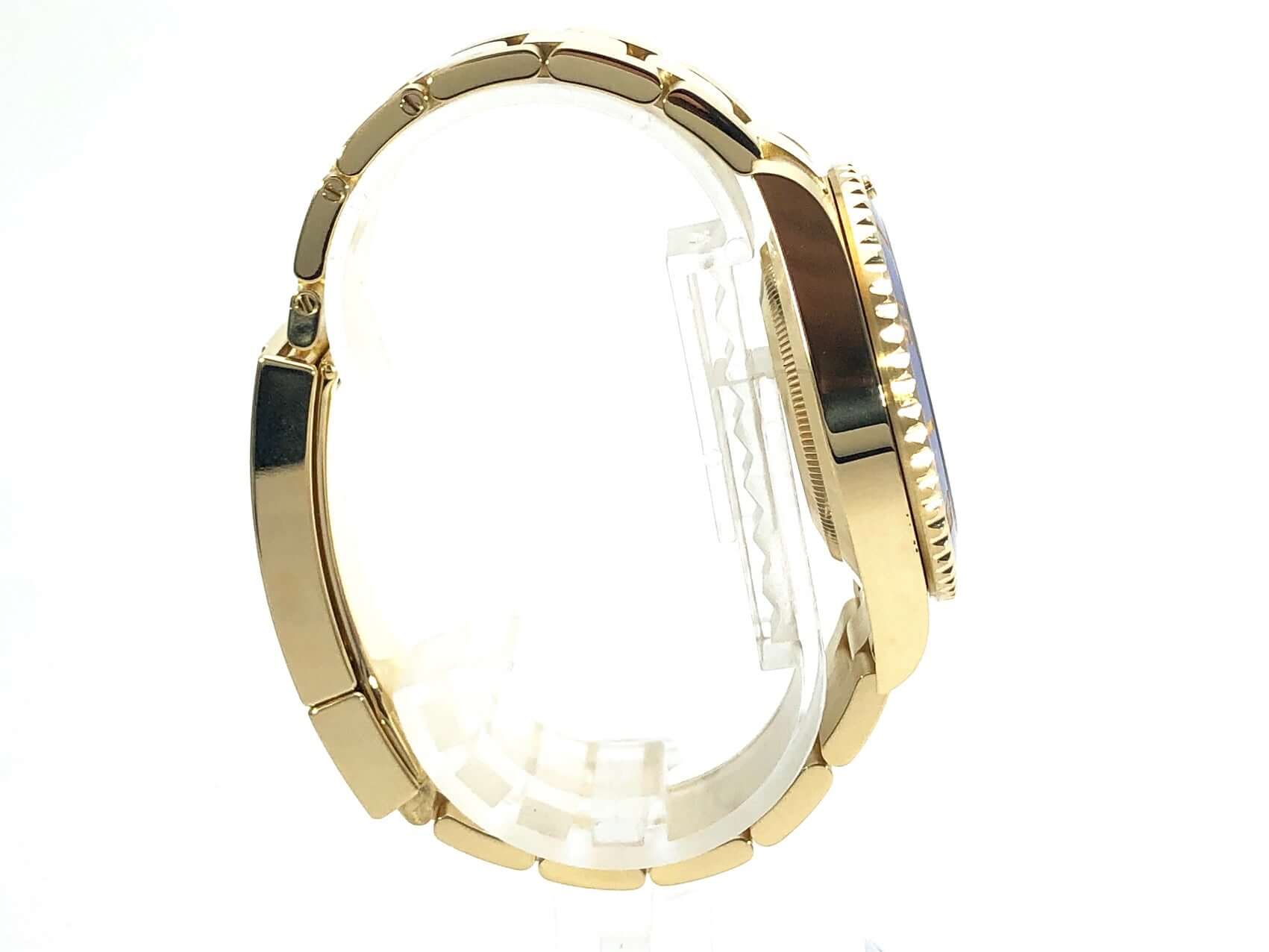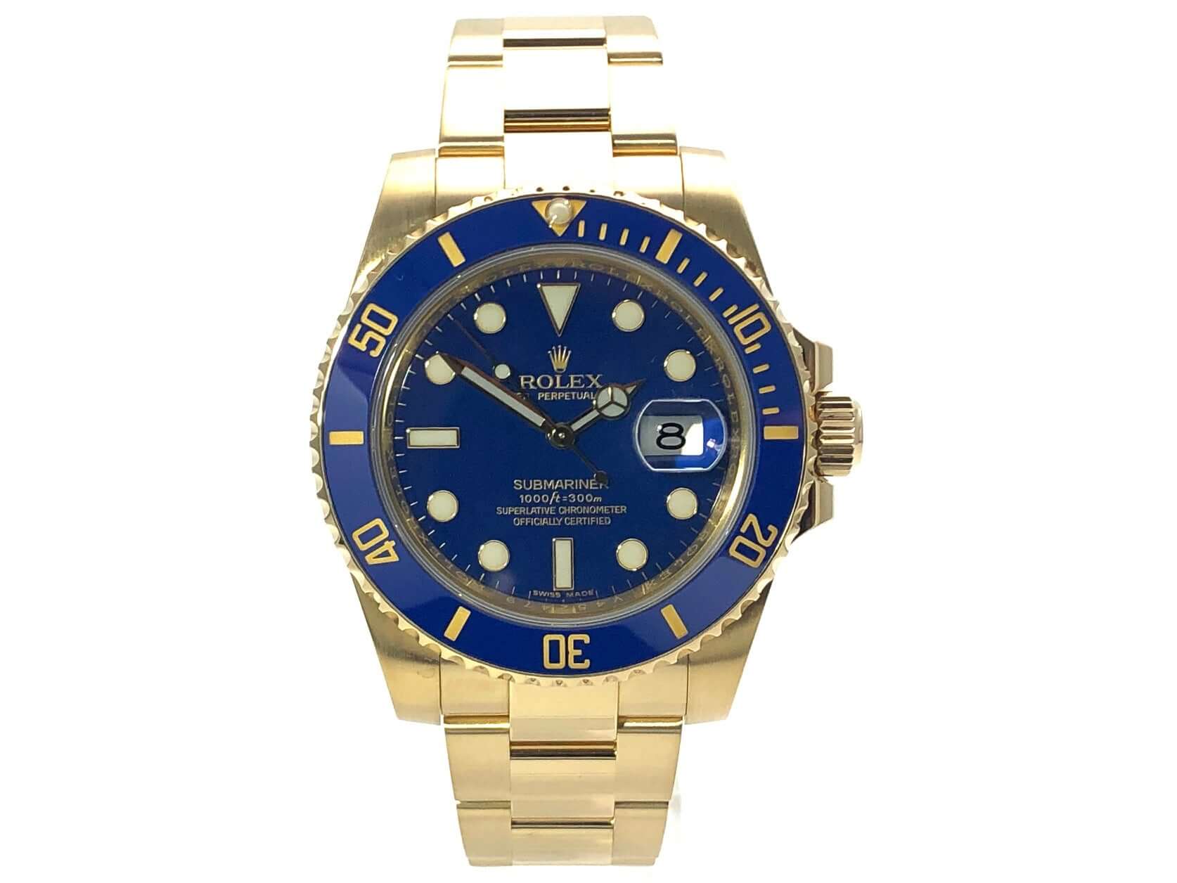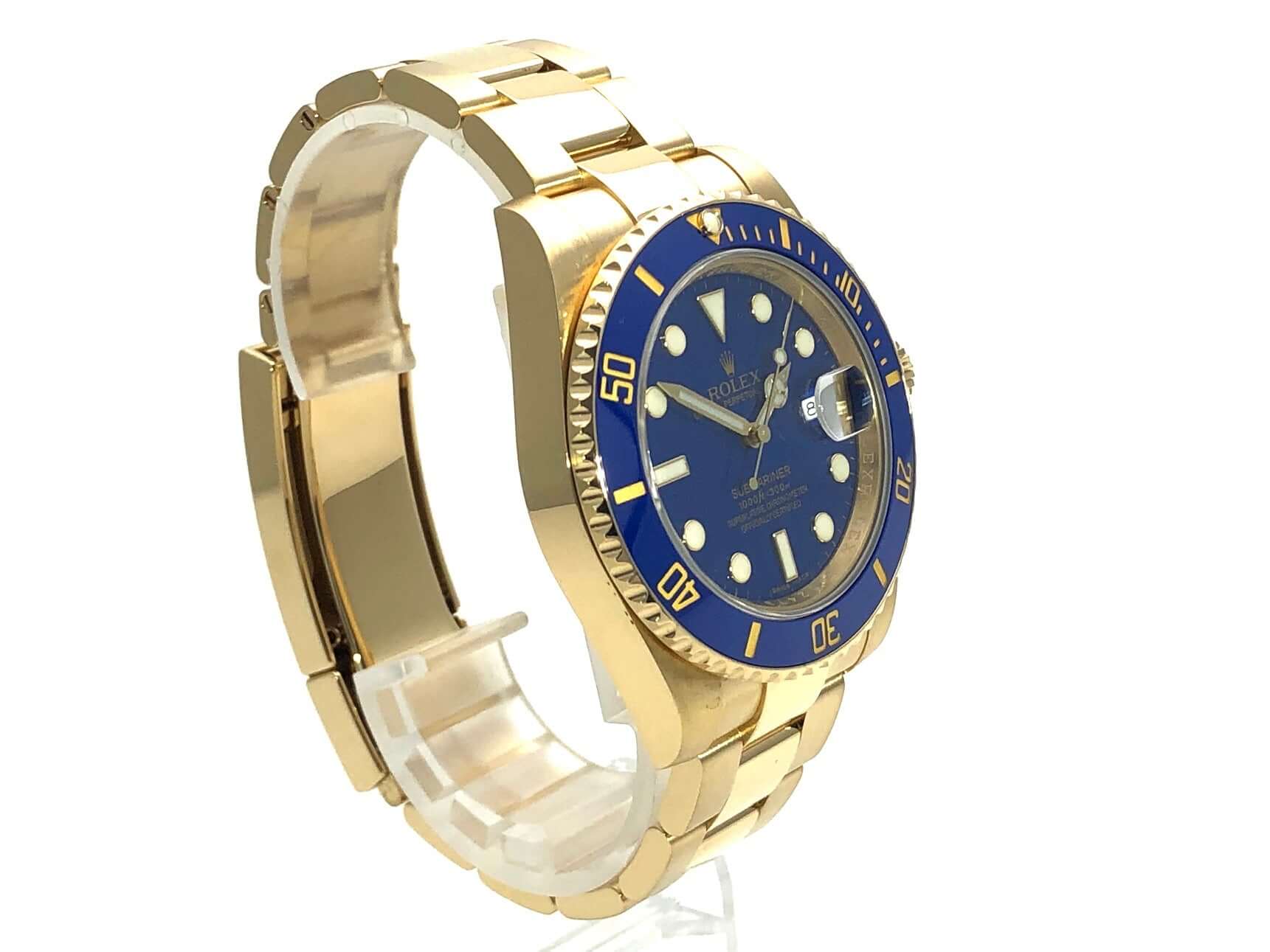 Gehäuse aus 18 Karat Gelbgold poliert und satiniert, Gehäusedurchmesser 40 mm, Gehäusehöhe 12,5 mm, 18 Karat Gelbgold Lünette geriffelt, drehbar mit blauer Keramik Einlage, 60 Minuten Skala und Leuchtpunkt auf der 12 Uhr Position, Oyster 18 Karat Gelbgold Armband poliert und satiniert mit Sicherheitsfaltschließe, blaues Zifferblatt mit aufgesetzten Leuchtindizes und Leuchtpunkten, sowie goldene Leuchtzeiger, Automatikwerk, Rolex Manufakturkaliber 3135 mit 31 Steinen, Schwingung 28.800 A/h, Datumsanzeige, Chronometer, kratzresistentes Saphirglas, Krone verschraubbar aus 18 Karat Gelbgold mit Flankenschutz, verschraubter Gehäuseboden aus 18 Karat Gelbgold, Wasserdicht bis zu 30 bar.