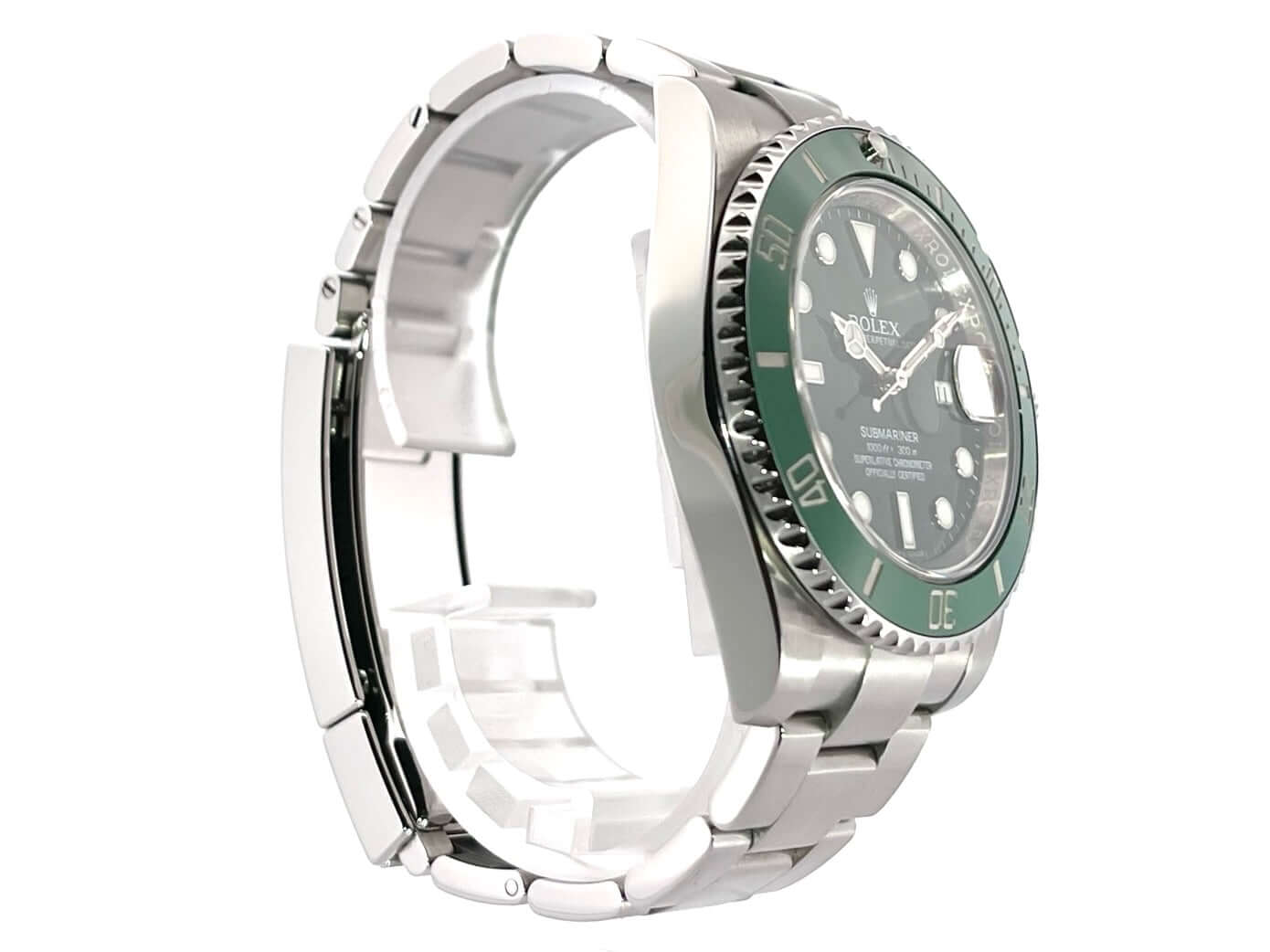 Gehäuse aus Edelstahl poliert und satiniert, Gehäusedurchmesser 40 mm, Gehäusehöhe 12,5 mm, Edelstahl Lünette mit grüner Keramik Einlage, 60 Minuten Skala und Leuchtpunkt drehbar, Oyster Edelstahlband poliert und satiniert mit Sicherheitsfaltschließe, grünes Zifferblatt mit aufgesetzten Leuchtindizes, Leuchtzeiger, Automatikwerk, Kaliber Rolex 3135 mit 31 Steine, 28.800 A/h, Datumsanzeige mit Schnellverstellung und Lupe, Chronometer, Saphirglas, Krone verschraubt mit Flankenschutz, Edelstahlboden verschraubt, Wasserdicht bis zu 30 bar.