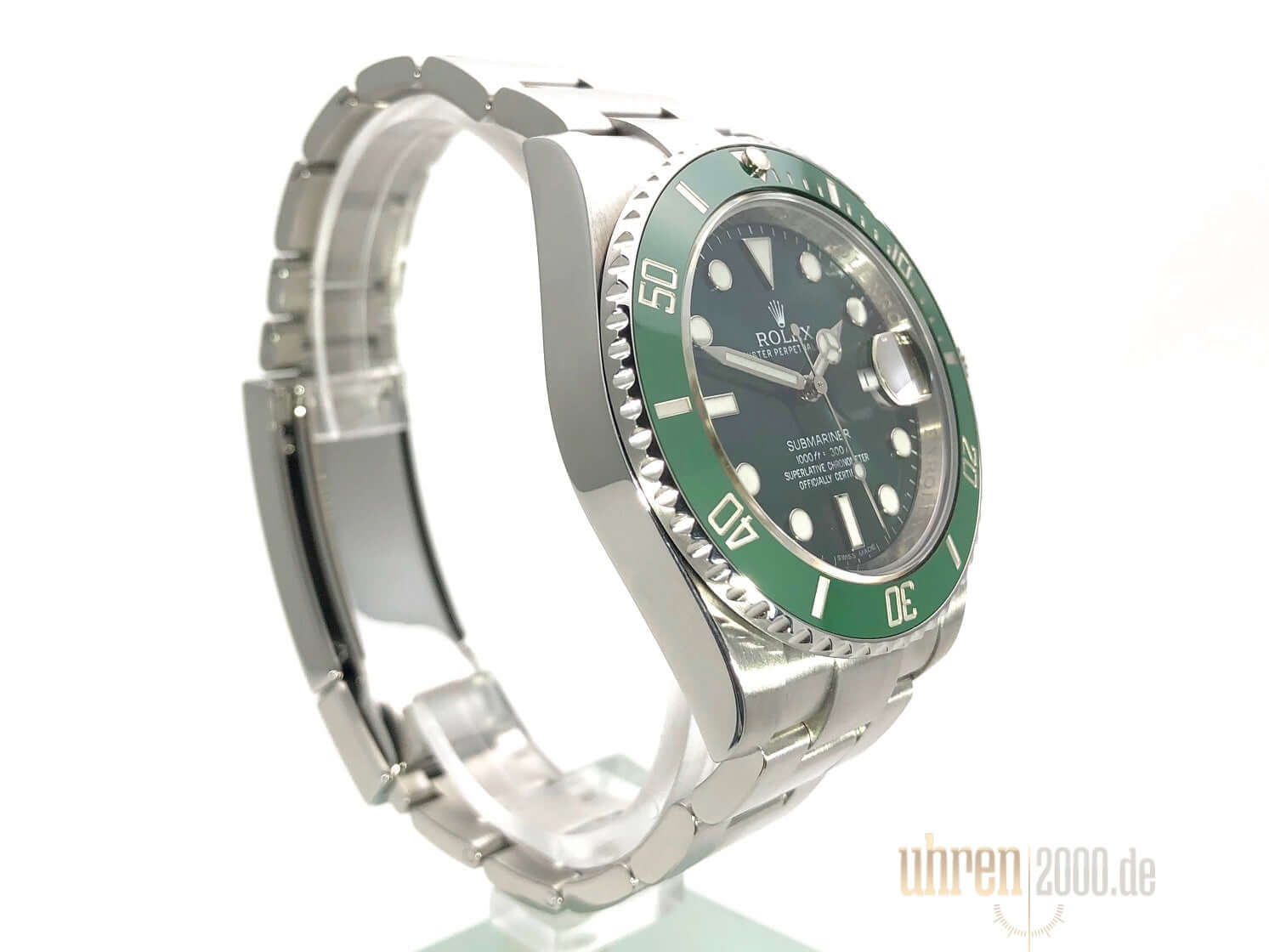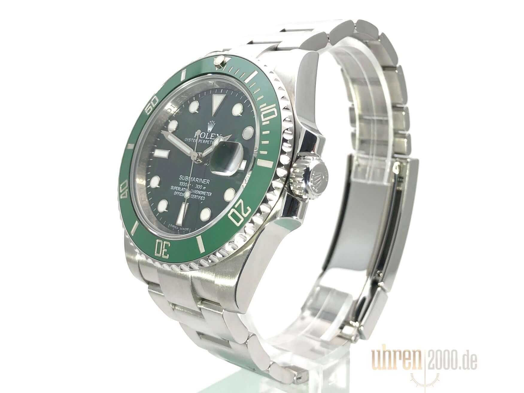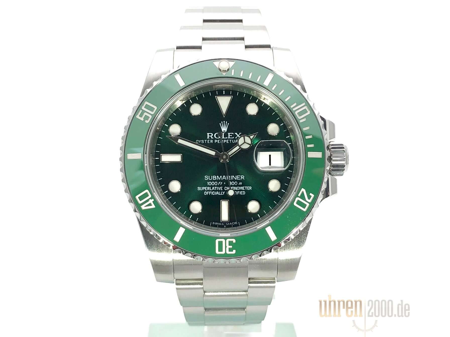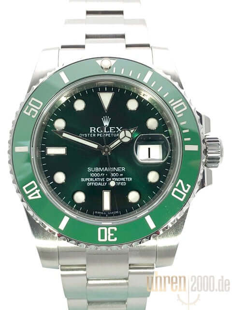 Gehäuse aus Edelstahl poliert und satiniert, Gehäusedurchmesser 40 mm, Gehäusehöhe 12,5 mm, Edelstahl Lünette mit grüner Keramik Einlage, 60 Minuten Skala und Leuchtpunkt drehbar, Oyster Edelstahlband poliert und satiniert mit Sicherheitsfaltschließe, grünes Zifferblatt mit aufgesetzten Leuchtindizes und Leuchtpunkten, Leuchtzeiger, Automatikwerk, Kaliber Rolex 3135 mit 31 Steine, 28.800 A/h, Datumsanzeige mit Schnellverstellung und Lupe, Chronometer, Saphirglas, Krone verschraubt mit Flankenschutz, Edelstahlboden verschraubt, Wasserdicht bis zu 30 bar.