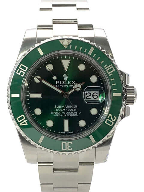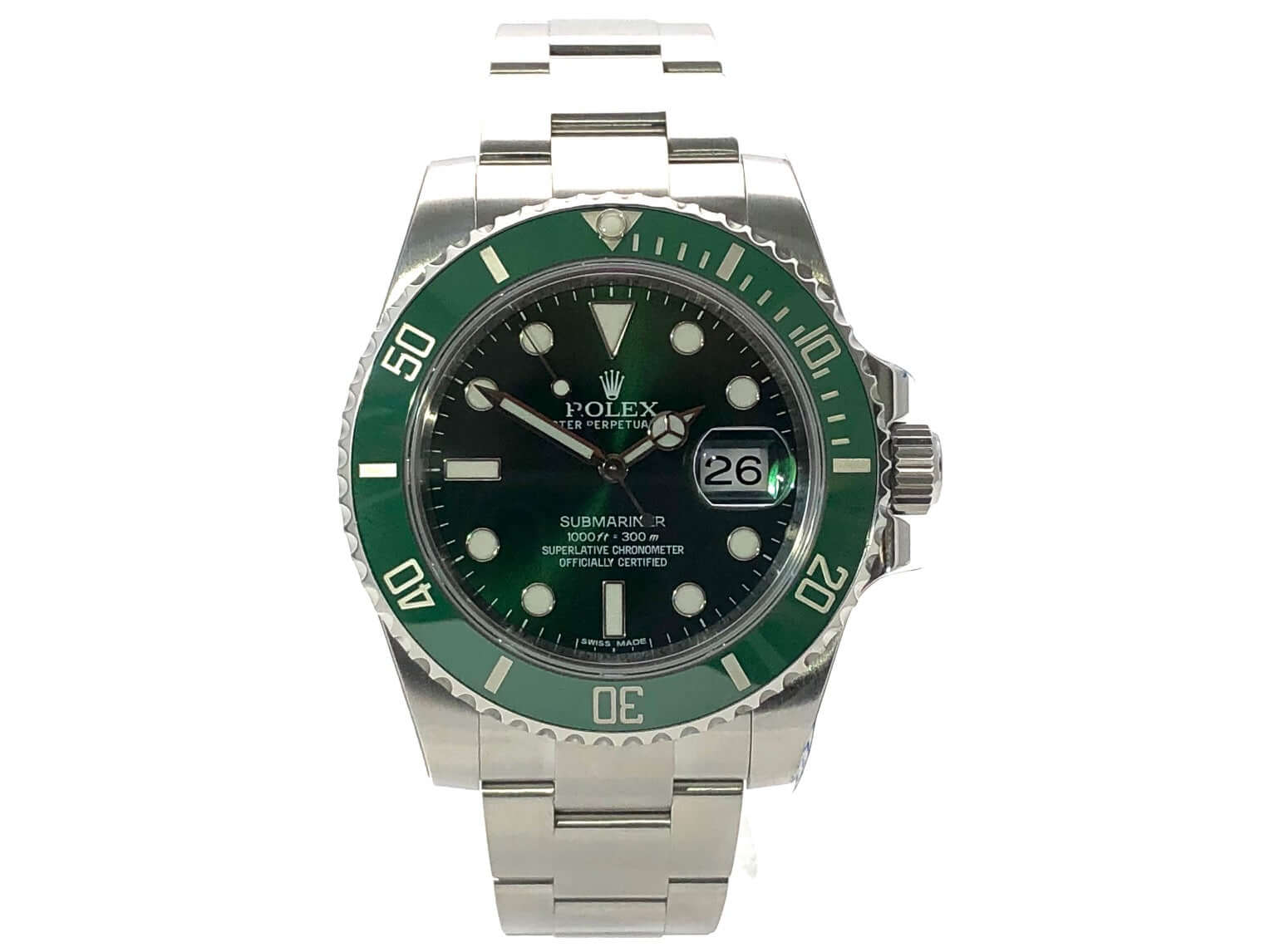 Gehäuse aus Edelstahl poliert und satiniert, Gehäusedurchmesser 40 mm, Gehäusehöhe 12,5 mm, Edelstahl Lünette mit grüner Keramik Einlage, 60 Minuten Skala und Leuchtpunkt drehbar, Oyster Edelstahlband poliert und satiniert mit Sicherheitsfaltschließe, grünes Zifferblatt mit aufgesetzten Leuchtindizes und Leuchtpunkten, Leuchtzeiger, Automatikwerk, Kaliber Rolex 3135 mit 31 Steine, 28.800 A/h, Datumsanzeige mit Schnellverstellung und Lupe, Chronometer, Saphirglas, Krone verschraubt mit Flankenschutz, Edelstahlboden verschraubt, Wasserdicht bis zu 30 bar.