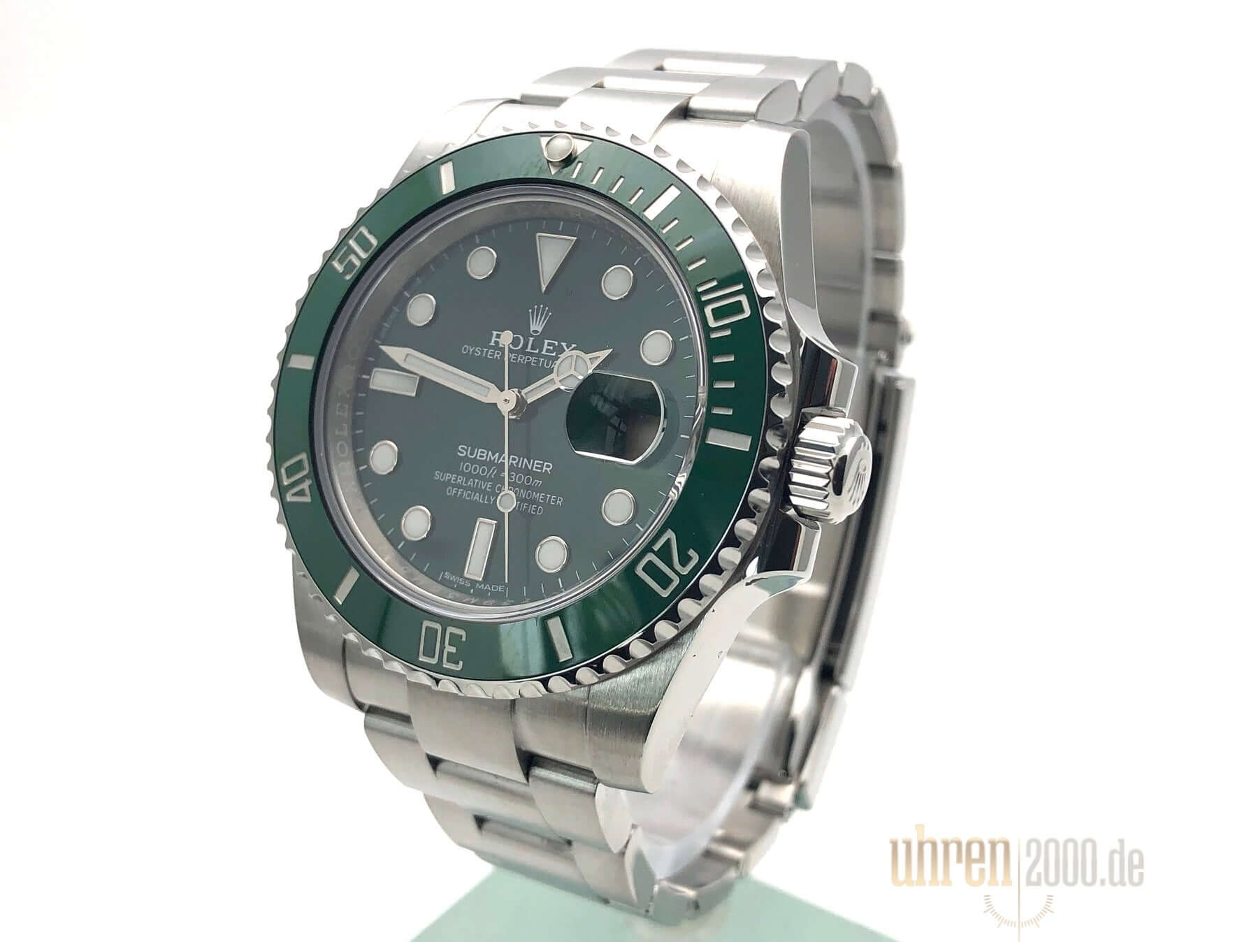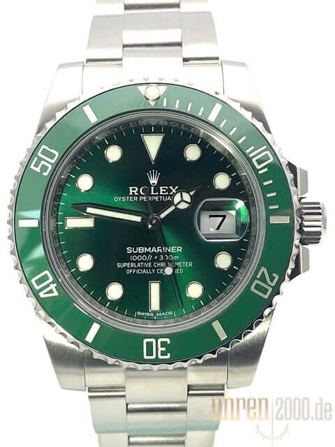 Gehäuse aus Edelstahl poliert und satiniert, Gehäusedurchmesser 40 mm, Gehäusehöhe 12,5 mm, Edelstahl Lünette mit grüner Keramik Einlage, 60 Minuten Skala und Leuchtpunkt drehbar, Oyster Edelstahlband poliert und satiniert mit Sicherheitsfaltschließe, grünes Zifferblatt mit aufgesetzten Leuchtindizes und Leuchtpunkten, Leuchtzeiger, Automatikwerk, Kaliber Rolex 3135 mit 31 Steine, 28.800 A/h, Datumsanzeige mit Schnellverstellung und Lupe, Chronometer, Saphirglas, Krone verschraubt mit Flankenschutz, Edelstahlboden verschraubt, Wasserdicht bis zu 30 bar.