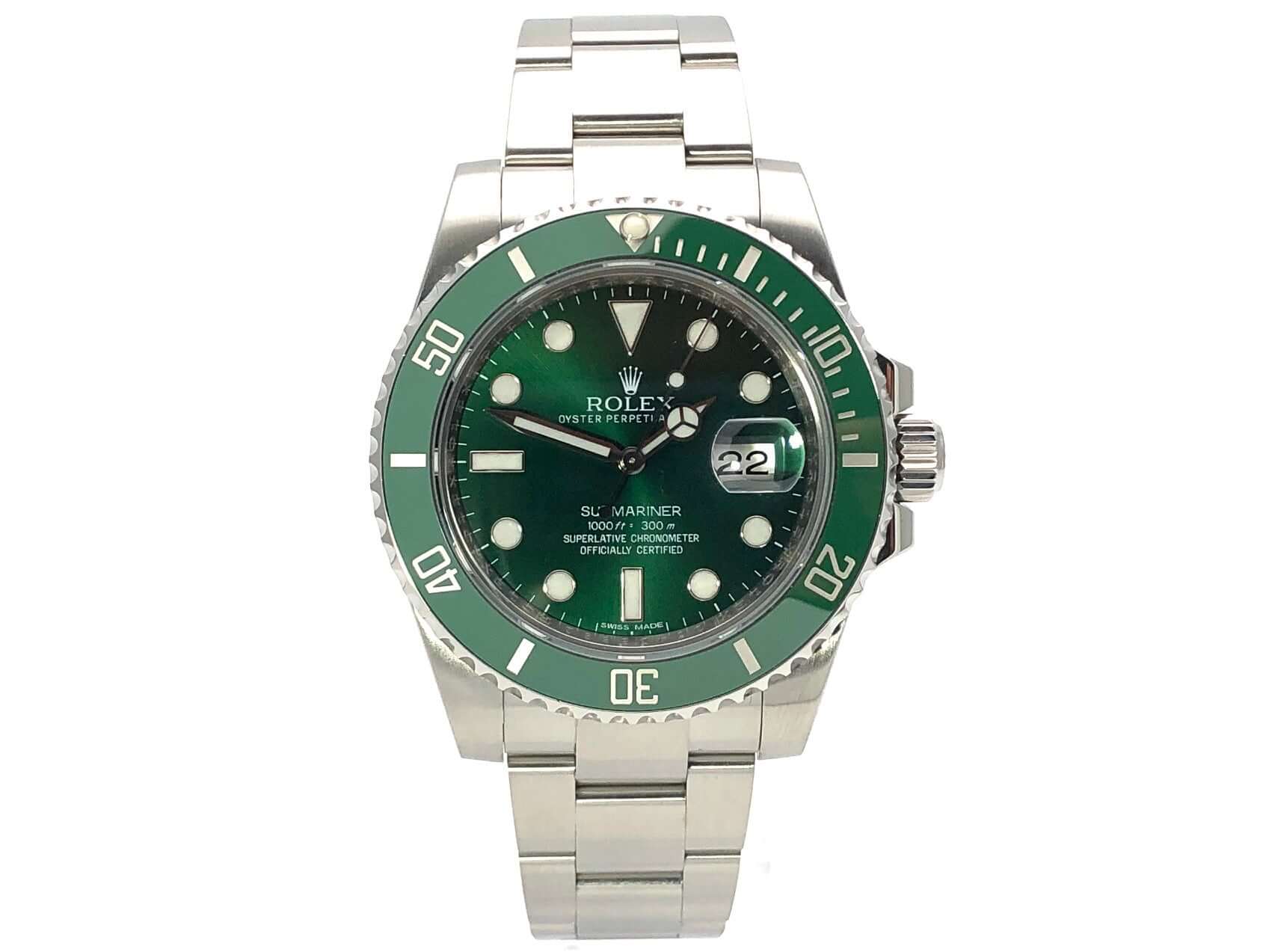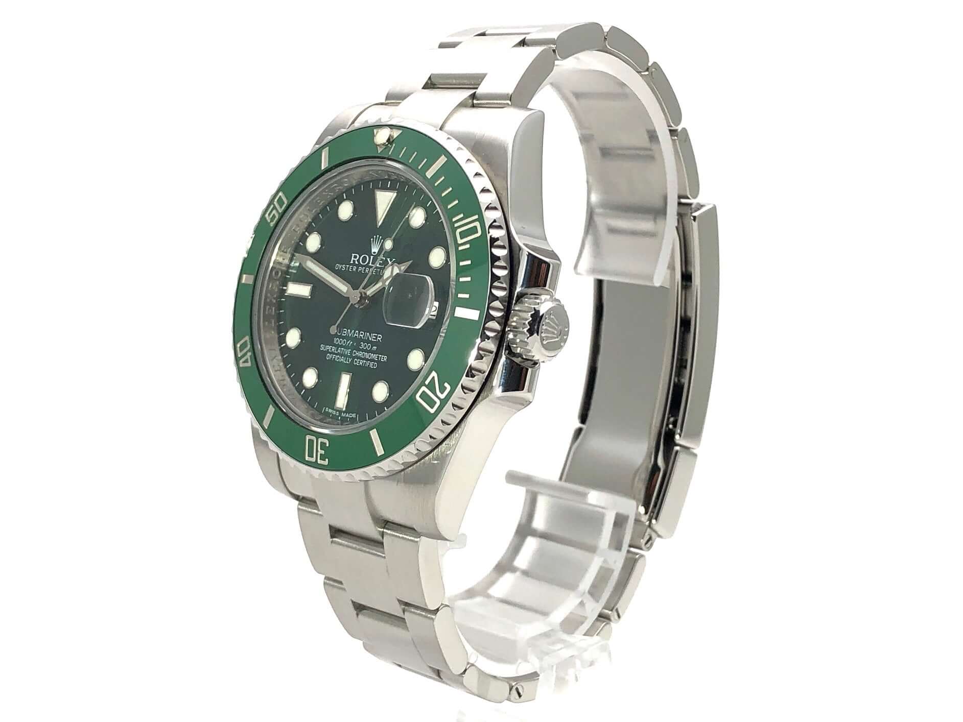 Gehäuse aus Edelstahl poliert und satiniert, Gehäusedurchmesser 40 mm, Gehäusehöhe 12,5 mm, Edelstahl Lünette mit grüner Keramik Einlage, 60 Minuten Skala und Leuchtpunkt drehbar, Oyster Edelstahlband poliert und satiniert mit Sicherheitsfaltschließe, grünes Zifferblatt mit aufgesetzten Leuchtindizes und Leuchtpunkten, Leuchtzeiger, Automatikwerk, Kaliber Rolex 3135 mit 31 Steine, 28.800 A/h, Datumsanzeige mit Schnellverstellung und Lupe, Chronometer, Saphirglas, Krone verschraubt mit Flankenschutz, Edelstahlboden verschraubt, Wasserdicht bis zu 30 bar.
