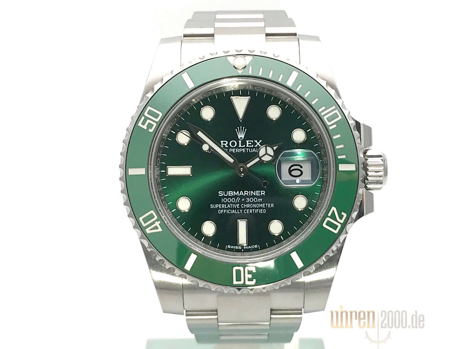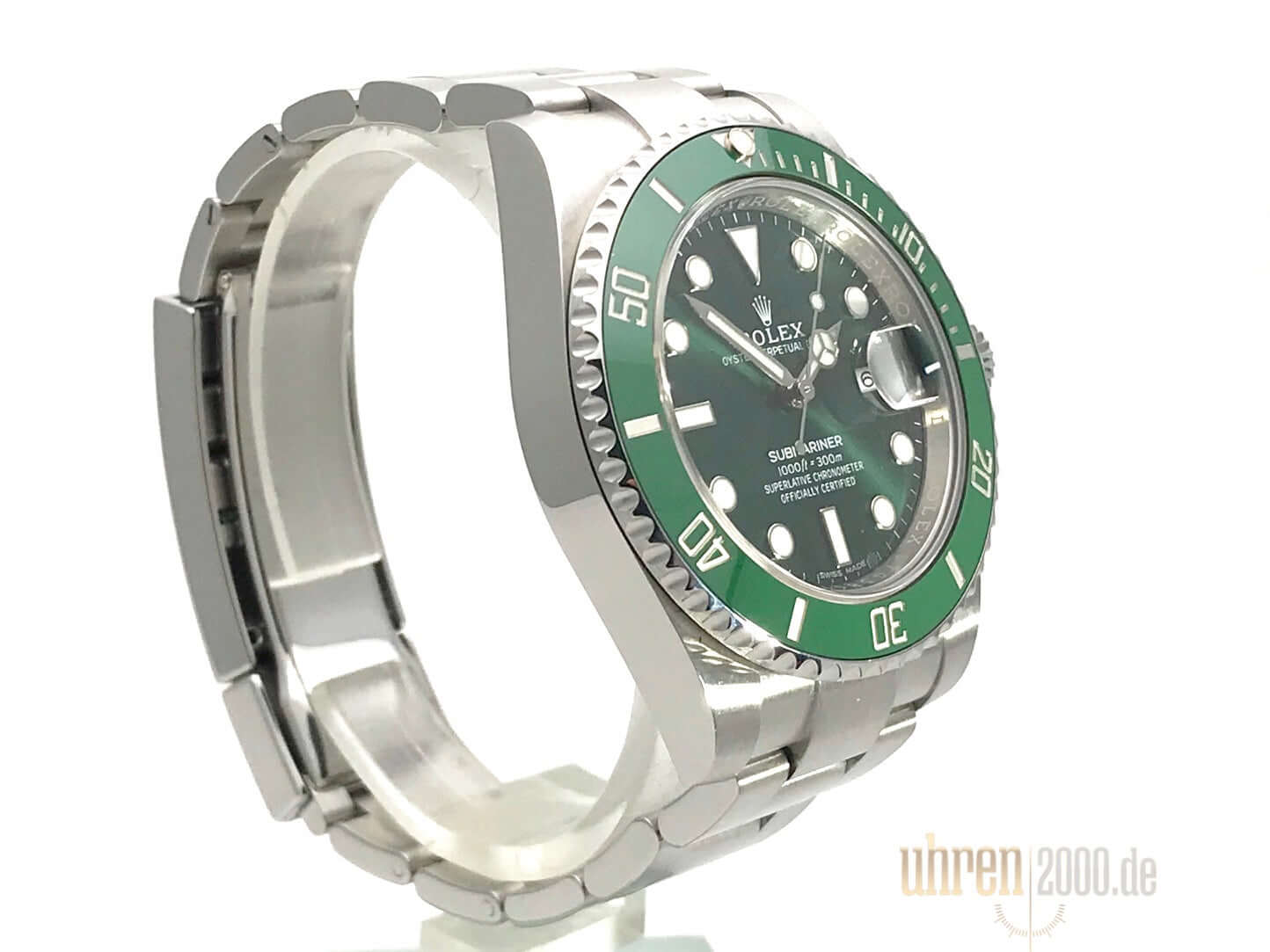 Gehäuse aus Edelstahl poliert und satiniert, Gehäusedurchmesser 40 mm, Gehäusehöhe 12,5 mm, Edelstahl Lünette mit grüner Keramik Einlage, 60 Minuten Skala und Leuchtpunkt,drehbar, Oyster Edelstahlband poliert und satiniert mit Sicherheitsfaltschließe, grünes Zifferblatt mit aufgesetzten Leuchtindizes und Leuchtpunkten, Leuchtzeiger, Automatikwerk, Kaliber Rolex 3135 mit 31 Steine, 28.800 A/h, Chronometer, Datumsanzeige mit Schnellverstellung und Lupe, Saphirglas, Krone verschraubt mit Flankenschutz, Edelstahlboden verschraubt, Wasserdicht bis zu 30 bar.