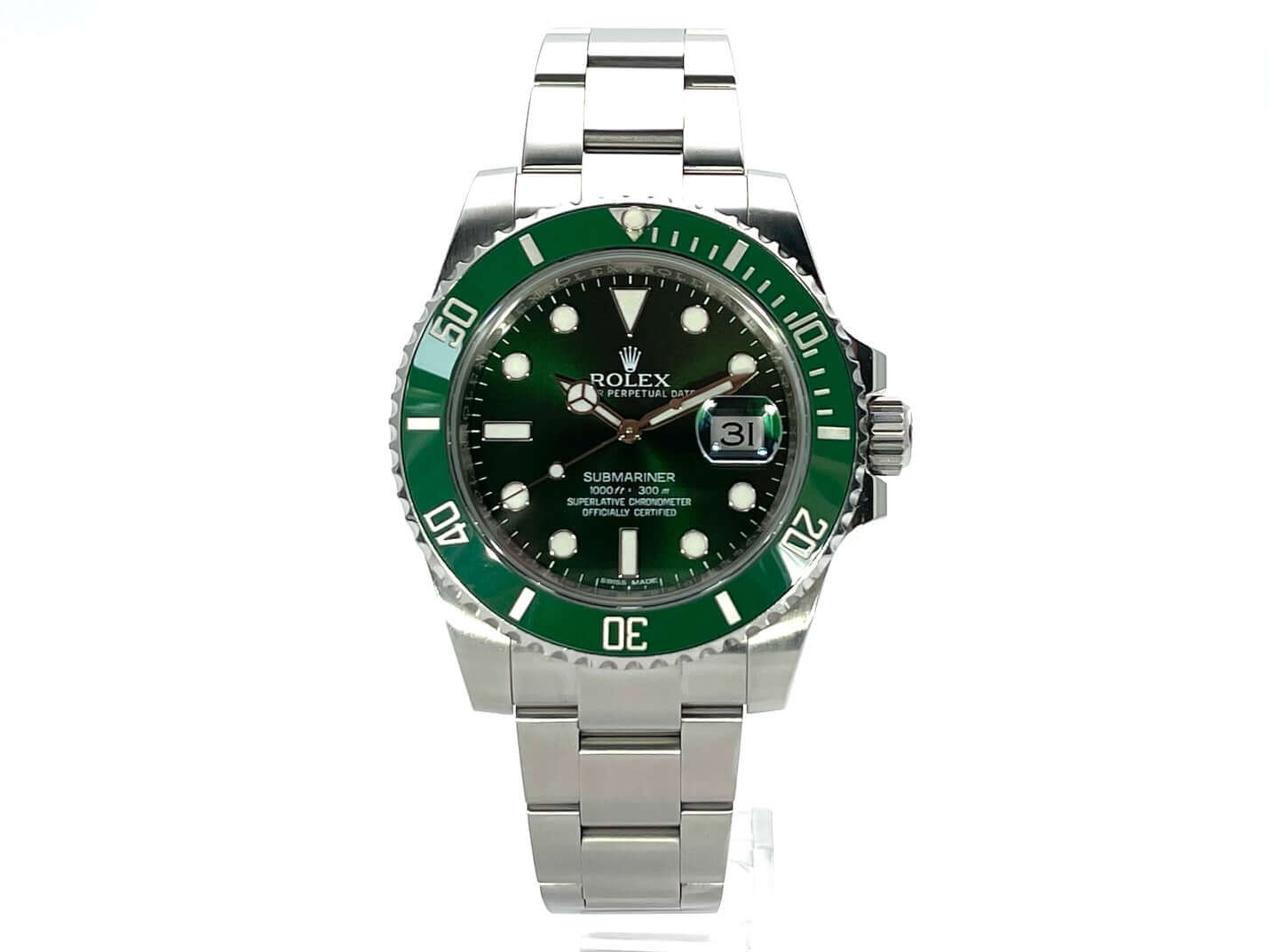 Gehäuse aus Edelstahl poliert und satiniert, Gehäusedurchmesser 40 mm, Gehäusehöhe 12,5 mm, Edelstahl Lünette mit grüner Keramik Einlage, 60 Minuten Skala und Leuchtpunkt drehbar, Oyster Edelstahlband poliert und satiniert mit Sicherheitsfaltschließe, grünes Zifferblatt mit aufgesetzten Leuchtindizes und Leuchtpunkten, Leuchtzeiger, Automatikwerk, Kaliber Rolex 3135 mit 31 Steine, 28.800 A/h, Datumsanzeige mit Schnellverstellung und Lupe, Chronometer, Saphirglas, Krone verschraubt mit Flankenschutz, Edelstahlboden verschraubt, Wasserdicht bis zu 30 bar.
