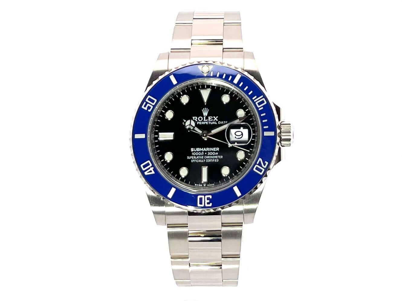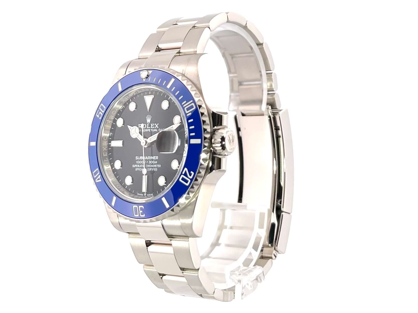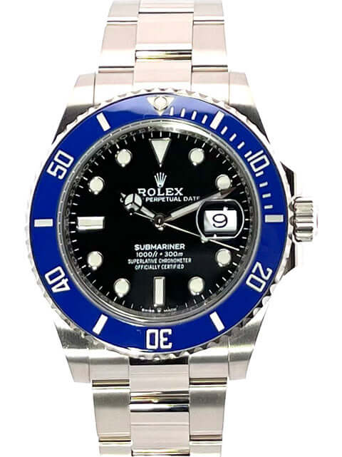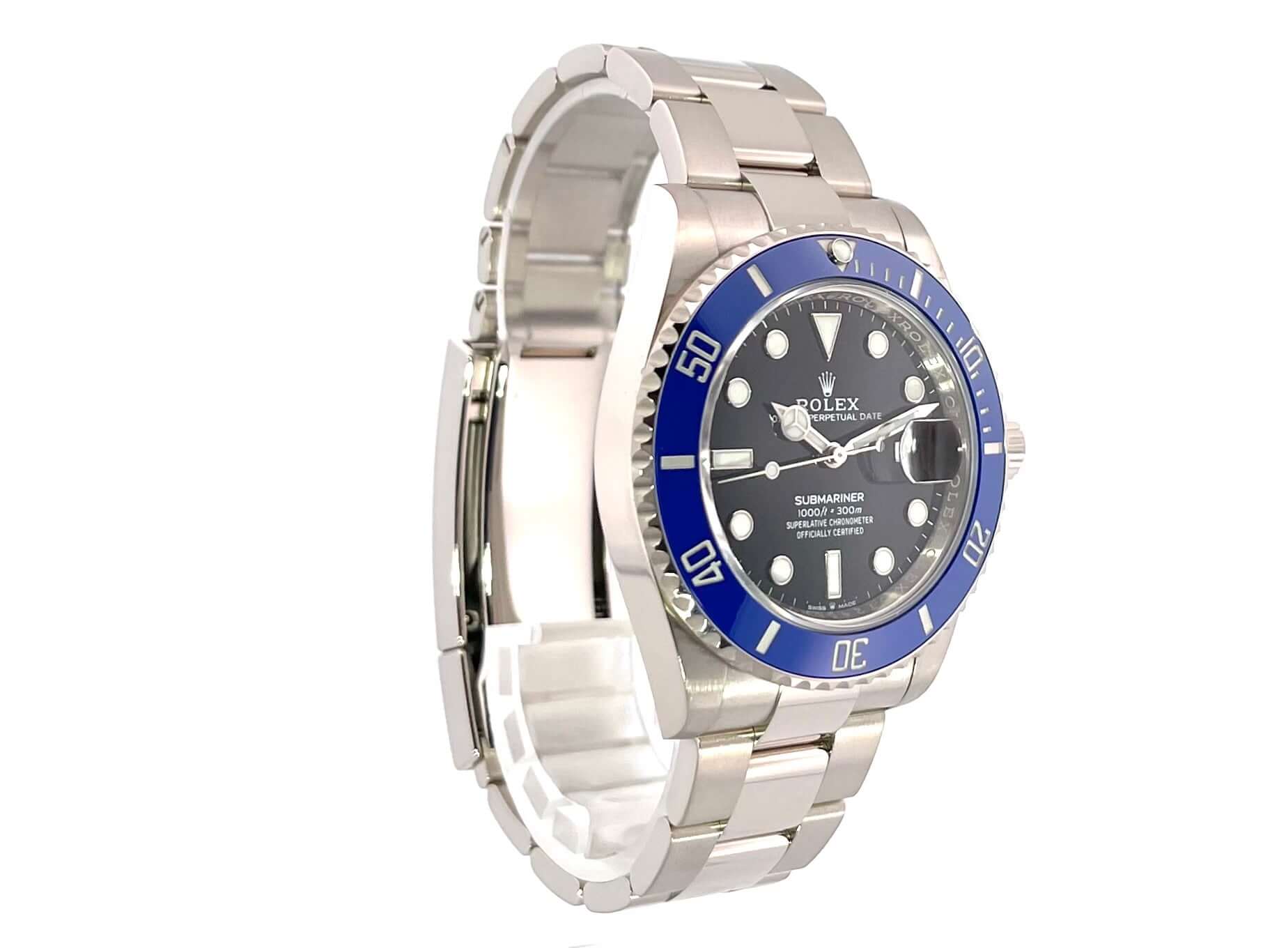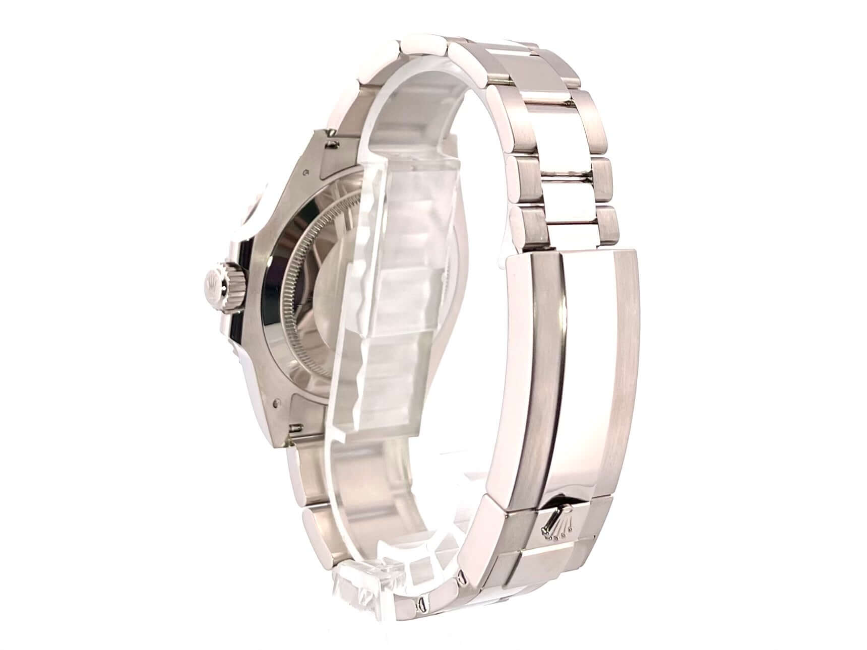 Gehäuse aus 18 kt Weißgold poliert und satiniert, Gehäusedurchmesser 41 mm, Lünette aus 18 kt Weißgold gerädelt mit blauer Cerachrom Einlage, Oyster Armband aus 18 kt Weißgold poliert und satiniert mit Sicherheitsfaltschließe, schwarzes Zifferblatt mit aus Weißgold gefassten Leuchtindizes und Leuchtzeigern, Automatik, Rolex 3235 mit 31 Steine, 28.800 A/h, 70 Stunden Gangreserve, Datumsanzeige mit Schnellverstellung über Glaslupe 3 Uhr, Chronometer, Saphirglas entspiegelt, 18 kt Weißgold Triplock Krone mit Flankenschutz und Rolex-Logo verschraubbar, 18 kt Weißgold Boden verschraubt, wasserdicht bis zu 30 bar.