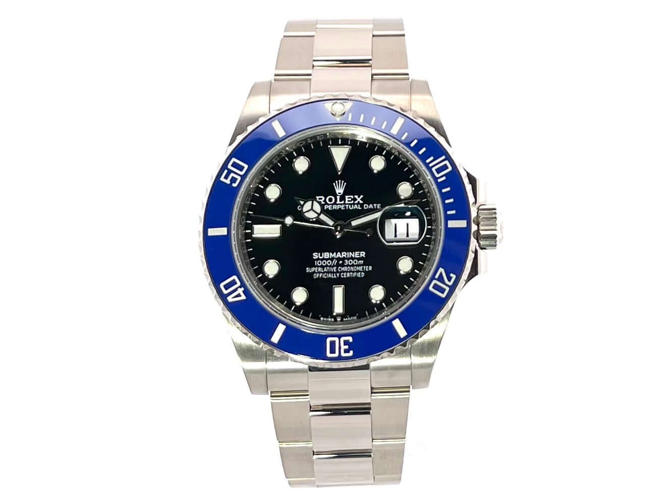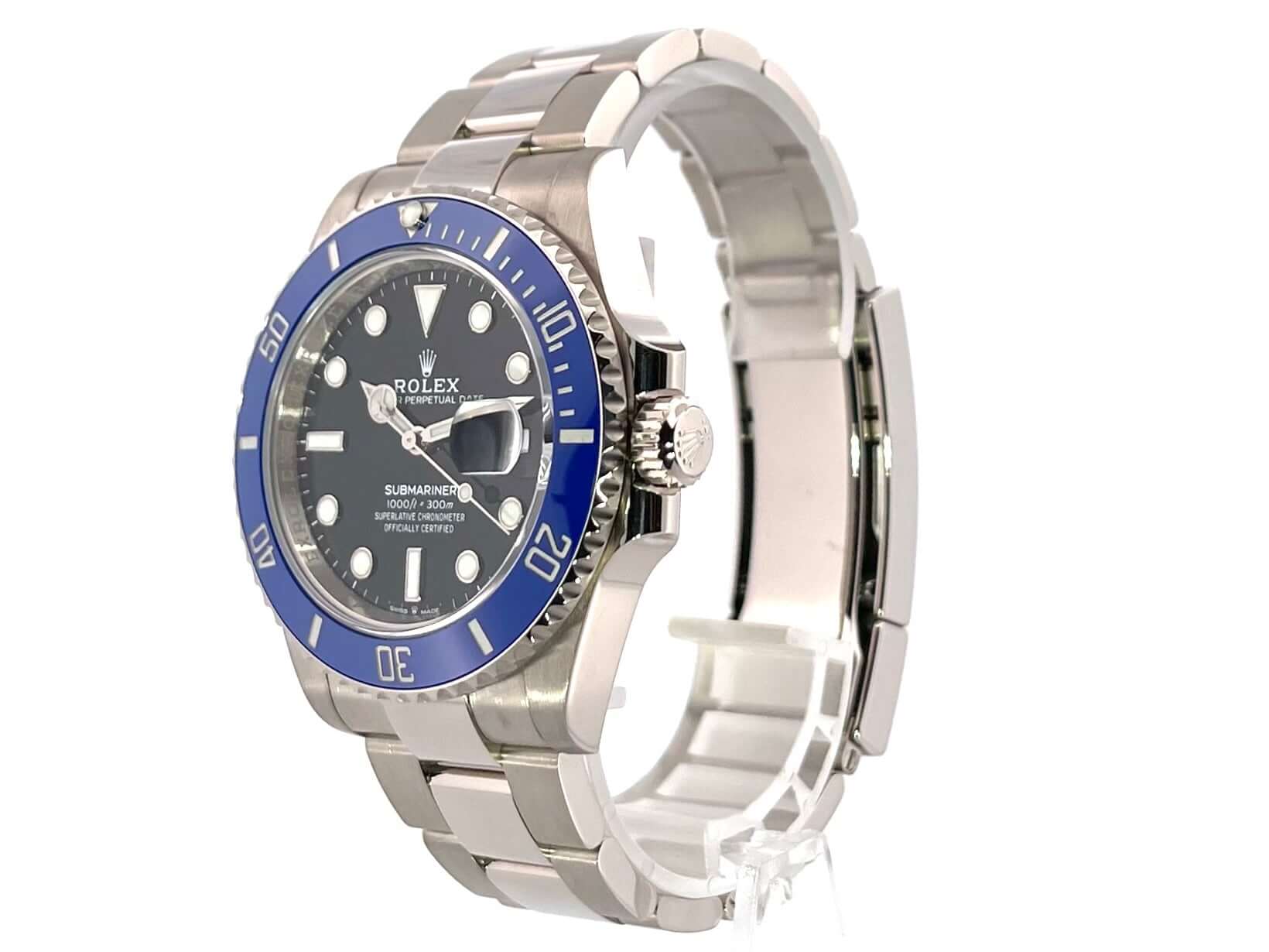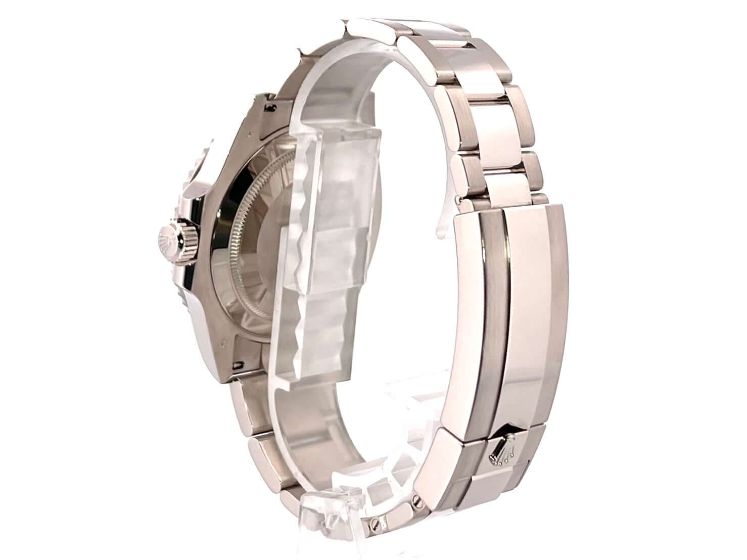 Gehäuse aus 18 kt Weißgold poliert und satiniert, Gehäusedurchmesser 41 mm, Lünette aus 18 kt Weißgold gerädelt mit blauer Cerachrom Einlage, Oyster Armband aus 18 kt Weißgold poliert und satiniert mit Sicherheitsfaltschließe, schwarzes Zifferblatt mit aus Weißgold gefassten Leuchtindizes und Leuchtzeigern, Automatik, Rolex 3235 mit 31 Steine, 28.800 A/h, 70 Stunden Gangreserve, Datumsanzeige mit Schnellverstellung über Glaslupe 3 Uhr, Chronometer, Saphirglas entspiegelt, 18 kt Weißgold Triplock Krone mit Flankenschutz und Rolex-Logo verschraubbar, 18 kt Weißgold Boden verschraubt, wasserdicht bis zu 30 bar.