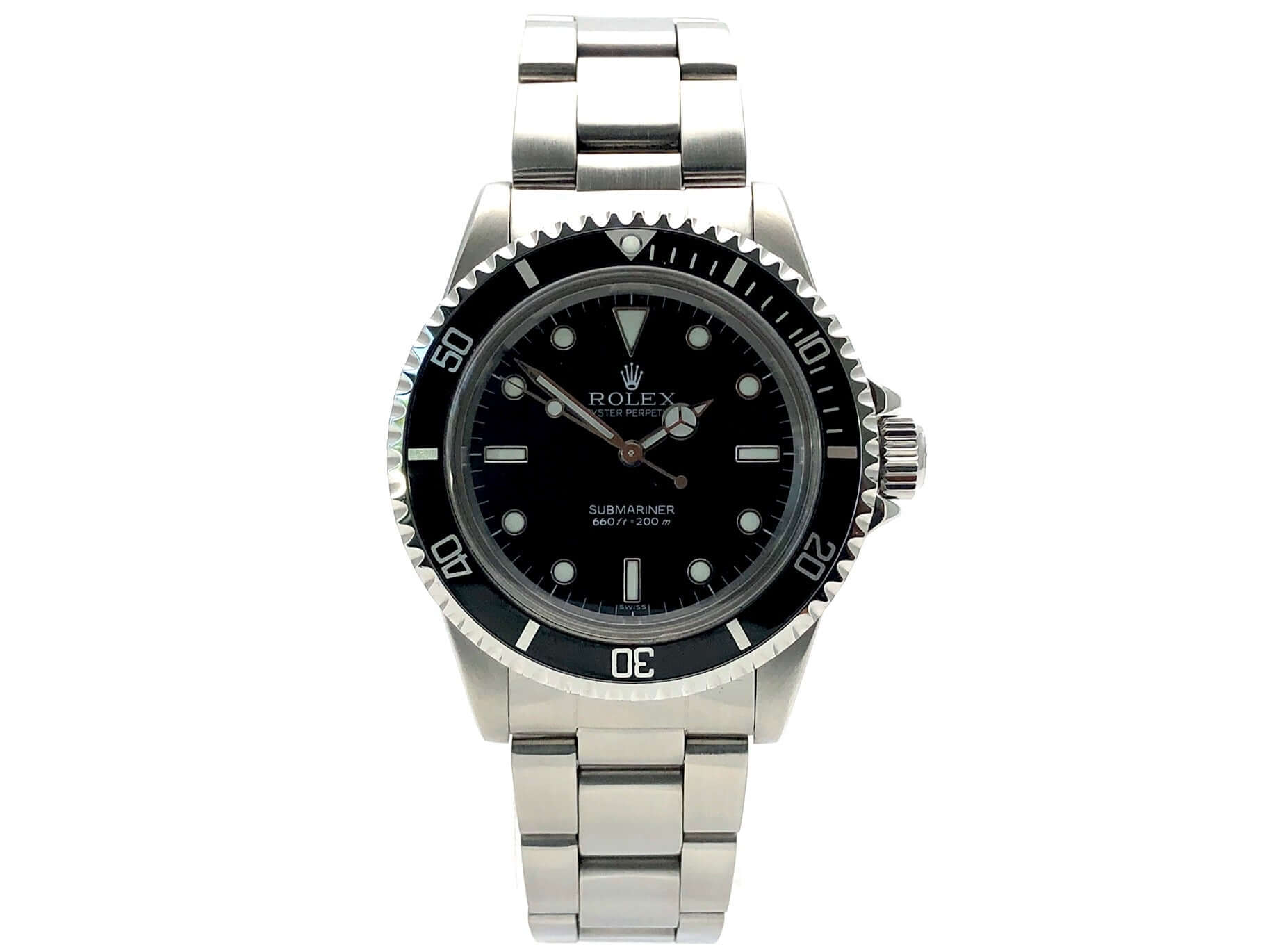 Gehäuse aus Edelstahl poliert und satiniert, Gehäusedurchmesser 40 mm, Edelstahl Lünette mit schwarzer Einlage, 60 Minuten Skala und Leuchtpunkt einseitig drehbar, Oyster Edelstahl Armband satiniert mit Sicherheitsfaltschließe, schwarzes Zifferblatt mit aufgesetzten Leuchtindizes und Leuchtpunkten, Leuchtzeiger, Automatikwerk, Plexiglas, verschraubte Krone mit Flankenschutz, Edelstahlboden verschraubt, Wasserdicht bis zu 20 bar.