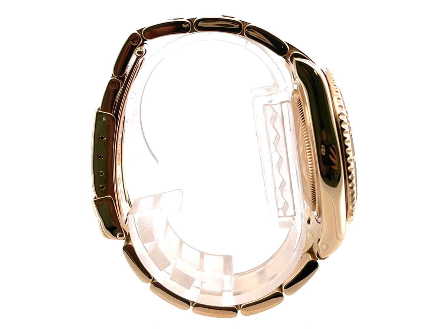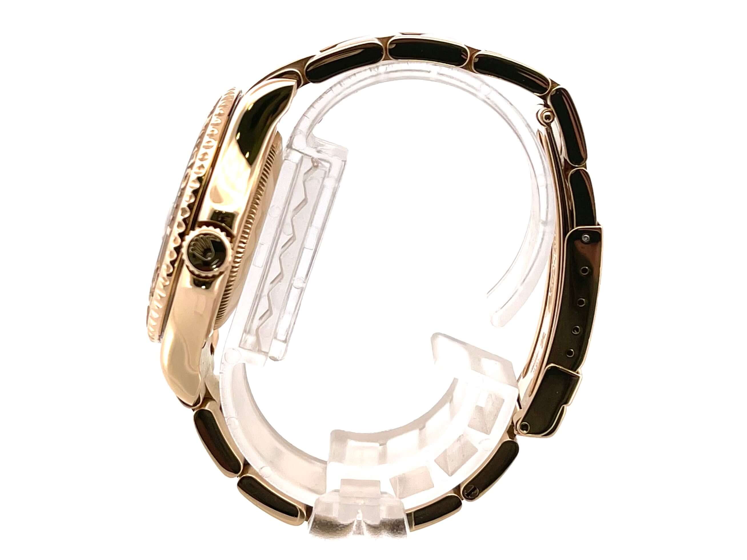 Gehäuse aus 18 kt Gelbgold poliert und satiniert, Gehäusedurchmesser 35 mm, Lünette 18 kt Gelbgold mit 60 Minuten Skala, einseitig drehbar, 18 kt Gelbgold Armband mit Sicherheitsfaltschließe, weißes Zifferblatt mit aus Gelbgold gefassten Leuchtindizes, Leuchtzeigern, Automatik, Rolex Manufakturkaliber, Saphirglas, Datumsanzeige über Glaslupe bei 3 Uhr, verschraubte Krone mit Flankenschutz und Hersteller-Logo, 18 kt Gelbgoldboden verschraubt, Wasserdicht bis zu 10 bar.