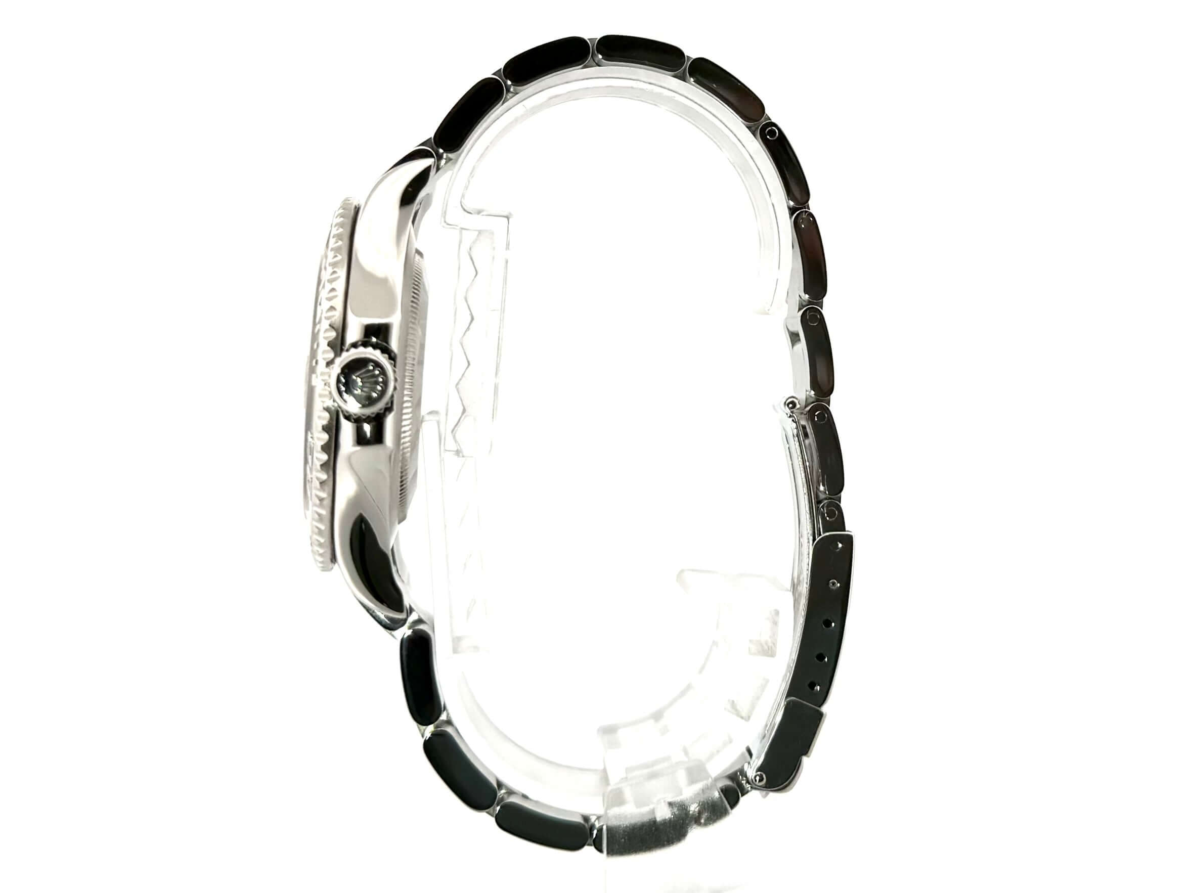 Gehäuse aus Edelstahl poliert und satiniert, Gehäusedurchmesser 40 mm, Platin Lünette geriffelt, 60 Minuten Skala, beidseitig drehbar, Oyster Edelstahl Armband poliert und satiniert mit Faltschließe, Zifferblatt aus Platin mit gefassten Leuchtindizes und Leuchtpunkten, Leuchtzeiger, roter Sekundenzeiger, Automatikwerk, Rolex Manufakturkaliber 3135 mit 31 Steine, Schwingung 28.800 A/h, Datumsanzeige, Chronometer, kratzresistentes Saphirglas, verschraubte Krone mit Flankenschutz, Edelstahlboden verschraubt, Wasserdicht bis zu 10 bar.