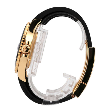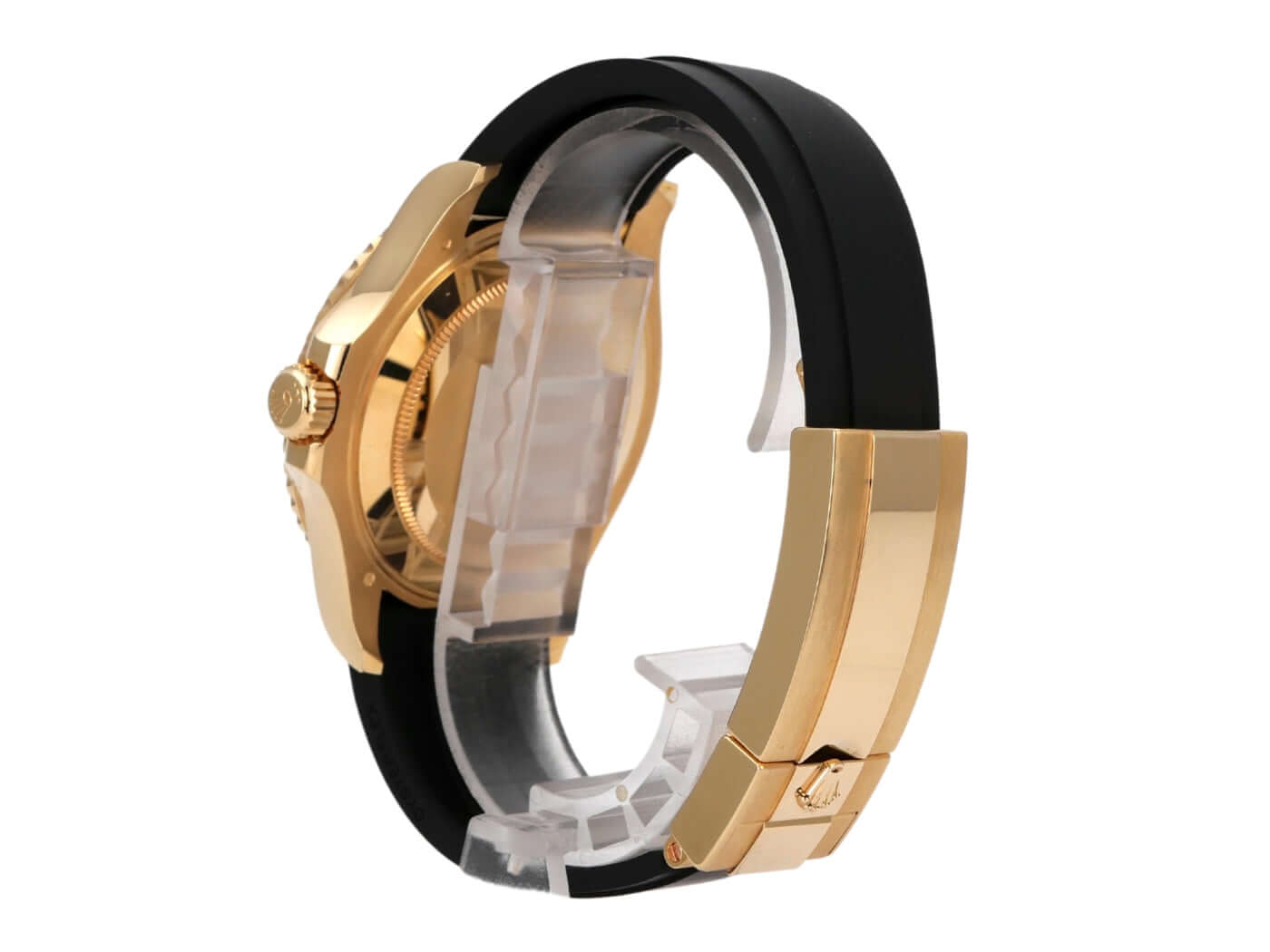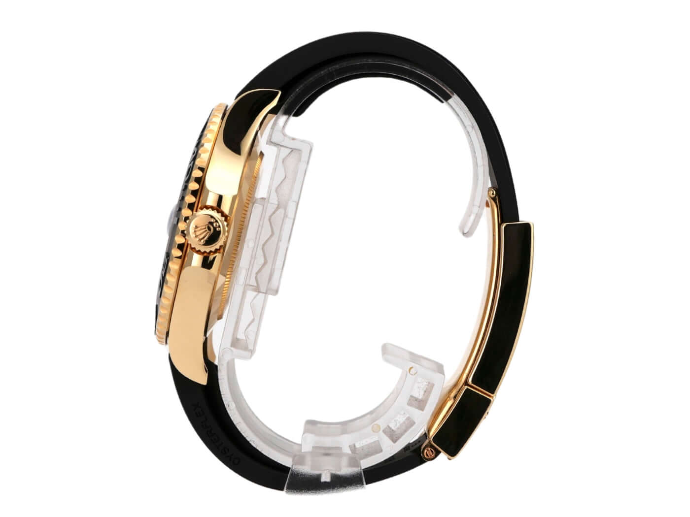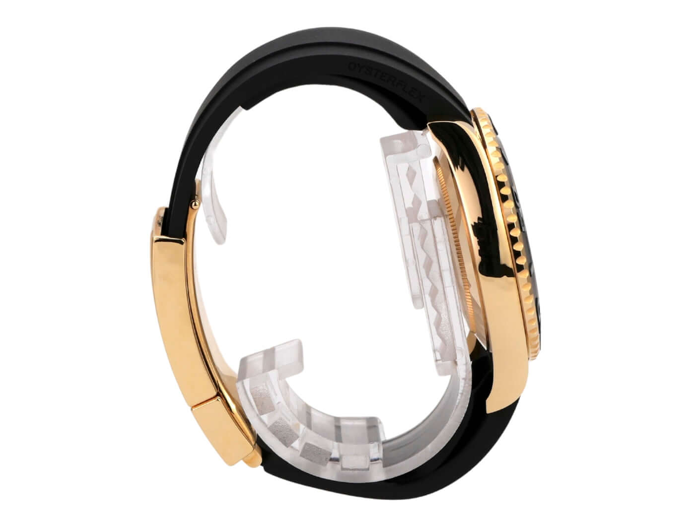 Gehäuse aus 18 kt Gelbgold poliert und satiniert, Gehäusedurchmesser 42 mm, Lünette aus 18 kt Gelbgold mit Keramik Einlage, beidseitig drehbar, Oyster Kautschukband mit Sicherheitsfaltschließe, schwarzes Zifferblatt mit gefassten Leuchtindizes und Leuchtpunkten, Leuchtzeiger, Automatikwerk, Rolex Manufakturkaliber 3235 mit 31 Steine, Schwingung 28.800 A/h, 70 Stunden Gangreserve, Datumsanzeige, Chronometer, kratzresistentes Saphirglas, verschraubbare Krone mit Flankenschutz, 18 kt Gelbgold Boden verschraubt, wasserdicht bis zu 10 bar.