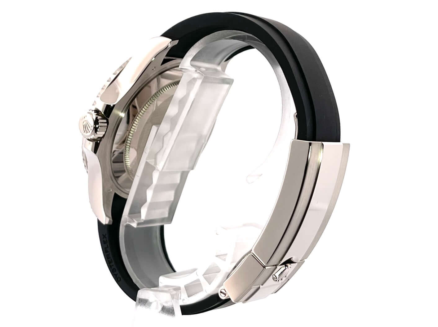 Gehäuse aus 18 kt Weißgold poliert und satiniert, Gehäusedurchmesser 42 mm, Lünette aus 18 kt Weißgold mit Keramik Einlage, beidseitig drehbar, Oyster Kautschukband mit Sicherheitsfaltschließe, schwarzes Zifferblatt mit gefassten Leuchtindizes und Leuchtpunkten, Leuchtzeiger, Automatikwerk, Rolex Manufakturkaliber 3235 mit 31 Steine, Schwingung 28.800 A/h, 70 Stunden Gangreserve, Datumsanzeige, Chronometer, kratzresistentes Saphirglas, verschraubbare Krone mit Flankenschutz, 18 kt Weißgold Boden verschraubt, Wasserdicht bis zu 10 bar.