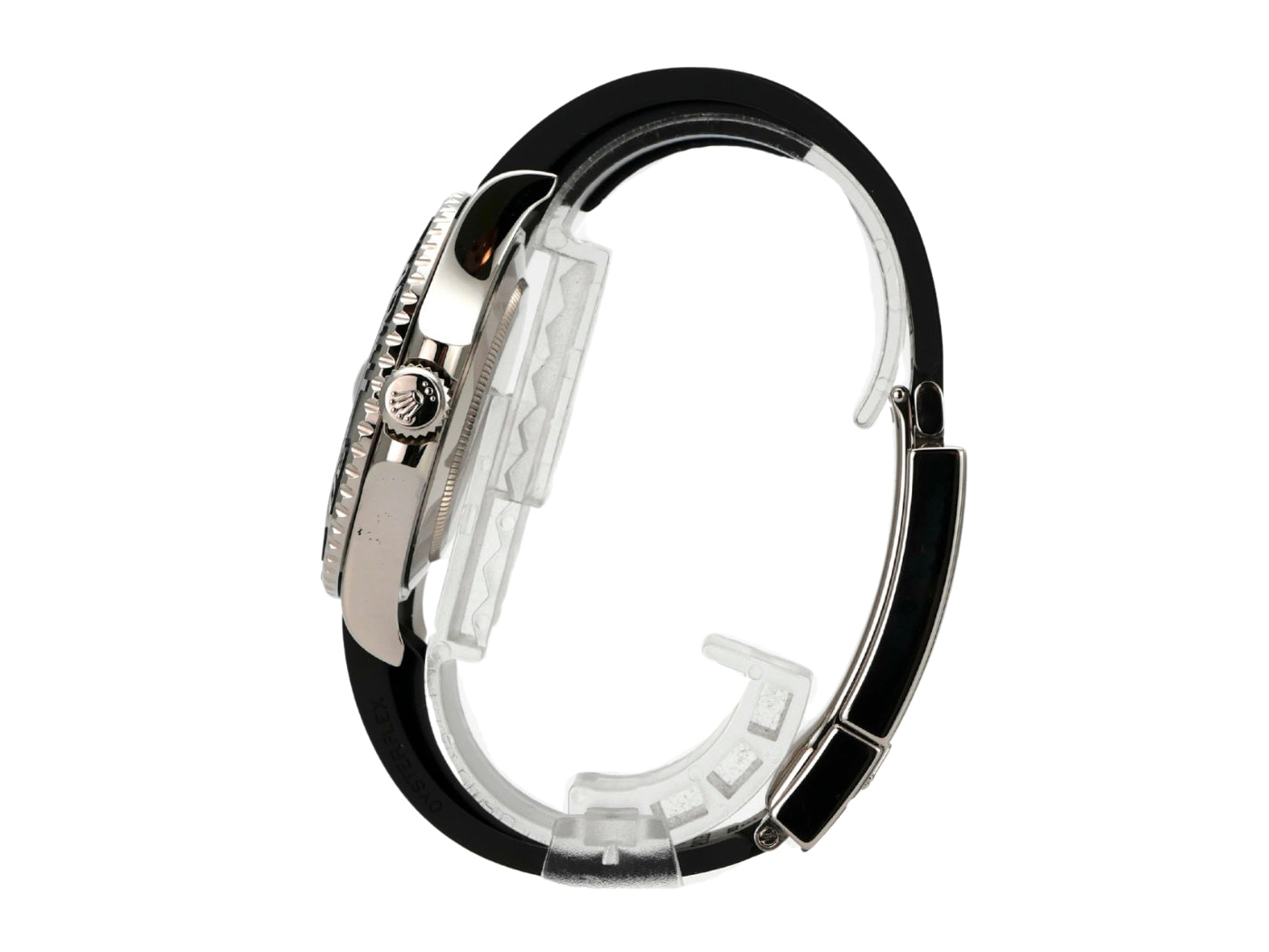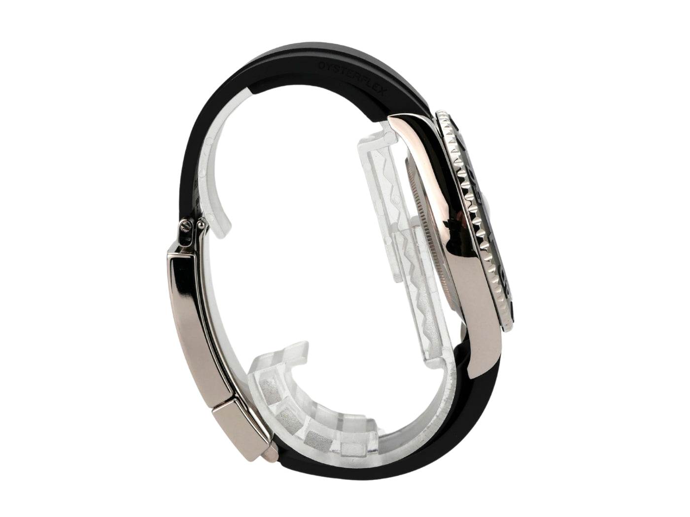 Gehäuse aus 18 kt Weißgold poliert und satiniert, Gehäusedurchmesser 42 mm, Lünette aus 18 kt Weißgold mit Keramik Einlage, beidseitig drehbar, Oyster Kautschukband mit Sicherheitsfaltschließe, schwarzes Zifferblatt mit gefassten Leuchtindizes, Leuchtpunkte, Leuchtzeiger, Automatikwerk, Rolex Manufakturkaliber 3235 mit 31 Steine, Schwingung 28.800 A/h, 70 Stunden Gangreserve, Datumsanzeige, Chronometer, kratzresistentes Saphirglas, verschraubbare Krone mit Flankenschutz, 18 kt Weißgold Boden verschraubt, wasserdicht bis zu 10 bar.