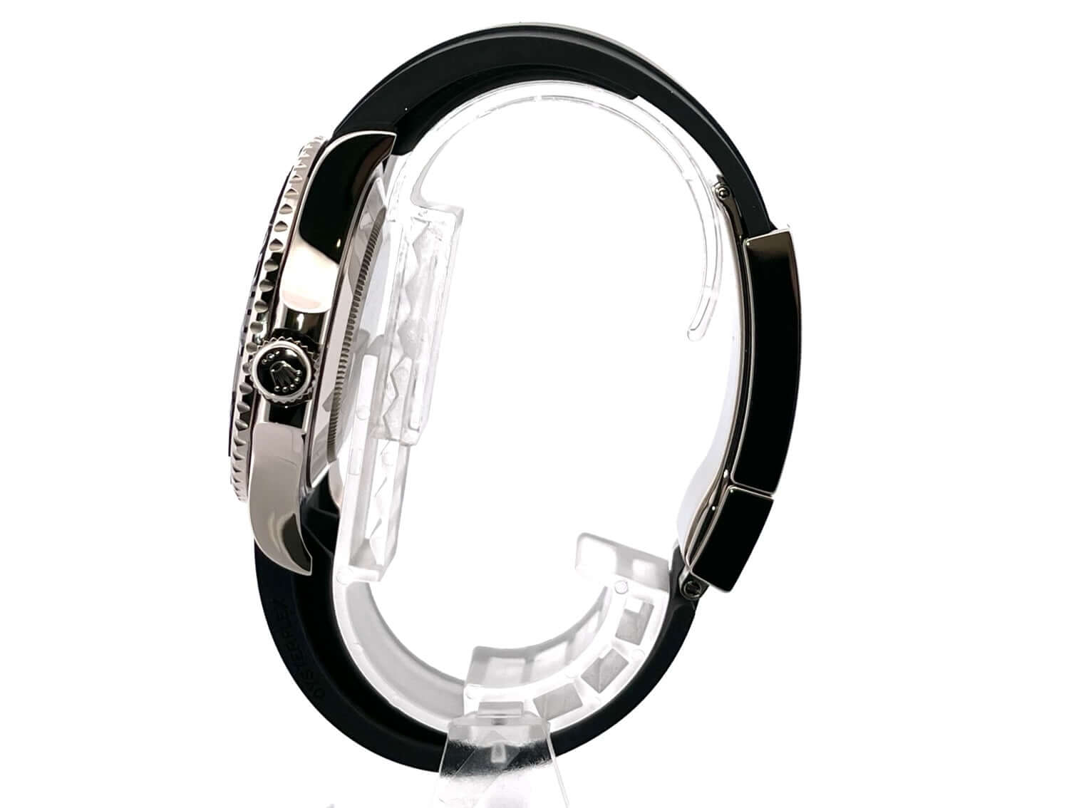 Gehäuse aus 18 kt Weißgold poliert und satiniert, Gehäusedurchmesser 42 mm, Lünette aus 18 kt Weißgold mit Keramik Einlage, beidseitig drehbar, Oyster Kautschukband mit Sicherheitsfaltschließe, schwarzes Zifferblatt mit gefassten Leuchtindizes, Leuchtpunkte, Leuchtzeiger, Automatikwerk, Rolex Manufakturkaliber 3235 mit 31 Steine, Schwingung 28.800 A/h, 70 Stunden Gangreserve, Datumsanzeige, Chronometer, kratzresistentes Saphirglas, verschraubbare Krone mit Flankenschutz, 18 kt Weißgold Boden verschraubt, Wasserdicht bis zu 10 bar.