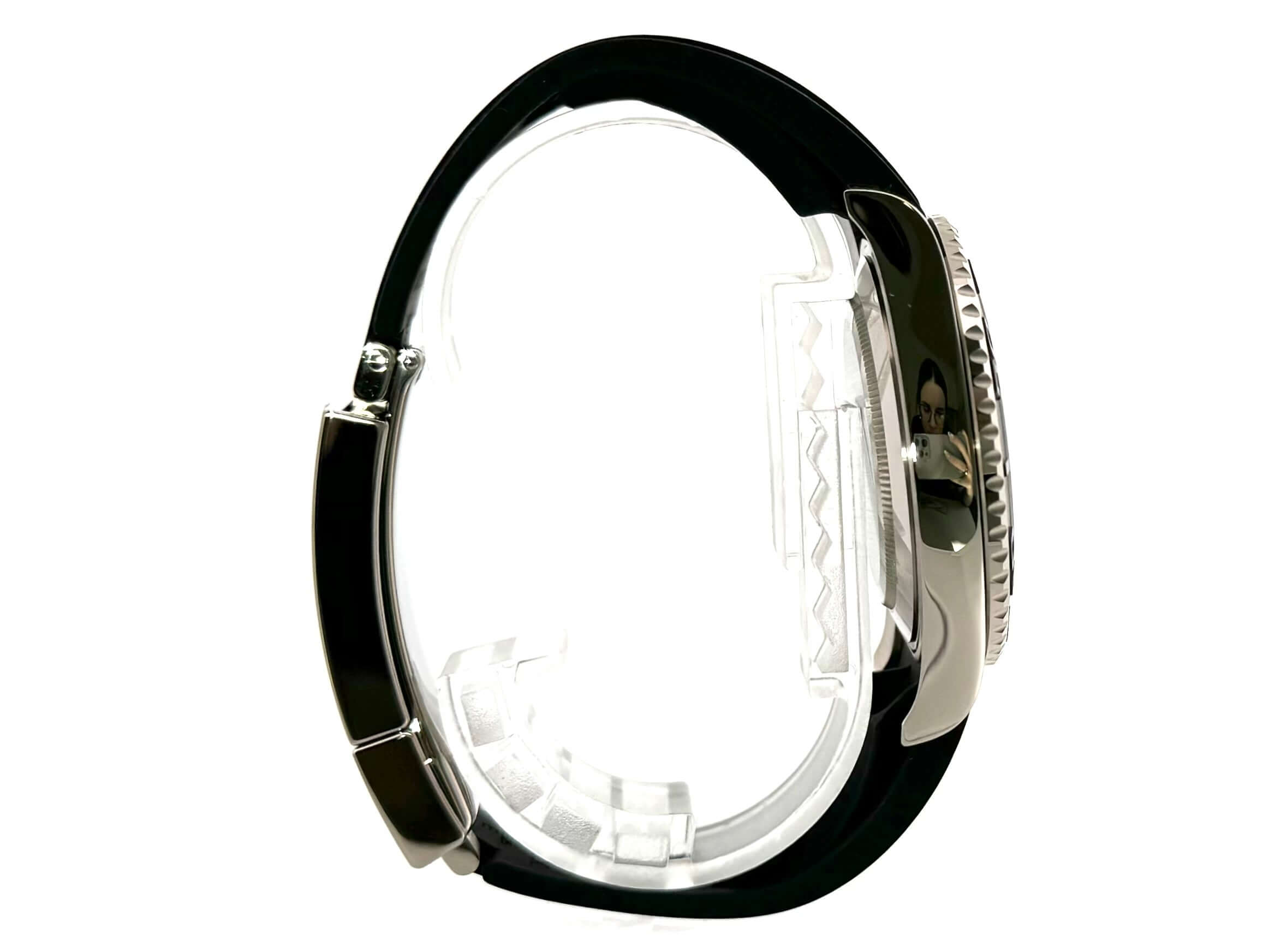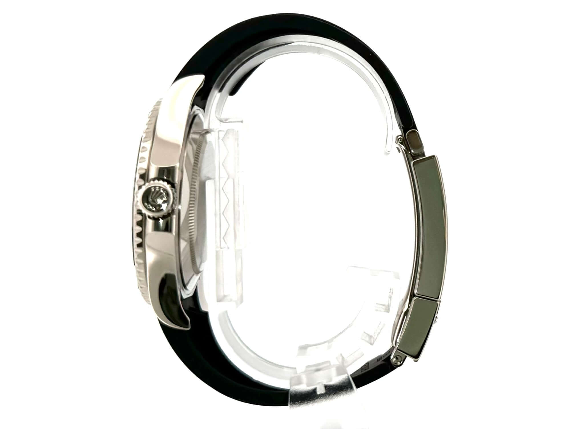 Gehäuse aus 18 kt Weißgold poliert und satiniert, Gehäusedurchmesser 42 mm, Lünette aus 18 kt Weißgold mit Keramik Einlage, beidseitig drehbar, Oyster Kautschukband mit Sicherheitsfaltschließe, schwarzes Falkenauge Zifferblatt mit gefassten Leuchtindizes und Leuchtpunkten, Leuchtzeiger, Automatikwerk, Rolex Manufakturkaliber 3235 mit 31 Steine, Schwingung 28.800 A/h, 70 Stunden Gangreserve, Datumsanzeige, Chronometer, kratzresistentes Saphirglas, verschraubbare Krone mit Flankenschutz, 18 kt Weißgold Boden verschraubt, Wasserdicht bis zu 10 bar.