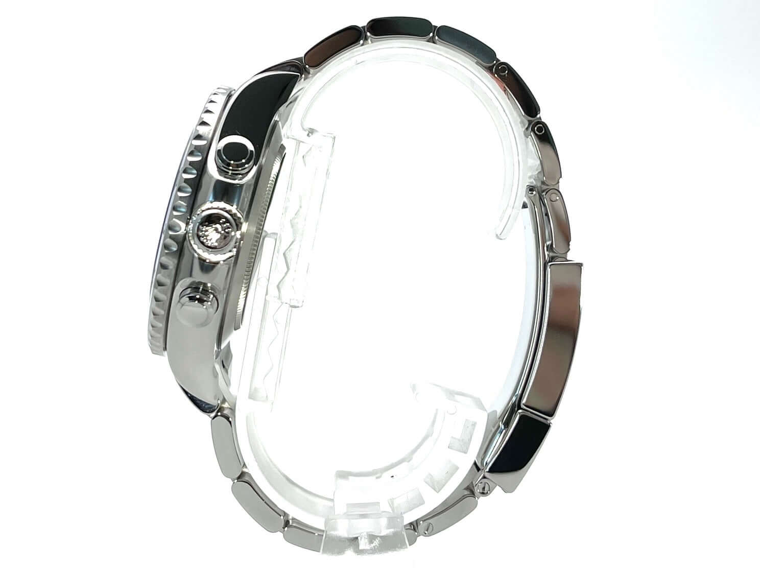 Gehäuse aus Edelstahl poliert und satiniert, Gehäusedurchmesser 44 mm, blaue Lünette aus Keramik mit gravierten Ziffern, drehbar in beide Richtungen, Oyster Edelstahlband poliert und satiniert mit Faltschließe, weißes Zifferblatt mit Leuchtindizes, dreieckiger Stundenmarker auf der 12‑Uhr-Position, Leuchtzeiger, Automatikwerk, Rolex Manufakturkaliber 4161 mit 31 Steine, Schwingung 28.800 A/h, Chronometer, kleine Sekundenanzeige bei 6 Uhr, kratzfestes Saphirglas, verschraubter Edelstahlboden, Wasserdicht bis zu 10 bar.