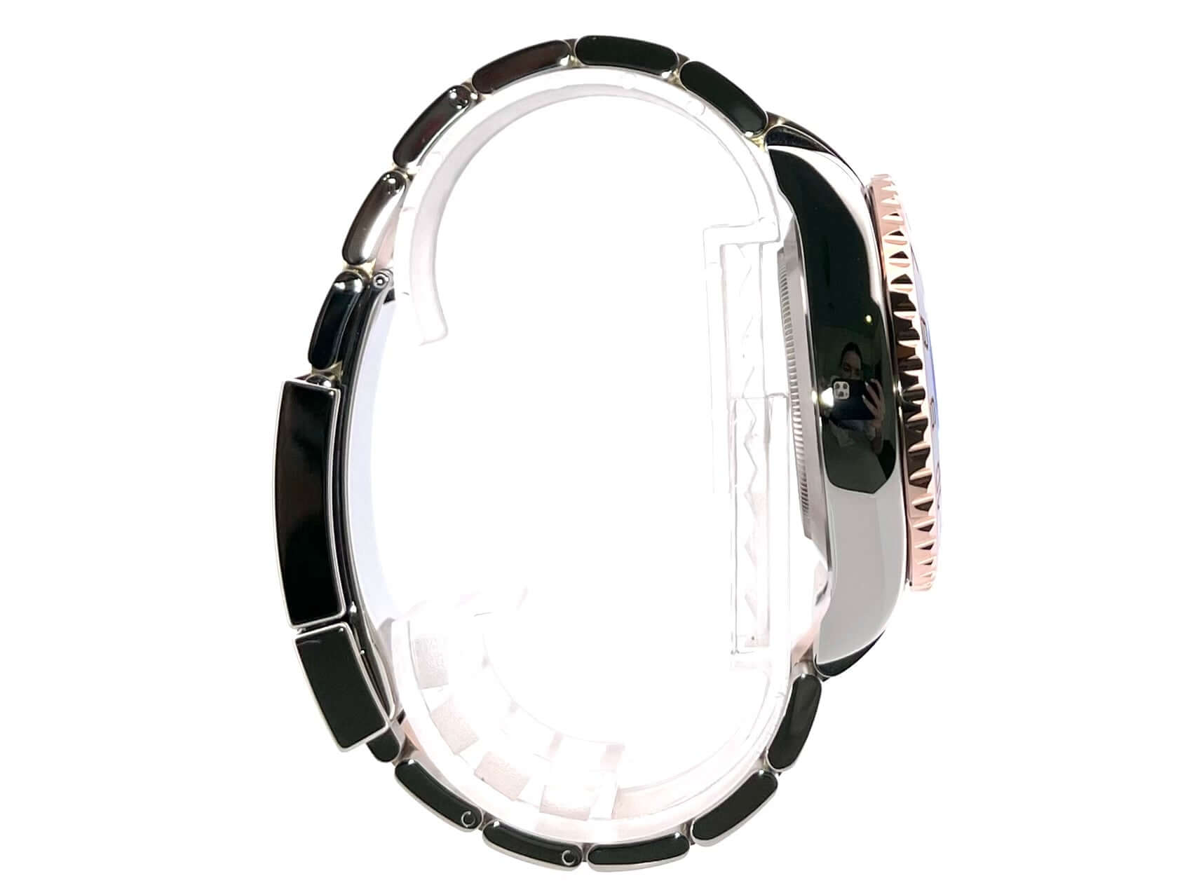 Gehäuse aus Edelstahl und 18 kt Everose-Gold poliert und satiniert, Gehäusedurchmesser 44 mm, Lünette aus 18 kt Everose-Gold poliert mit blauer Keramik Zahlenscheibe, Lünette um 90 Grad in beide Richtungen drehbar, Oyster Armband aus Edelstahl und 18 kt Everose-Gold poliert und satiniert mit Faltschließe, weißes Zifferblatt mit Everose-Gold Indizes, dreieckiger Stundenmarker auf der 12‑Uhr-Position, Leuchtzeiger, Automatikwerk, Rolex Manufakturkaliber 4161 mit 42 Steine, Schwingung 28.800 A/h, Chronometer, kleine Sekunde auf 6 Uhr, kratzfestes Saphirglas, verschraubter Edelstahlboden, Wasserdicht bis zu 10 bar.