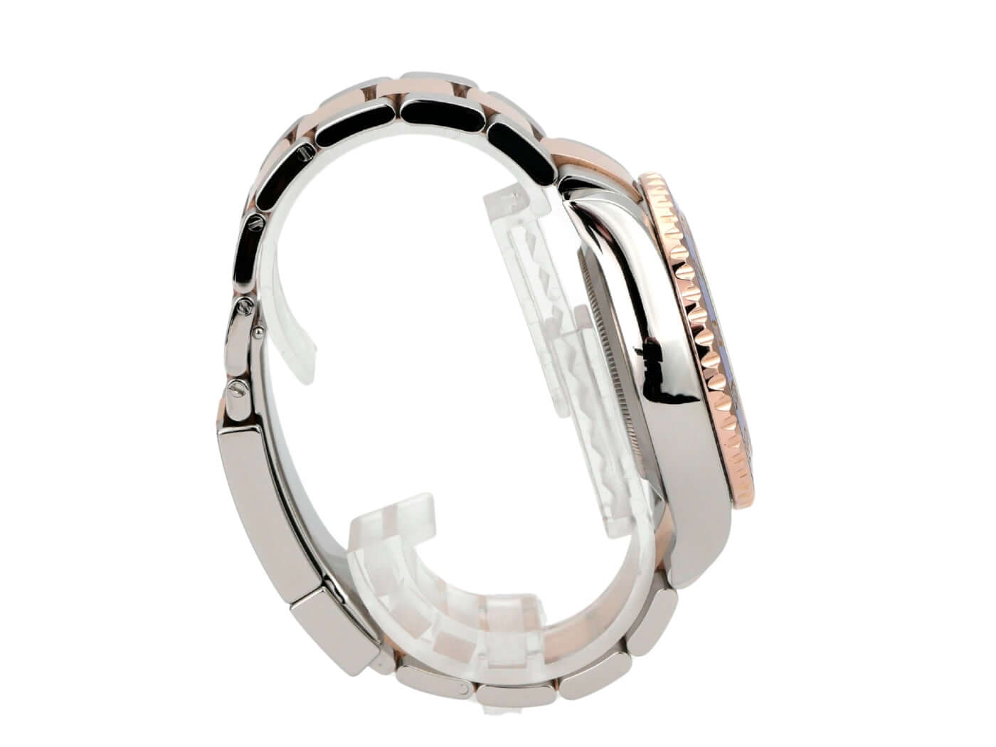 Gehäuse aus Edelstahl und 18 kt Everose-Gold poliert und satiniert, Gehäusedurchmesser 44 mm, Lünette aus 18 kt Everose-Gold poliert mit blauer Keramik Zahlenscheibe, Lünette um 90 Grad in beide Richtungen drehbar, Oyster Armband aus Edelstahl und 18 kt Everose-Gold poliert und satiniert mit Faltschließe, weißes Zifferblatt mit Everose-Gold Indizes, dreieckiger Stundenmarker auf der 12‑Uhr-Position, Leuchtzeiger, Automatikwerk, Rolex Manufakturkaliber 4161 mit 42 Steine, Schwingung 28.800 A/h, Chronometer, kleine Sekunde auf 6 Uhr, kratzfestes Saphirglas, verschraubter Edelstahlboden, wasserdicht bis zu 10 bar.