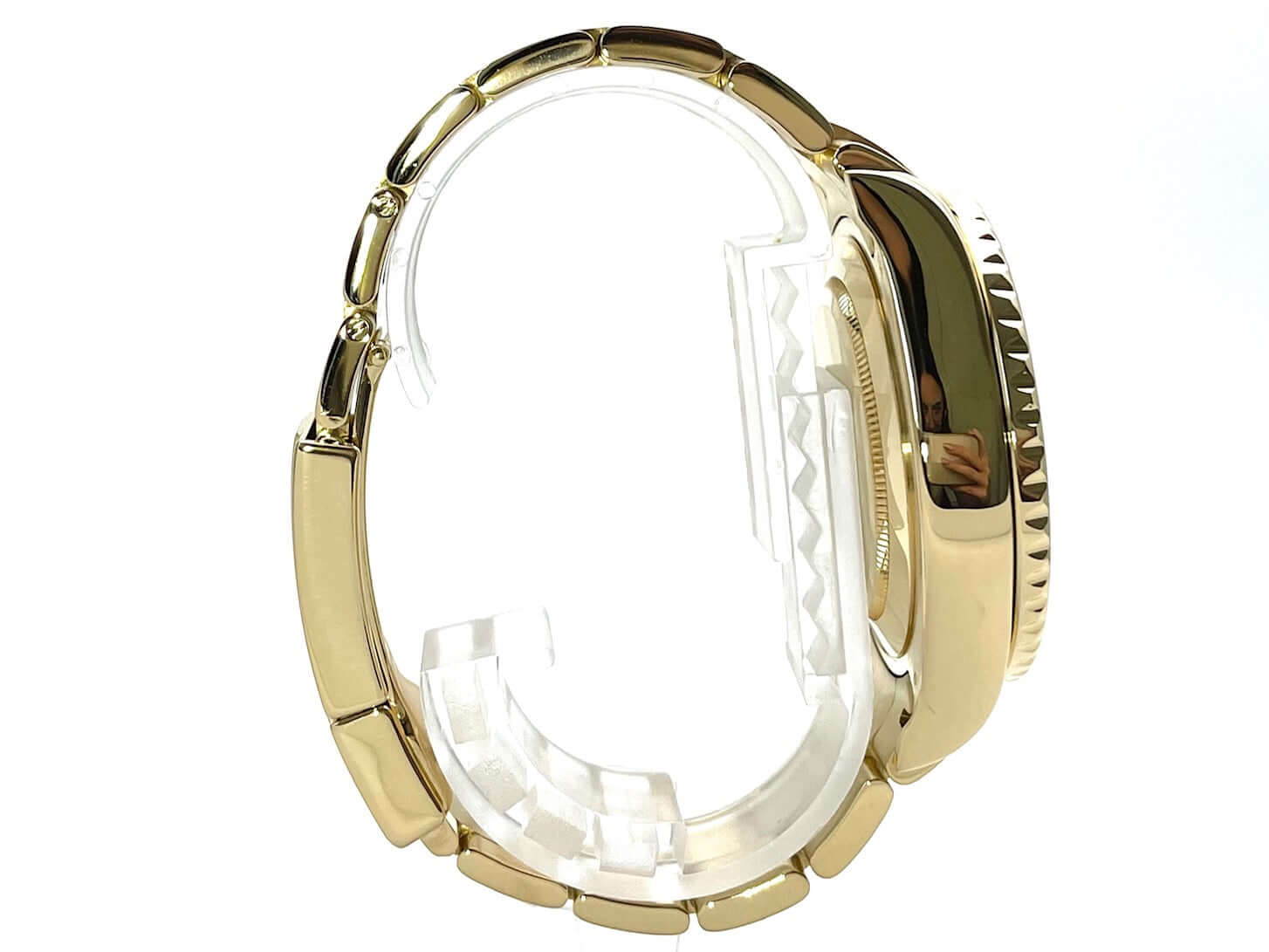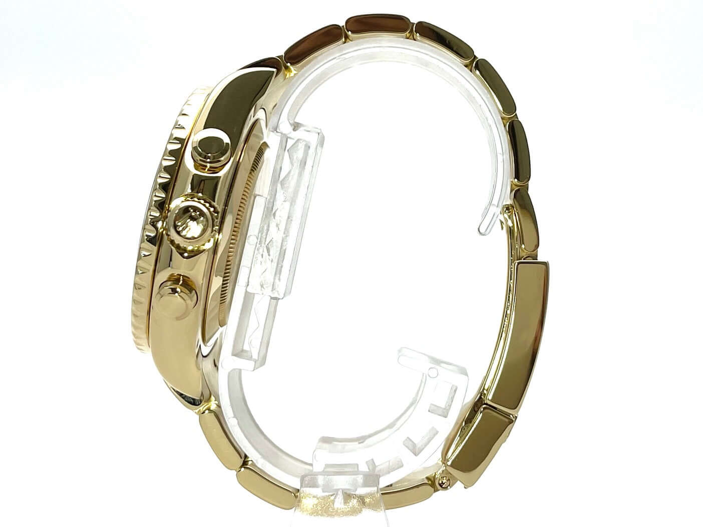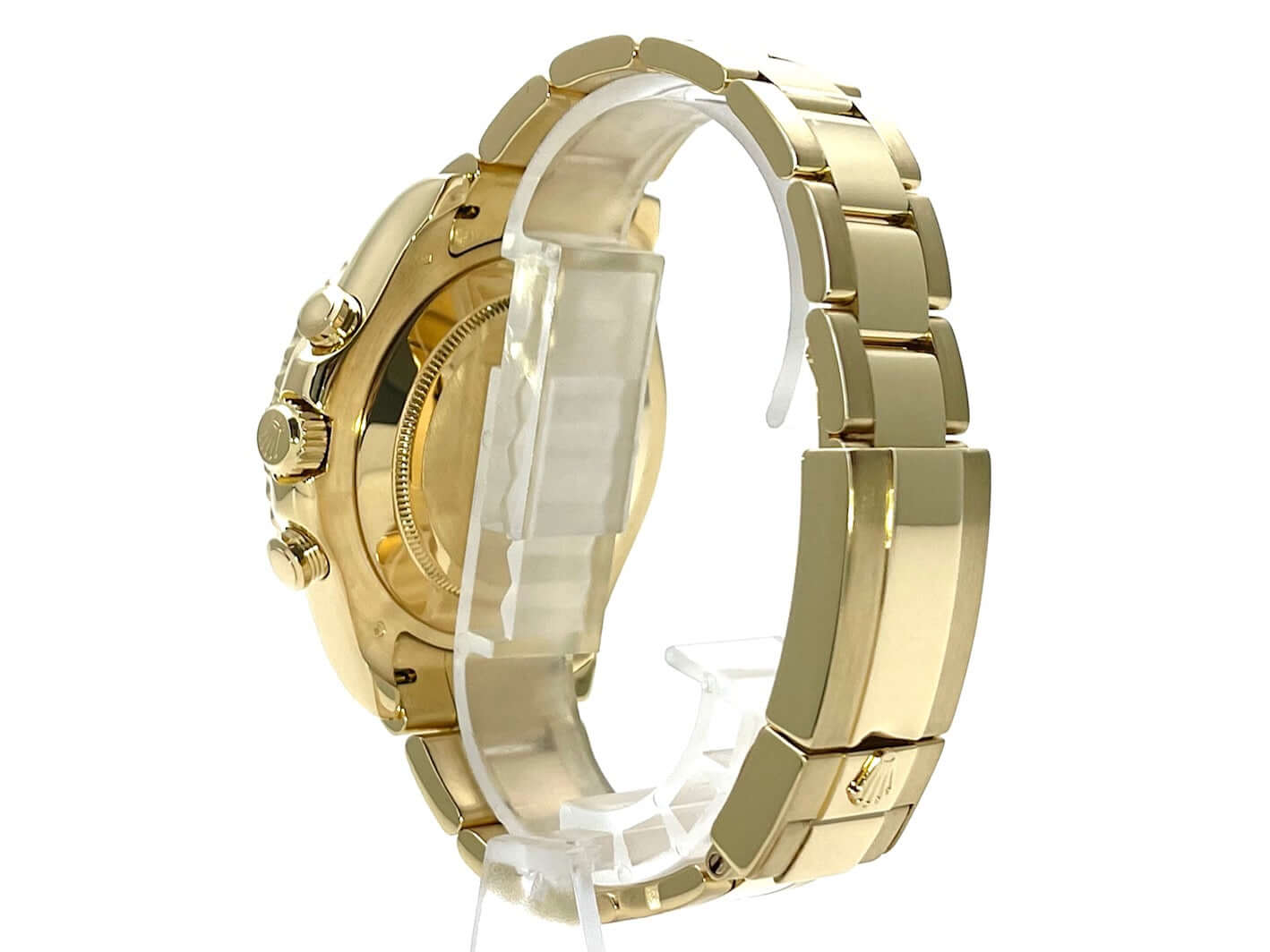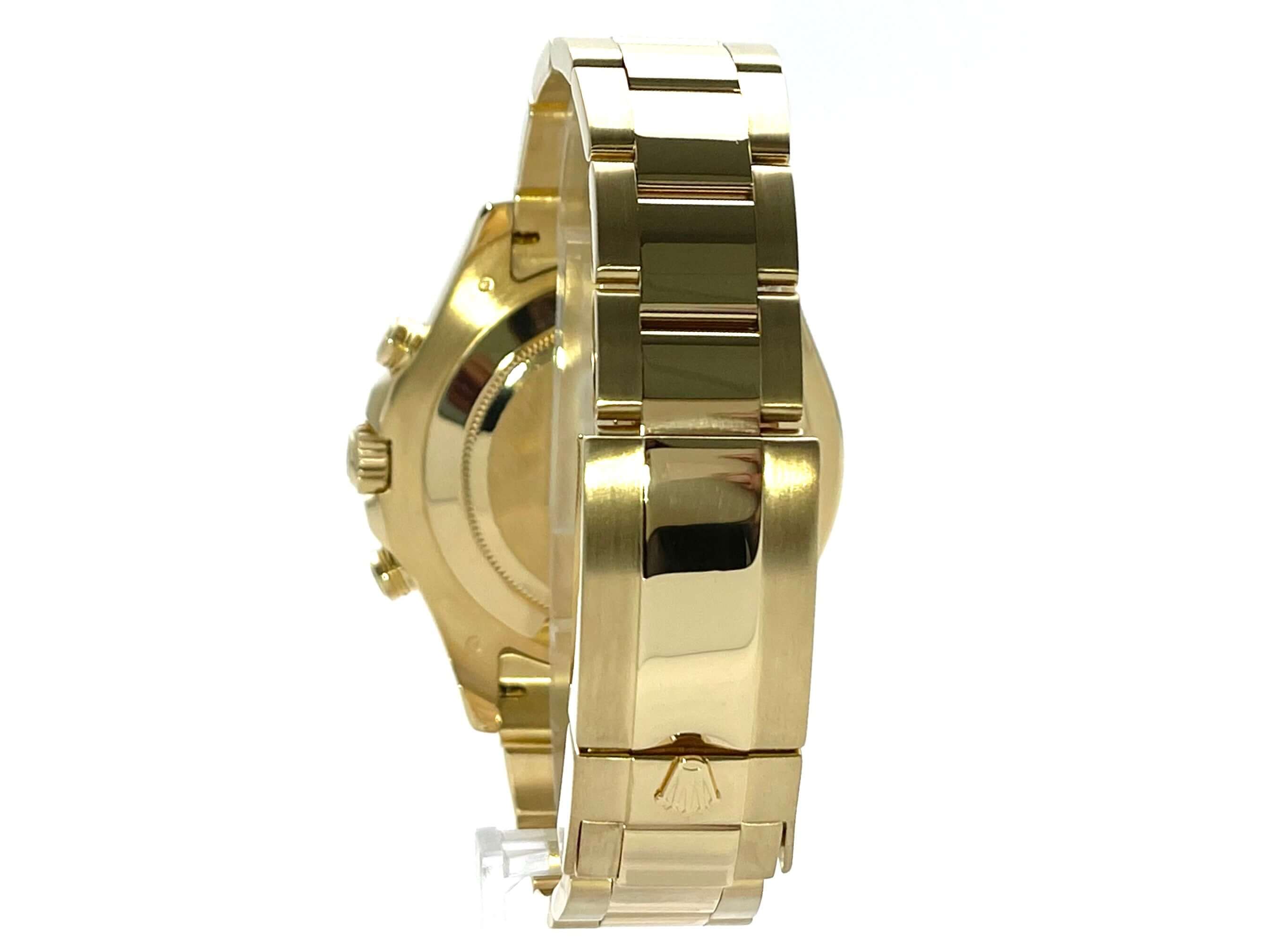 Gehäuse aus 18 kt Gelbgold poliert und satiniert, Gehäusedurchmesser 44 mm, Lünette aus 18 kt Gelbgold mit blauer Keramik Einlage, Oyster Armband aus 18 kt Gelbgold poliert und satiniert mit Faltschließe, weißes Zifferblatt mit Leuchtindizes und Leuchtzeiger, Automatikwerk, Rolex Manufakturkaliber 4160 mit 31 Steine, Schwingung 28.800 A/h, Chronometer, kleine Sekundenanzeige bei 6 Uhr, kratzfestes Saphirglas, verschraubter Boden aus 18 kt Gelbgold, Wasserdicht bis zu 10 bar.