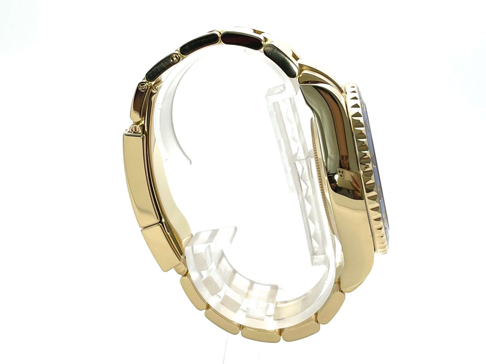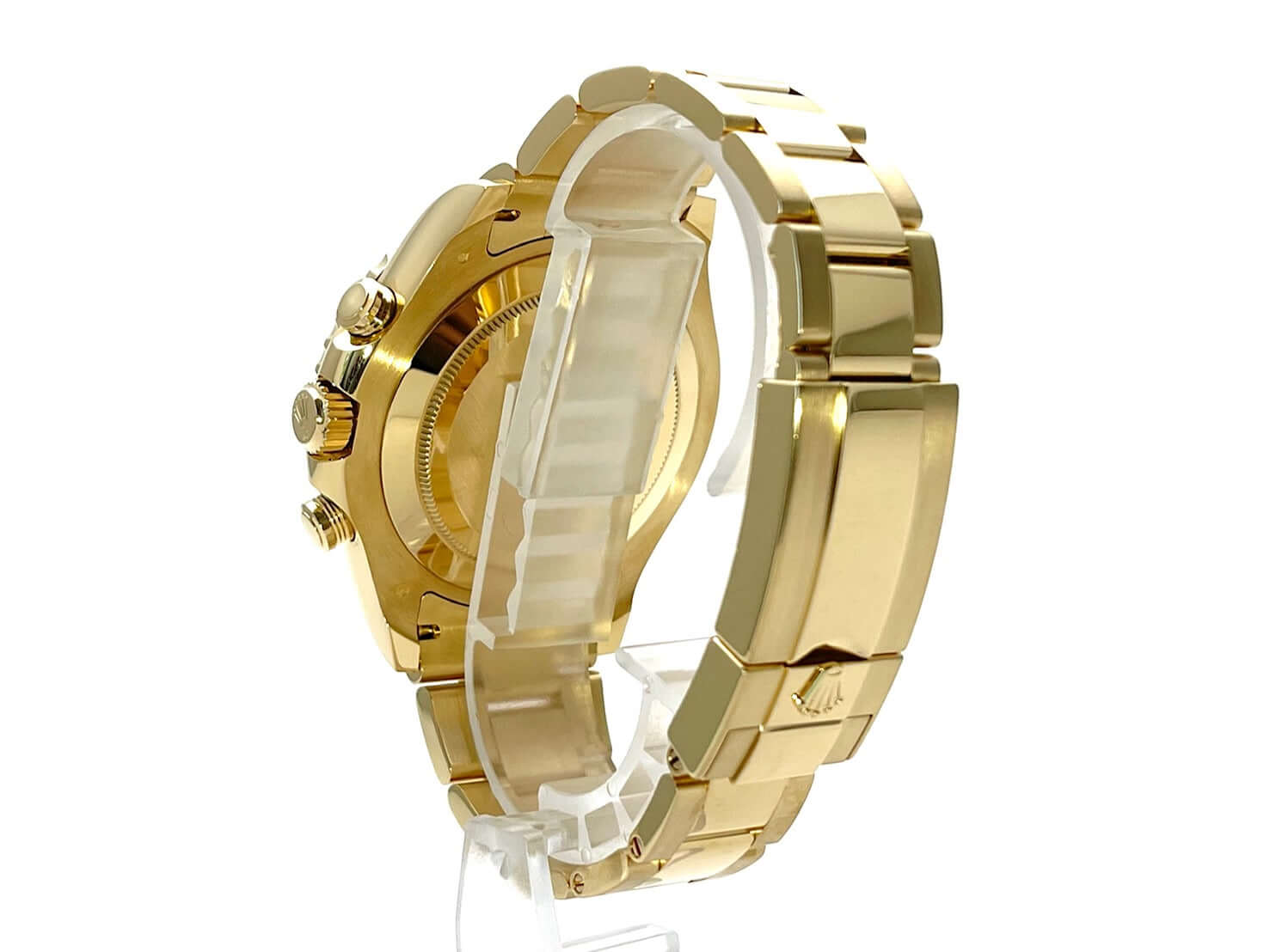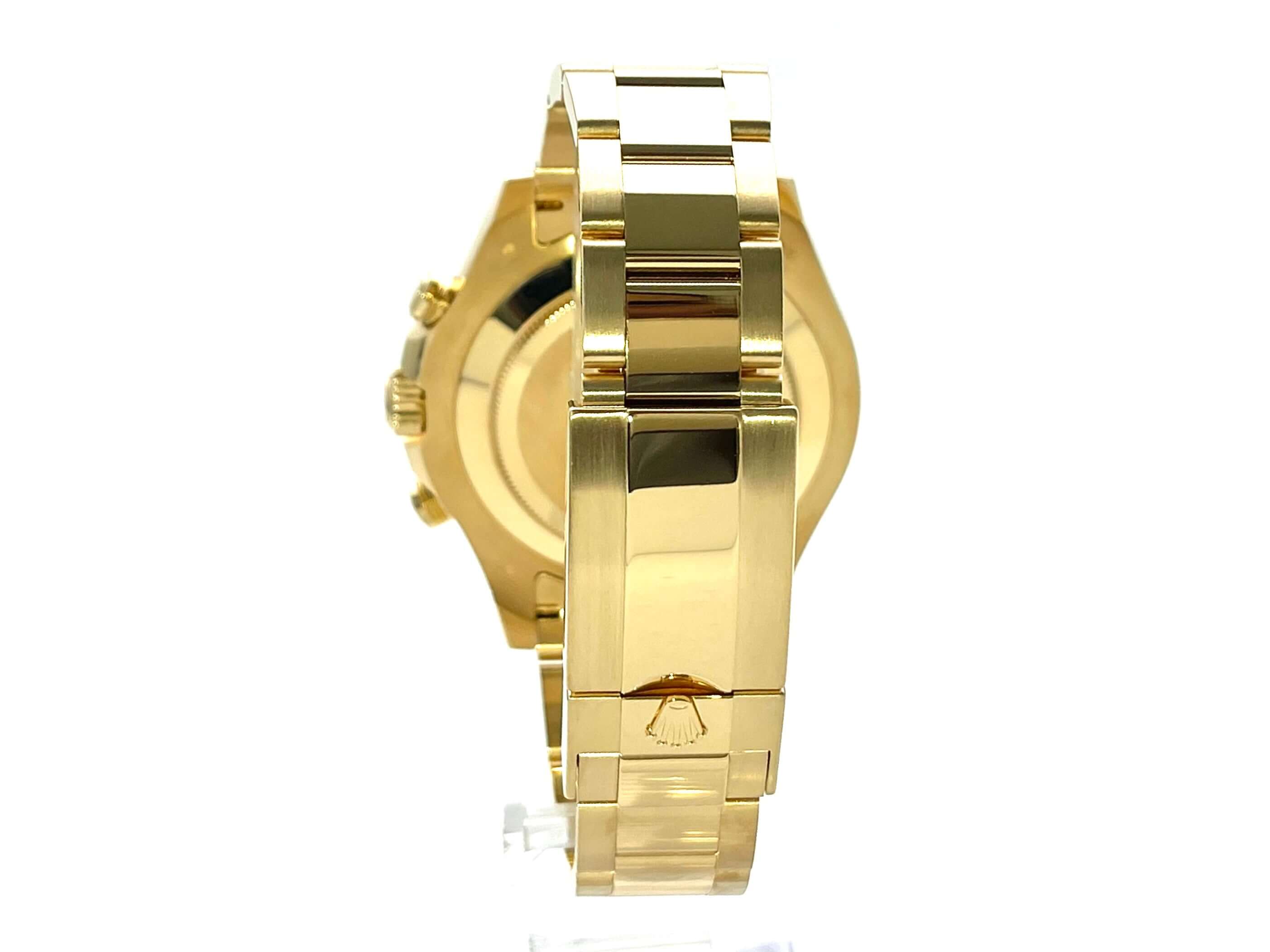 Gehäuse aus 18 kt Gelbgold poliert und satiniert, Gehäusedurchmesser 44 mm, Lünette aus 18 kt Gelbgold mit blauer Keramik Einlage, Oyster Armband aus 18 kt Gelbgold poliert und satiniert mit Faltschließe, weißes Zifferblatt mit Leuchtindizes und Leuchtzeiger, Automatikwerk, Rolex Manufakturkaliber 4161 mit 31 Steine, Schwingung 28.800 A/h, Chronometer, kleine Sekundenanzeige bei 6 Uhr, kratzfestes Saphirglas, verschraubter Boden aus 18 kt Gelbgold, Wasserdicht bis zu 10 bar.