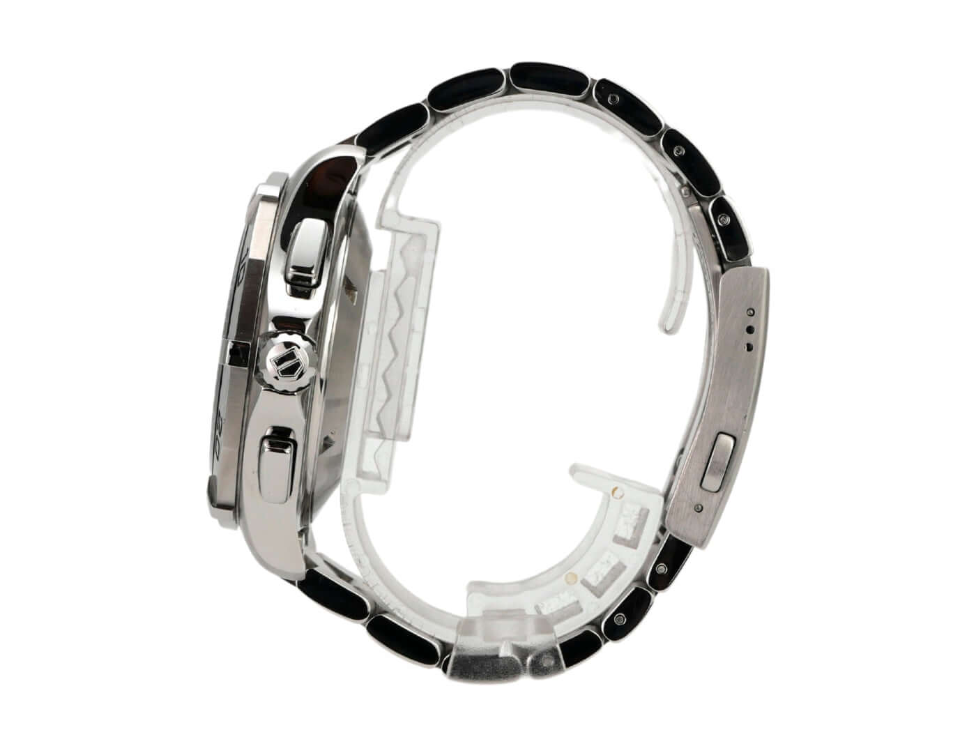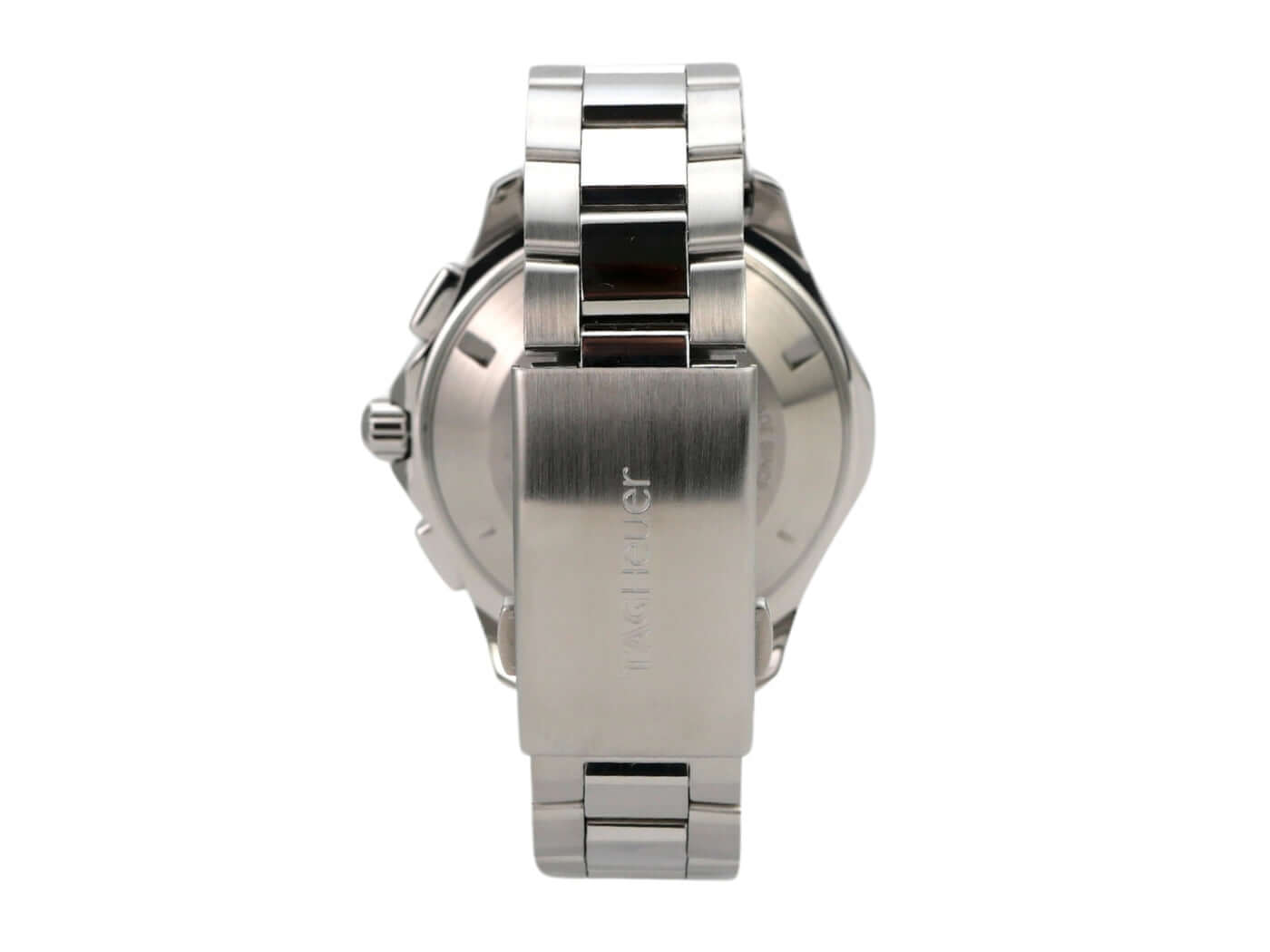 Gehäuse aus Edelstahl poliert und satiniert, Gehäusedurchmesser 43 mm, Edelstahl Lünette, Edelstahlband poliert und satiniert mit Faltschließe, schwarzes Zifferblatt mit aufgesetzten Leuchtindizes und Leuchtzeiger, Uhrwerk Automatik, Kaliber Tag Heuer 16 mit 25 Steine, Schwingung 28.800 A/h, Gangreserve für 42 Stunden, Chronograph, kratzfestes Saphirglas, Datumsanzeige, verschraubte Krone mit Flankenschutz, Edelstahlboden verschraubt und graviert, wasserdicht bis zu 30 bar.