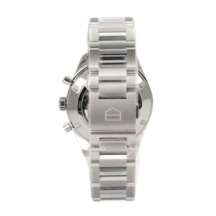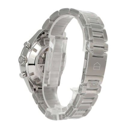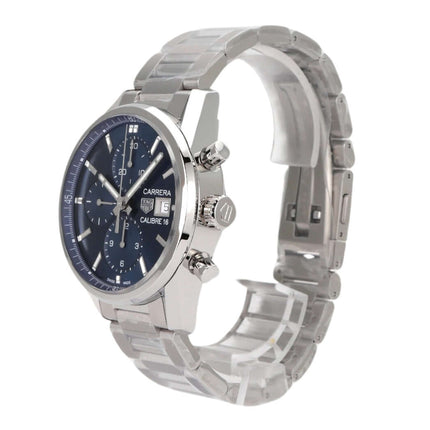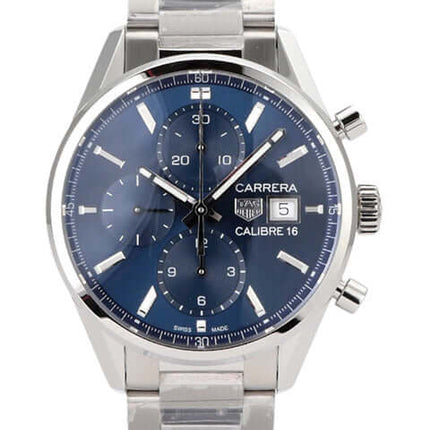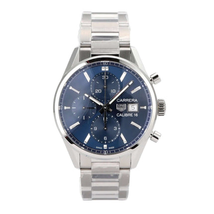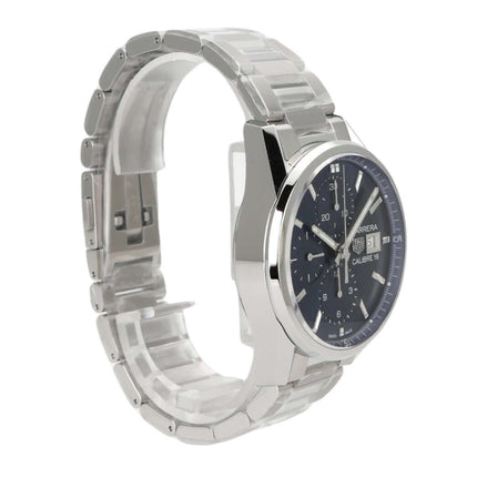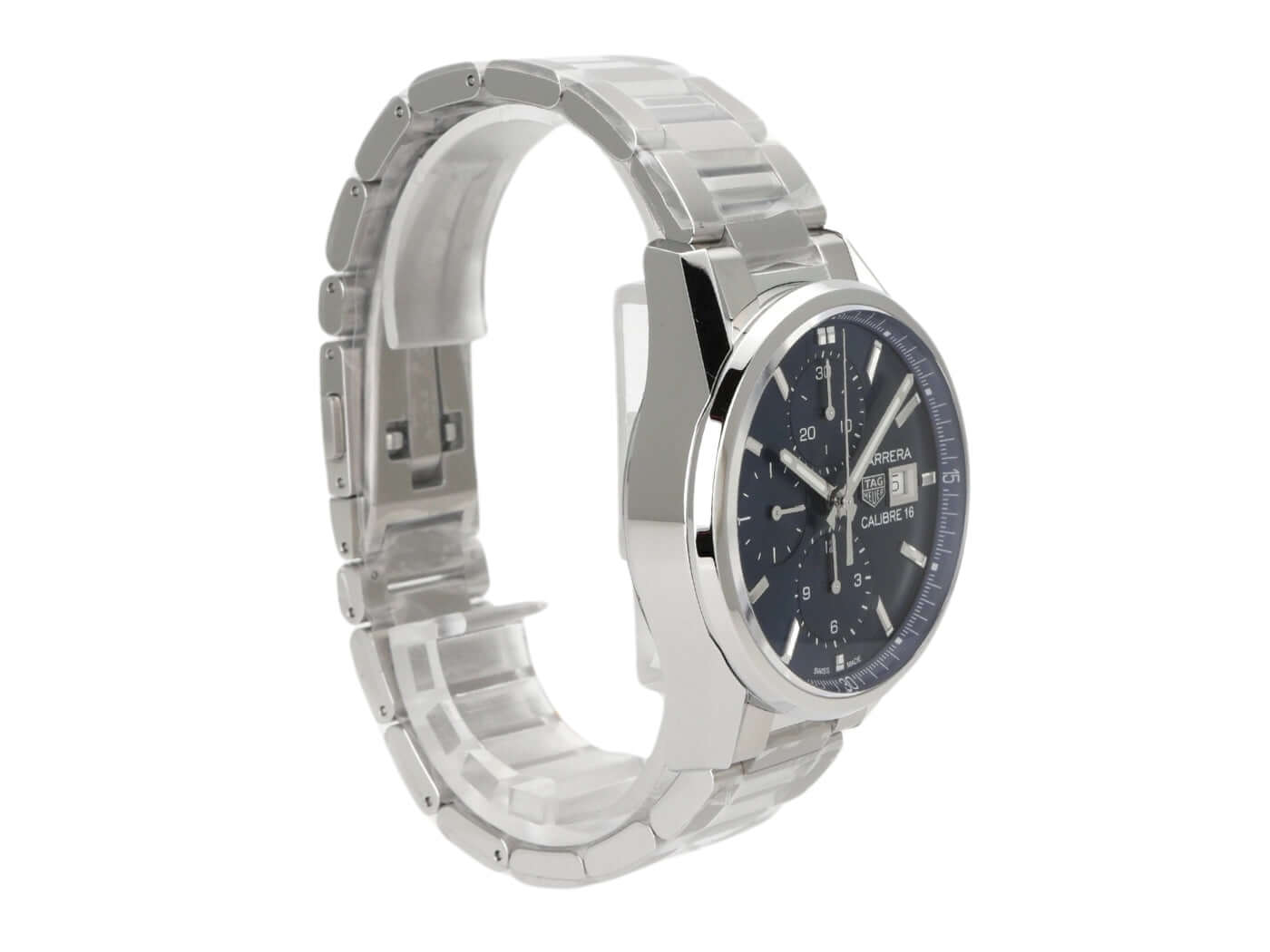 Gehäuse aus Edelstahl poliert und satiniert, Gehäusedurchmesser 41 mm, Edelstahl Lünette, Edelstahlband poliert und satiniert mit Sicherheitsfaltschließe, blaues Zifferblatt mit aufgesetzten Indizes, Leuchtzeiger, Automatik Uhrwerk, Kaliber Tag Heuer 16, Chronograph, Datumsanzeige, Saphirglas, Edelstahlboden verschraubt und graviert, Wasserdicht bis zu 10 bar.