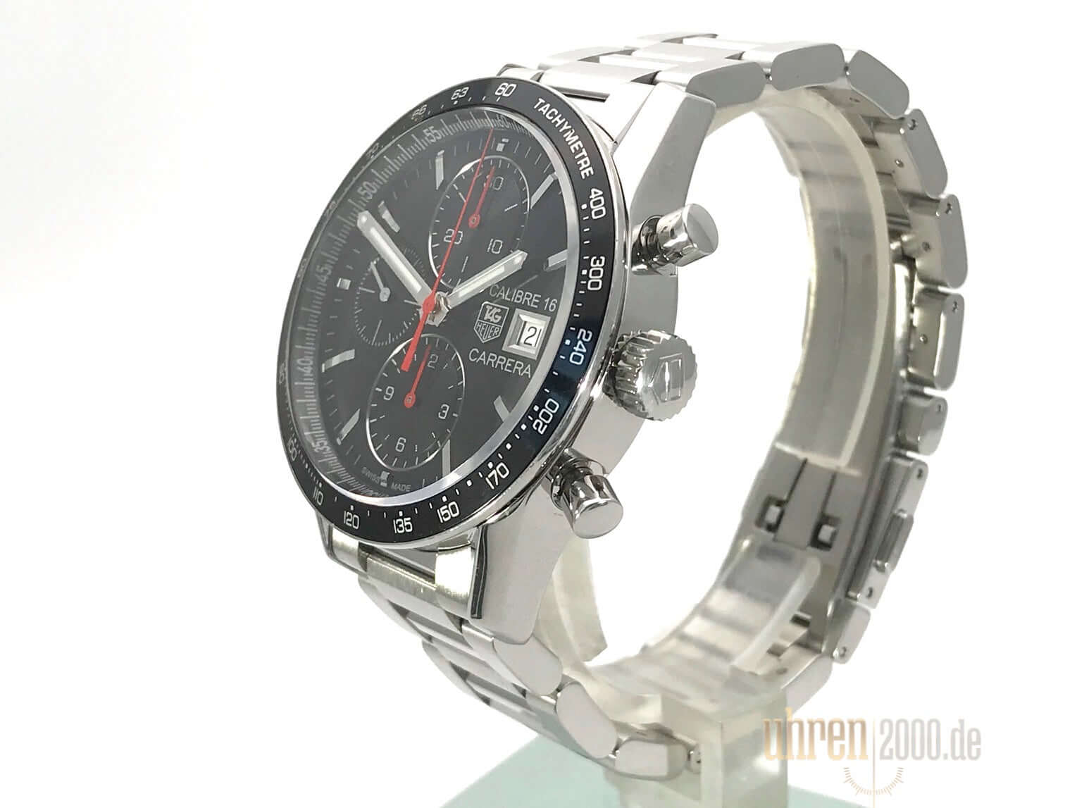 Gehäuse aus Edelstahl poliert und satiniert, Gehäusedurchmesser 41 mm, Edelstahl Lünette mit schwarzer Tachymeter Einlage, Edelstahl Armband poliert und satiniert mit Sicherheitsfaltschließe, schwarzes Zifferblatt mit aufgesetzten Indizes, Leuchtzeiger, Automatik Uhrwerk, Chronograph, Kaliber Tag Heuer 16, Datumsanzeige, Saphirglas, Edelstahlboden verschraubt und graviert, Wasserdicht bis zu 10 bar.
