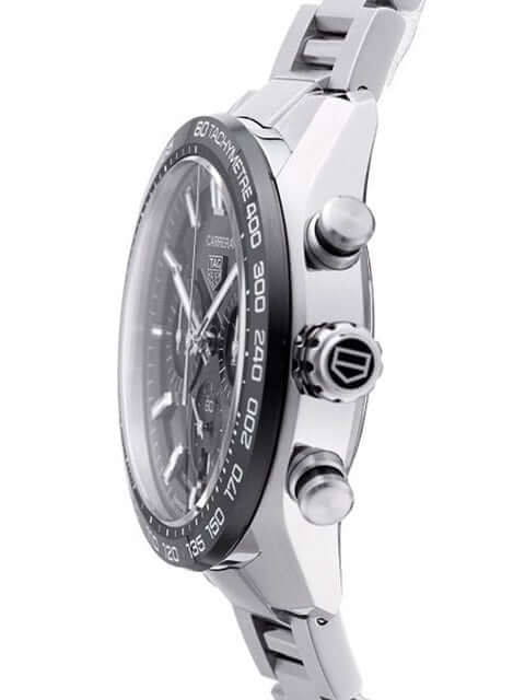 Gehäuse aus Edelstahl, Gehäusedurchmesser 44 mm, schwarze Keramik Lünette mit Tachymeterskala, satiniertes Edelstahlband mit Faltschließe, schwarzes Zifferblatt mit aufgesetzten Leuchtindizes, Leuchtzeiger, Automatikwerk, Kaliber Tag Heuer 02, 80 Stunden Gangreserve, Chronograph, Datumsanzeige, entspiegeltes Saphirglas, kleine Sekunde, Edelstahlboden mit Saphirglas Sichtfenster, Wasserdicht bis zu 10 bar.