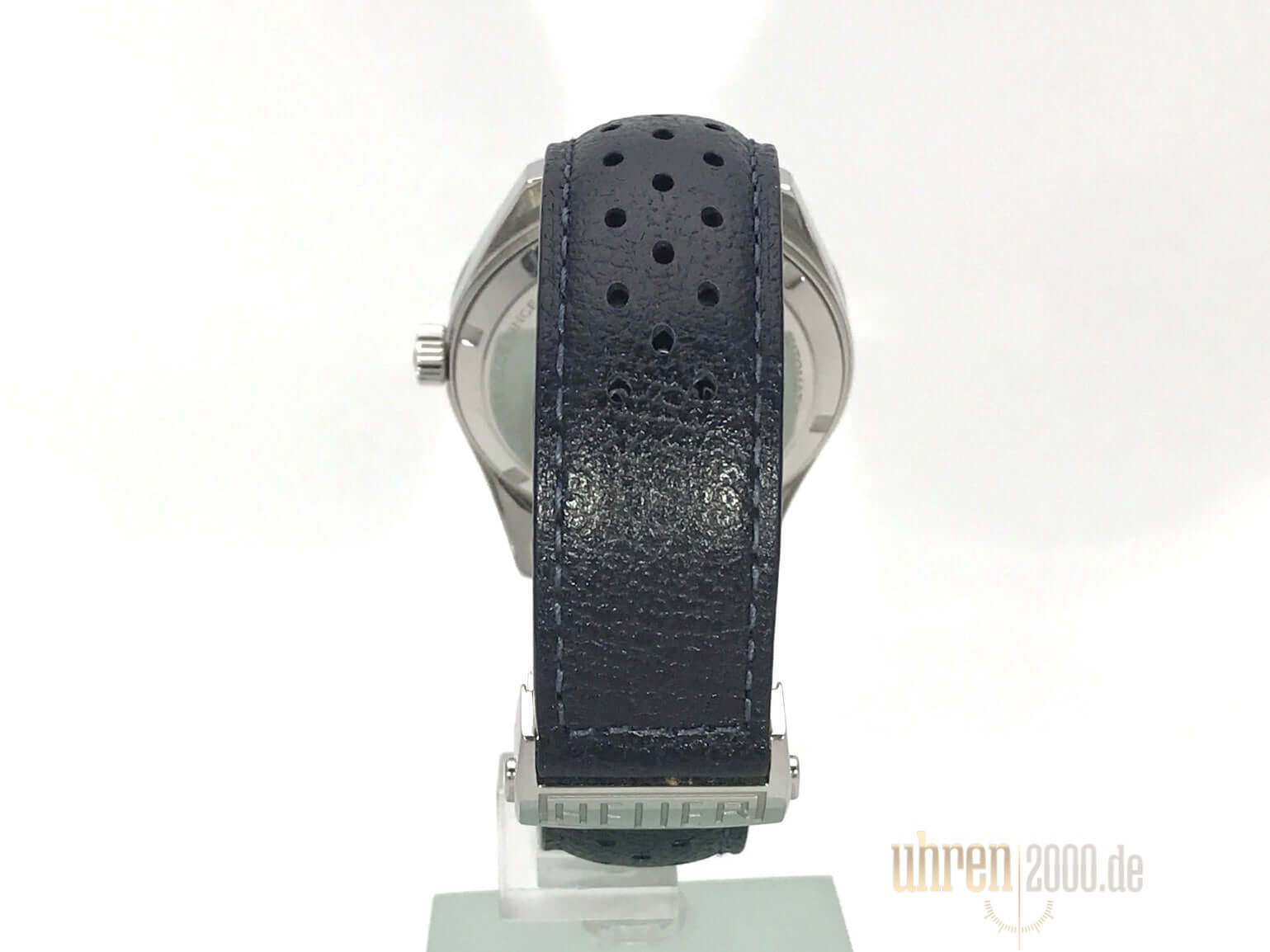 Gehäuse Edelstahl poliert und satiniert, Gehäusedurchmesser 39 mm, Lünette Edelstahl poliert und satiniert, Leder Armband blau mit Faltschließe, Silbernes Zifferblatt, Uhrwerk Automatik, Kaliber Tag Heuer 6, Schwingung 28.800 A/h, Gangreserve für ca. 38 Stunden, Datumsanzeige, kratzfestes gewölbtes und beidseitig entspiegeltes Saphirglas, verschraubter Edelstahlboden, Wasserdicht bis zu 10 bar.