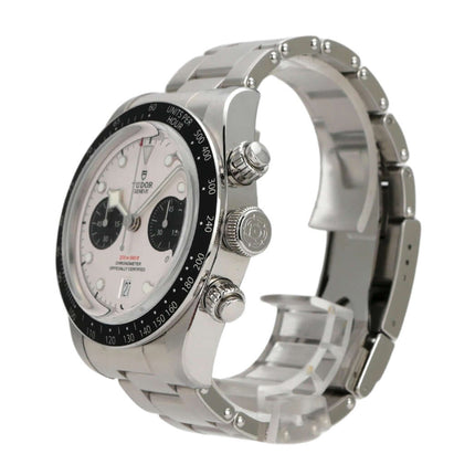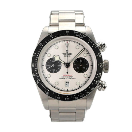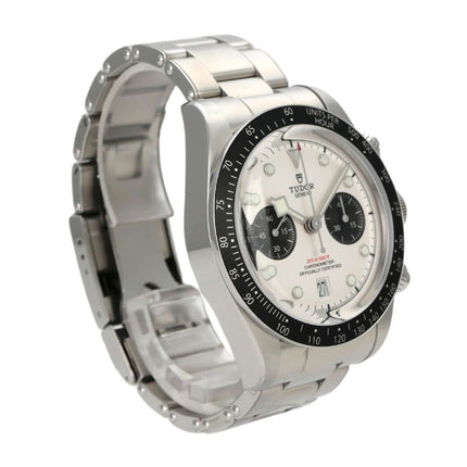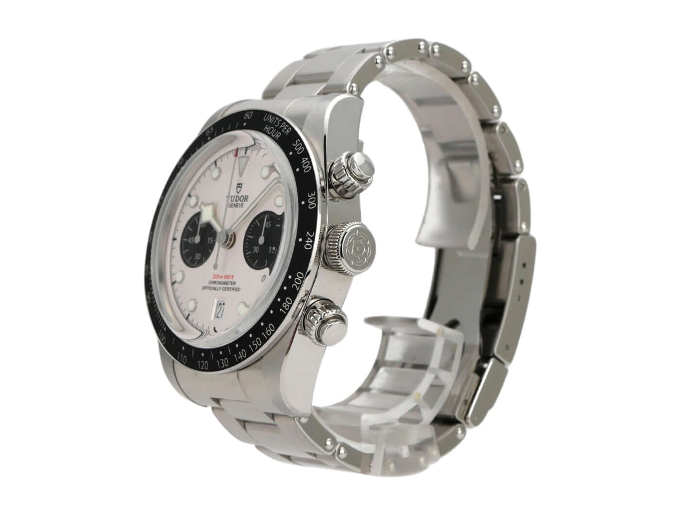 Gehäuse aus Edelstahl poliert und satiniert, Gehäusedurchmesser 41 mm, Gehäusehöhe 12,7 mm, Edelstahl Lünette mit 60 Minuten Skala und Leuchtpunkt, einseitig drehbar, Edelstahlband mit Faltschließe, Opalfarbenes Zifferblatt mit aufgesetzten Leuchtindizes, schwarze Totalisatoren, Leuchtzeiger, Uhrwerk Automatik, Manufakturkaliber Tudor MT5813, 70 Stunden Gangreserve, Chronograph, Datum, Chronometer, Saphirglas, verschraubte Krone, Edelstahlboden verschraubt und graviert, Wasserdicht bis zu 20 bar.