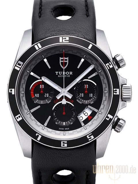 Tudor Grantour Chronograph 20530N Schwarz gelochtes Lederband