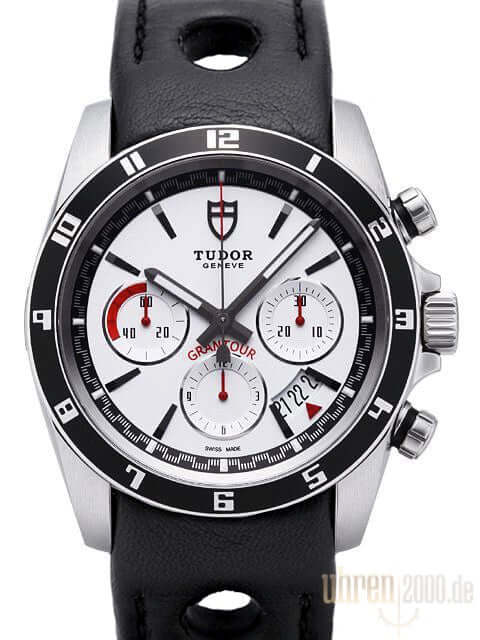 Tudor Grantour Chronograph Ref. 20530N-0007 Zifferblatt Weiß gelochtes schwarzes Lederband