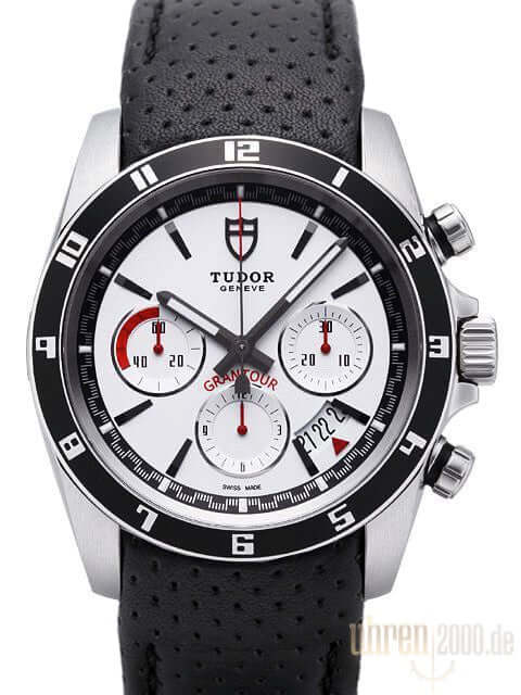Tudor Grantour Chronograph Ref. 20530N-0004 Zifferblatt Weiß schwarzes Lederband