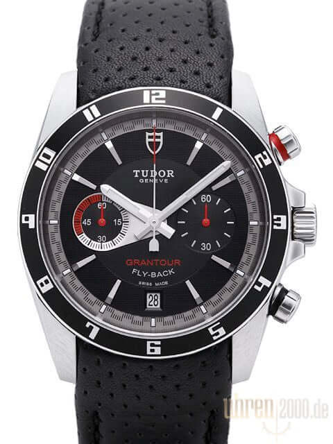 Tudor Grantour Chronograph Fly-Back Ref. 20550N perforiertes schwarzes Lederband