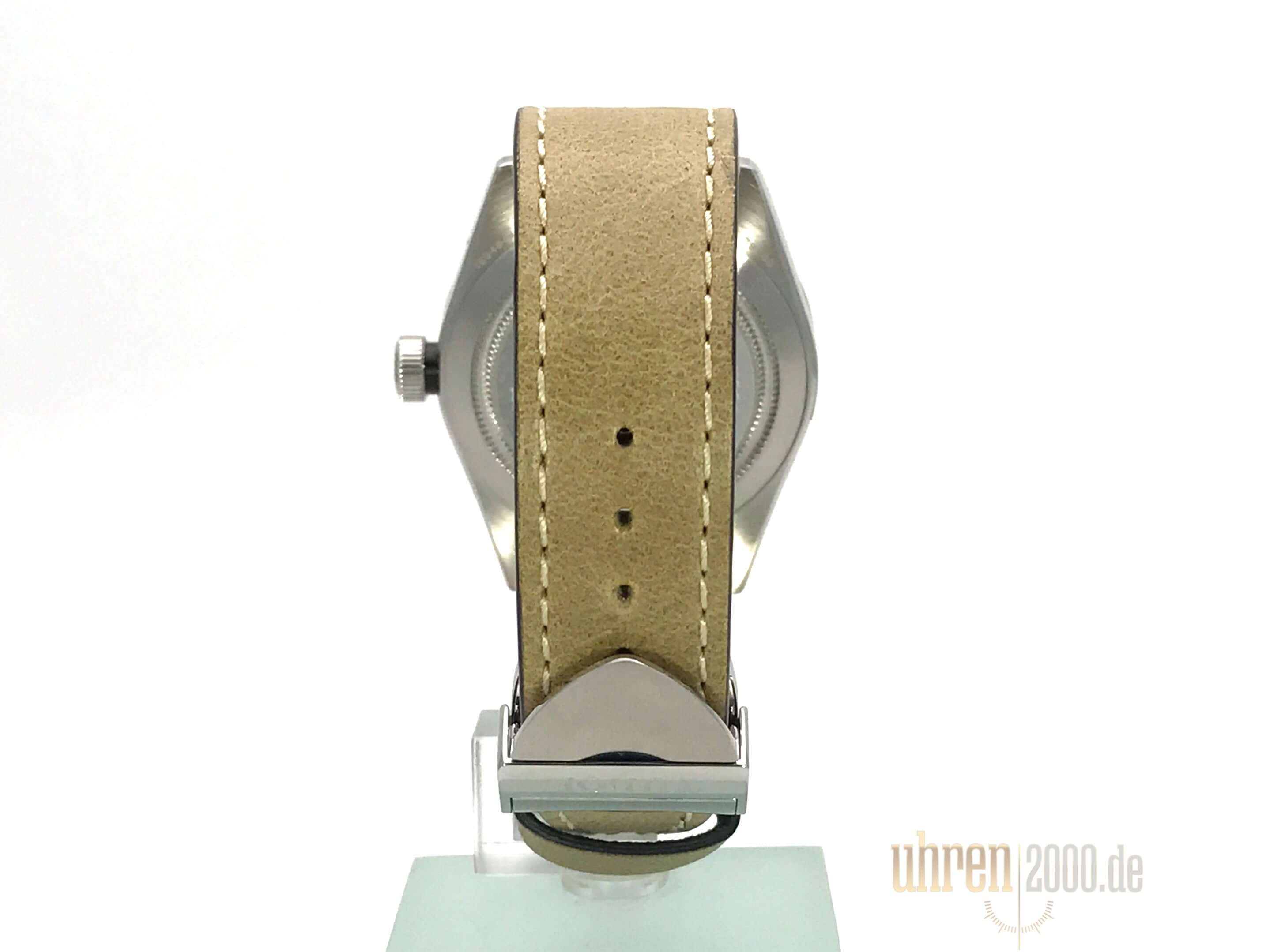 Gehäuse Edelstahl poliert, Gehäusedurchmesser 36 mm, Edelstahl Lünette poliert, gealtertes Lederband mit Faltschließe, schwarzes Zifferblatt mit Indexen, Automatikaufzug, Tudor 2824 mit 25 Steine, Gangreserve für 38 Stunden, Saphirglas, Gehäuseboden Edelstahl verschraubt, Wasserdicht bis zu 10 bar.