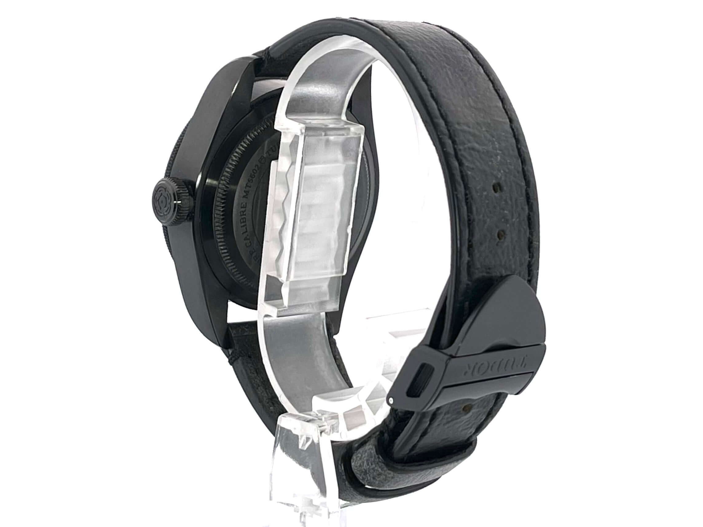 Gehäuse aus schwarz PVD-beschichtetem Edelstahl satiniert, Gehäusedurchmesser 41 mm, Gehäusehöhe 14,7 mm, Edelstahl Lünette mit schwarzer Einlage, 60 Minuten Skala und Leuchtpunkt, einseitig drehbar, schwarzes Lederband mit Faltschließe, schwarzes Zifferblatt mit aufgesetzten Leuchtindexen, Leuchtzeiger, Automatik, Manufakturwerk TUDOR MT5602, Gangreserve ca. 70 Stunden, Saphirglas, verschraubte Krone, Edelstahlboden schwarz PVD-beschichtet verschraubt und graviert, Wasserdicht bis zu 20 bar.