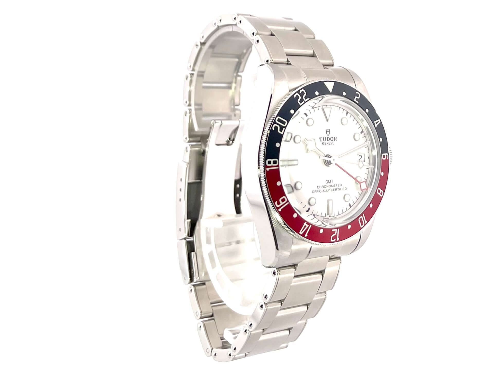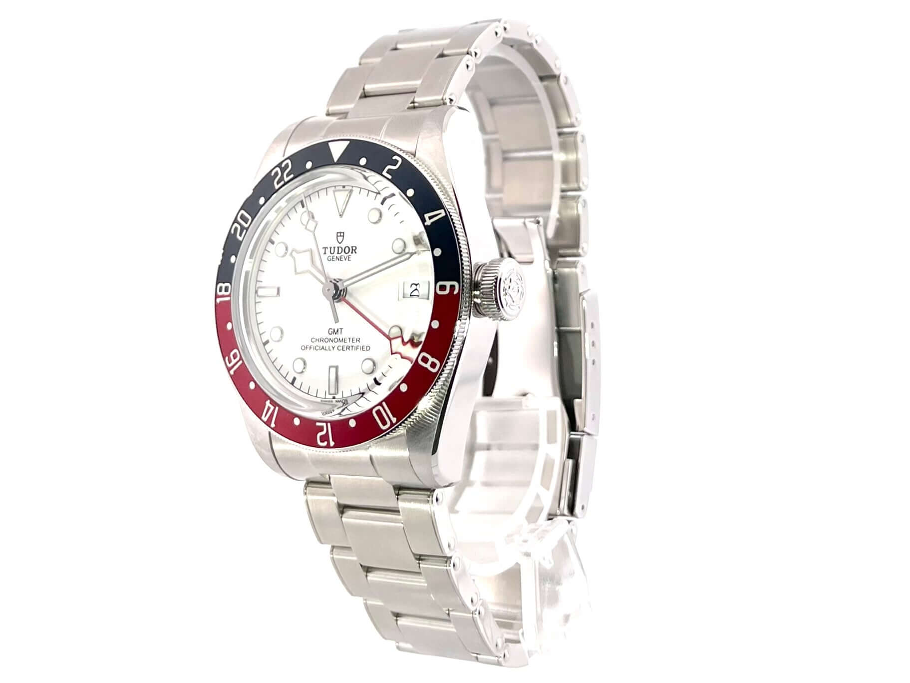 Gehäuse aus Edelstahl poliert und satiniert, Gehäusedurchmesser 41 mm, Gehäusehöhe 12,7 mm, Edelstahl Lünette mit blau/roter Einlage, 24 Stunden Skala beidseitig drehbar, weißes Zifferblatt mit aufgesetzten Leuchtindizes, Leuchtzeiger, Edelstahlband mit Sicherheitsfaltschließe, Automatik, Manufakturkaliber Tudor MT5652, 70 Stunden Gangreserve, Chronometer, GMT, Datum, verschraubte Krone, Saphirglas, Edelstahlboden verschraubt und graviert, Wasserdicht bis zu 20 bar.